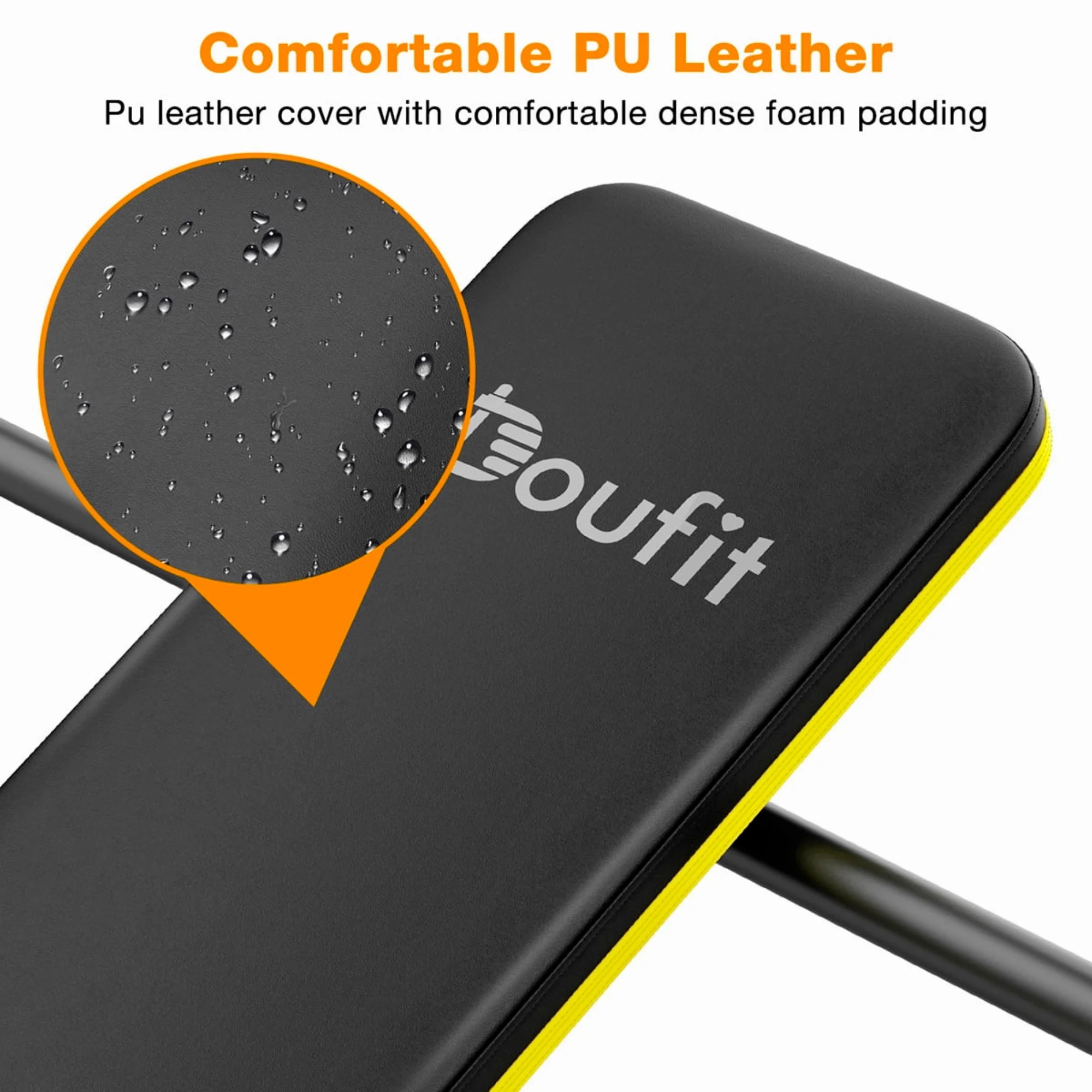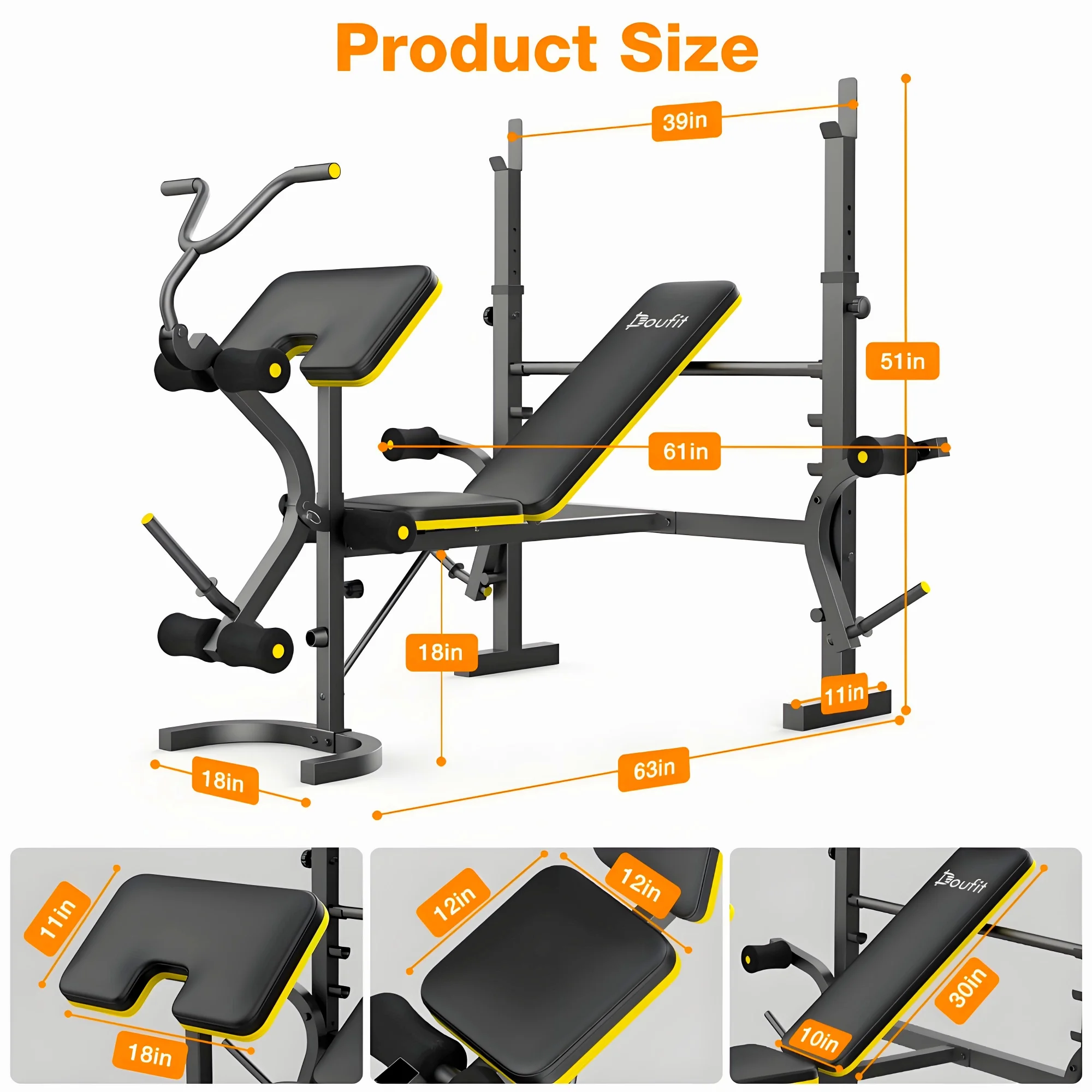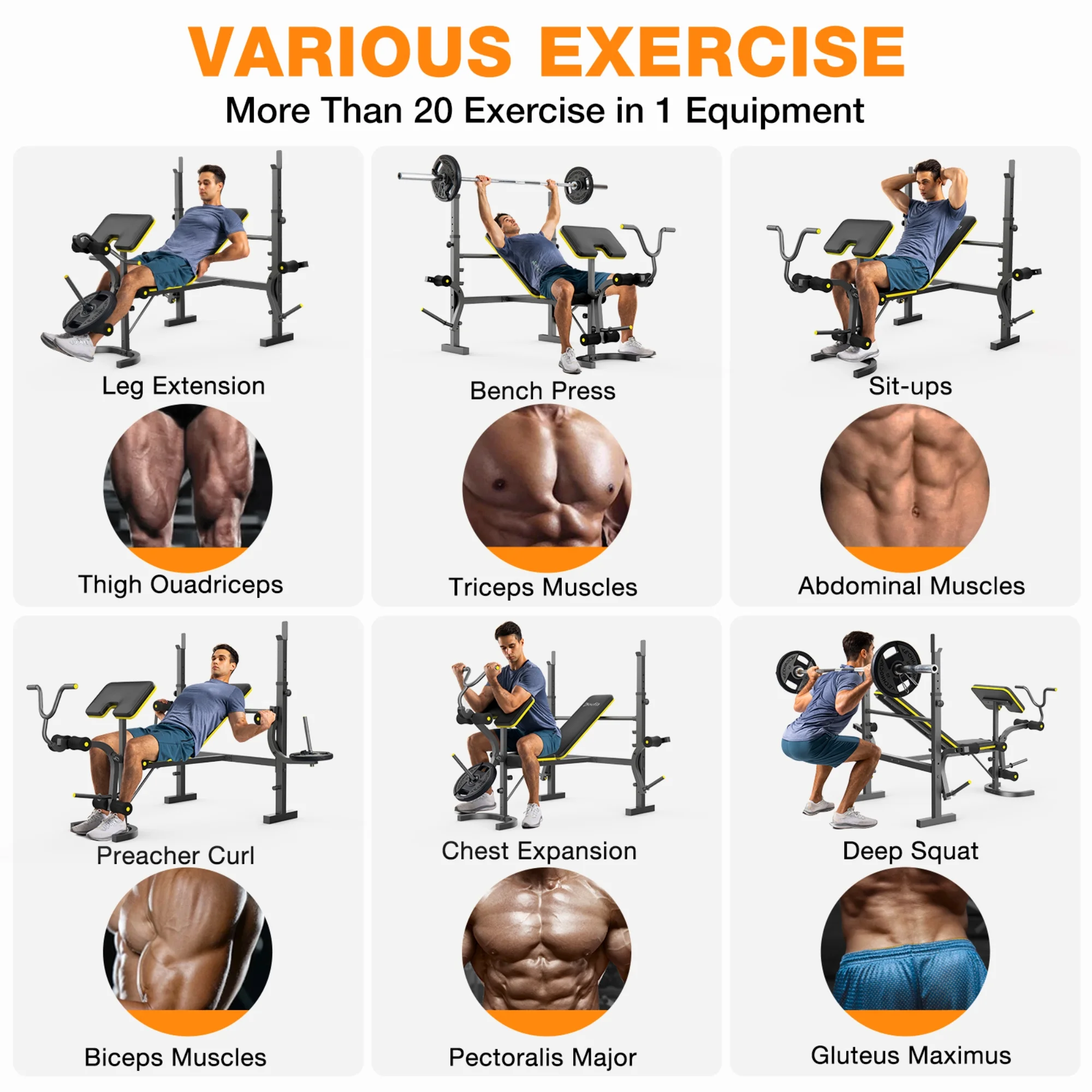 - 【Comfortable Padding and Foam】:The leather Leg Foam, High density foam cushion, back cushions of Weight Bench Set are firm and soft to deliver maximum comfortable support. Reduces muscle fatigue during workout, makes exercise more comfortable. Soft, wear-resistant, sweat-proof leather, easy to clean.