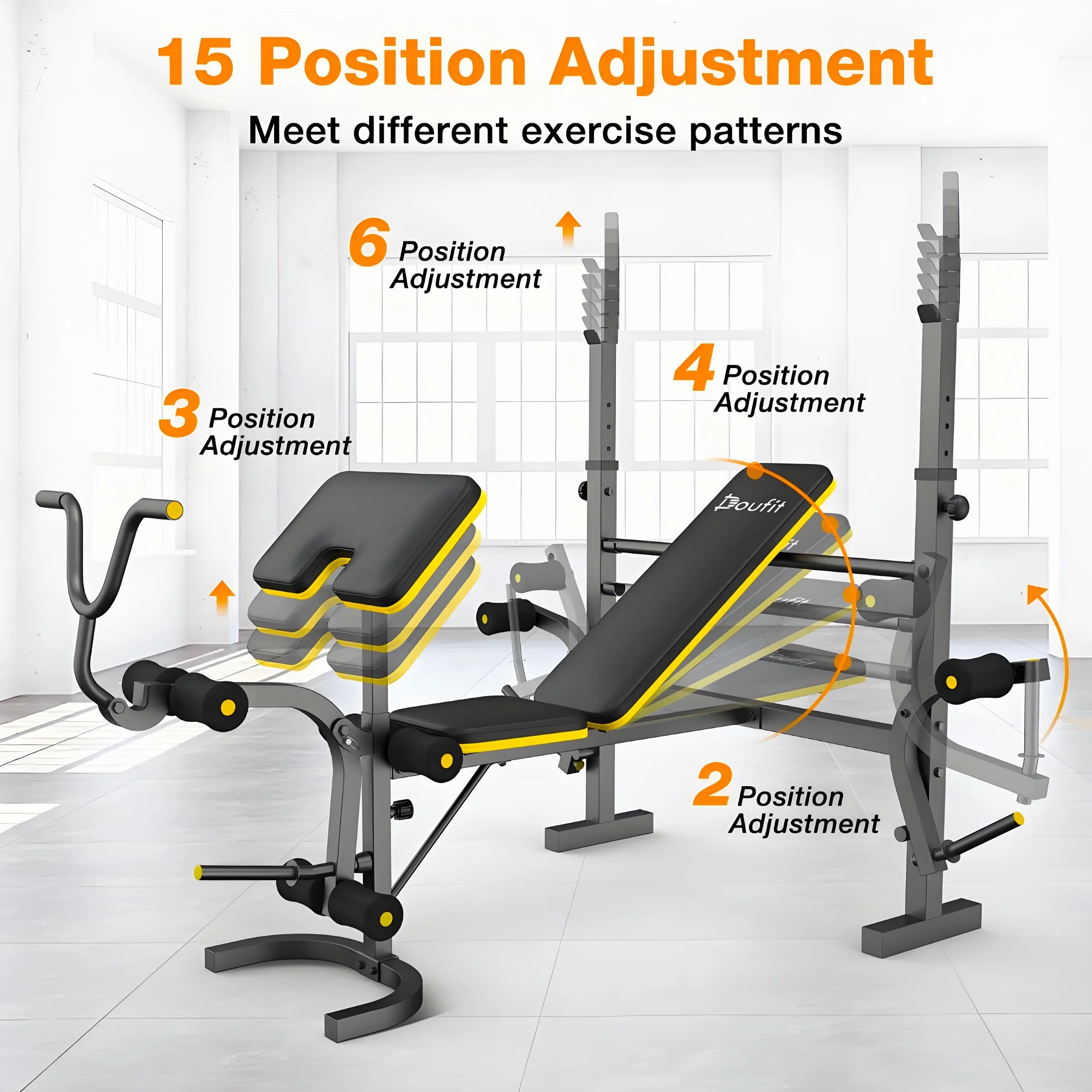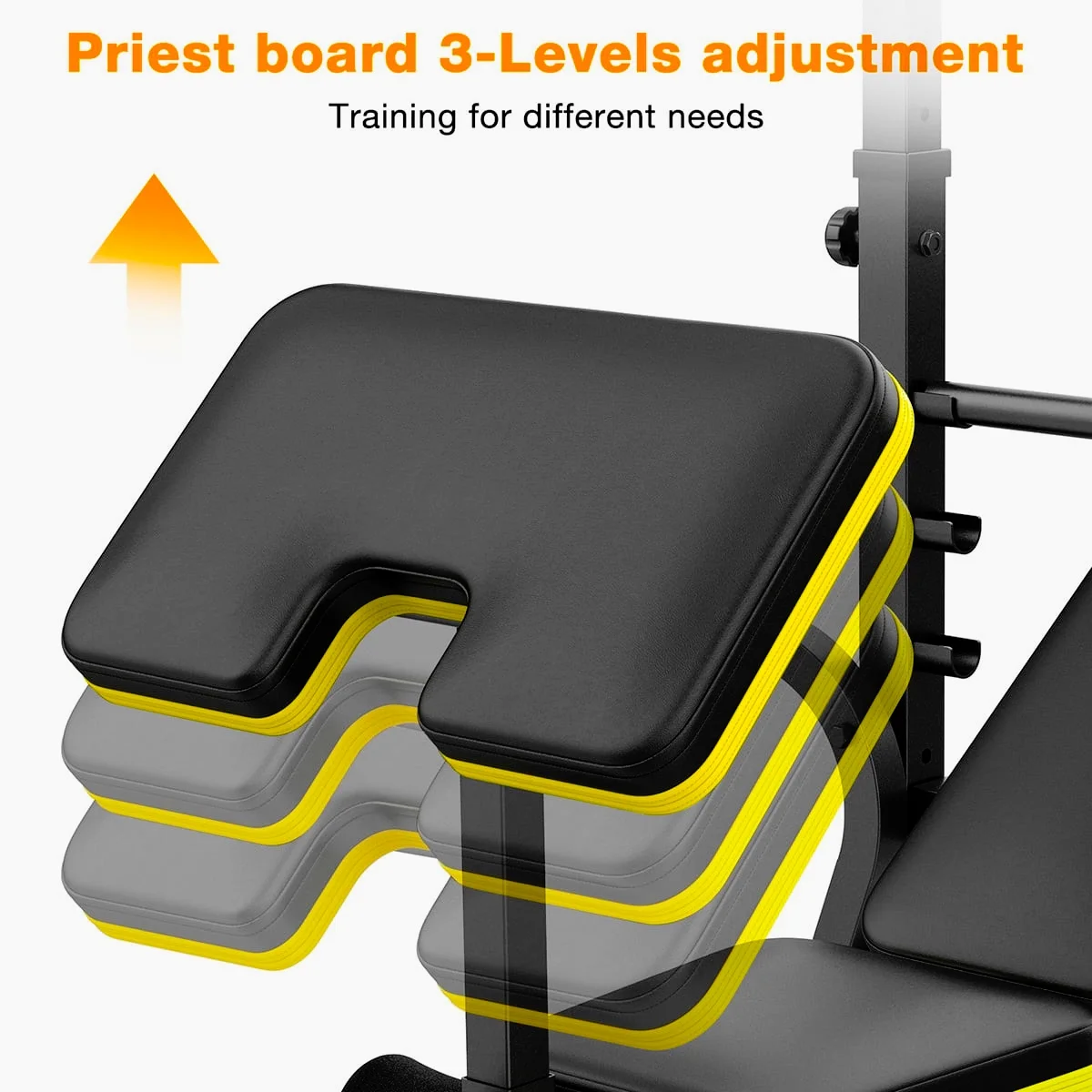 - �?5 Multi-Adjustable for Full Range Workout】:Blacksmith adjustable Workout Bench Set designed with 6 barbell rack adjustments, 4 back Adjustments, 3 elbow pad adjustments, 2 butterfly arm grips adjustment. You can perform a variety of exercises to fully work out your legs, back, chest, abs, shoulders and arms with Blacksmith standard weight bench.