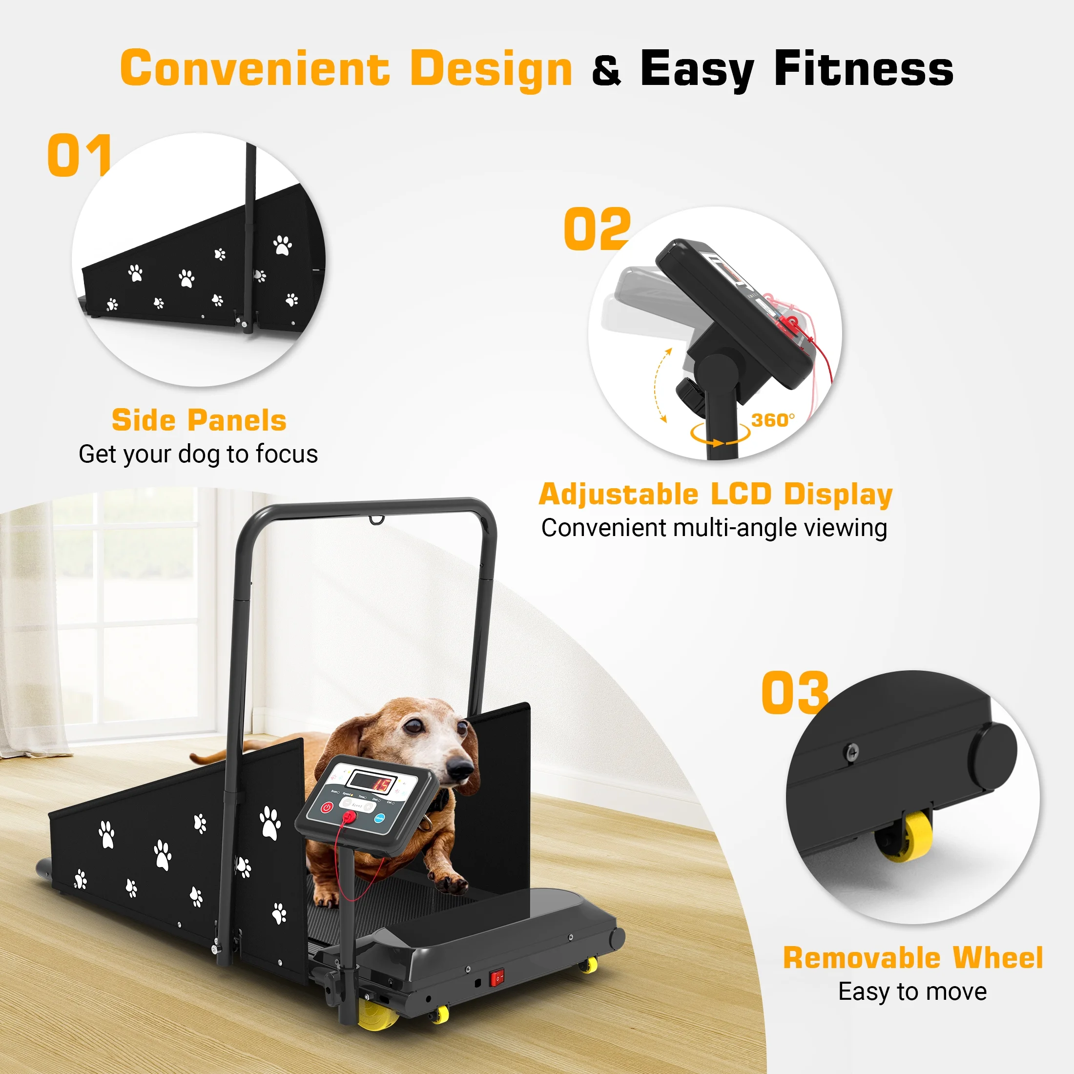 Durable and Quiet Motor: This motor ensures a peaceful environment while your dog exercises, without disrupting your home.