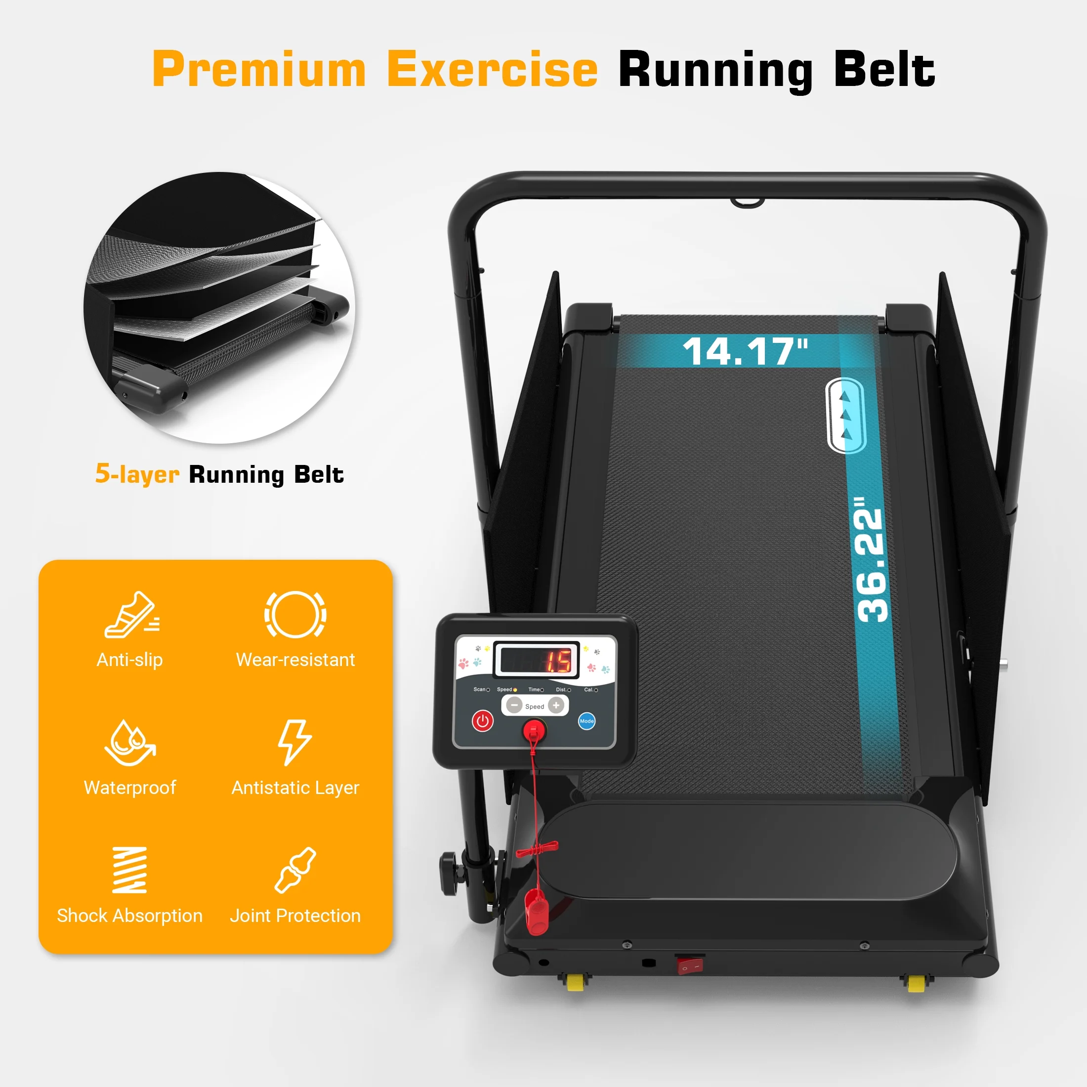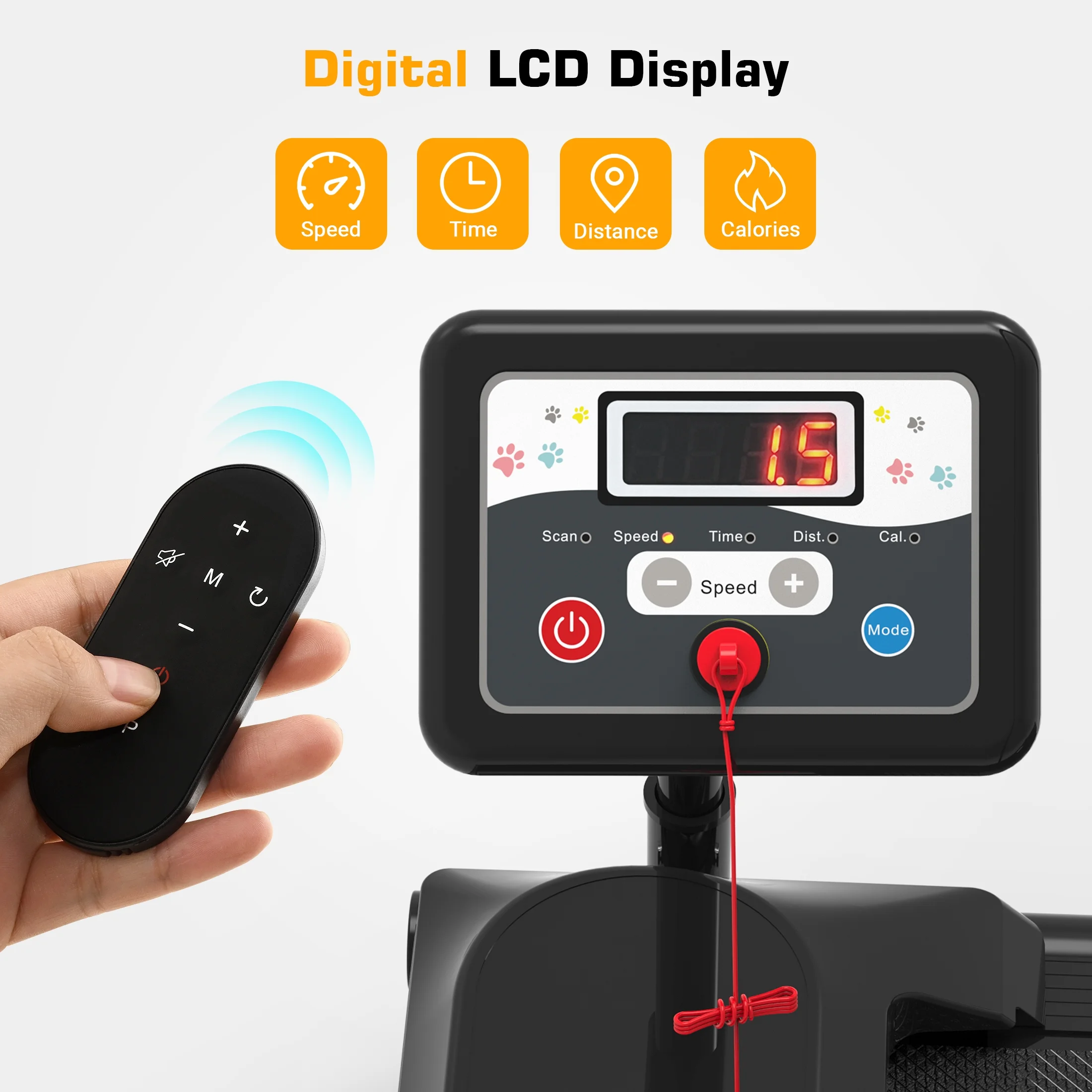 Multi-Function LCD Display: Displays real-time data including time, speed, distance, and calories burned, so you can easily track your dog's progress.