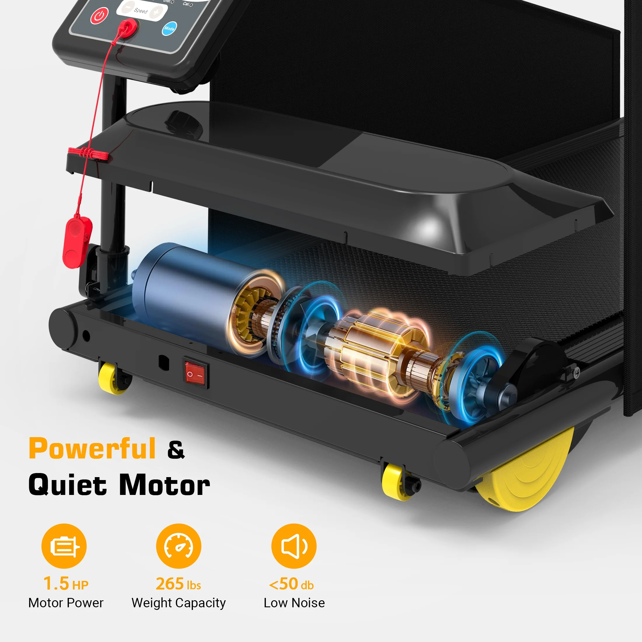 Remote Control Operation: Convenient one-touch remote control allows you to start and stop the treadmill and mute the sound.