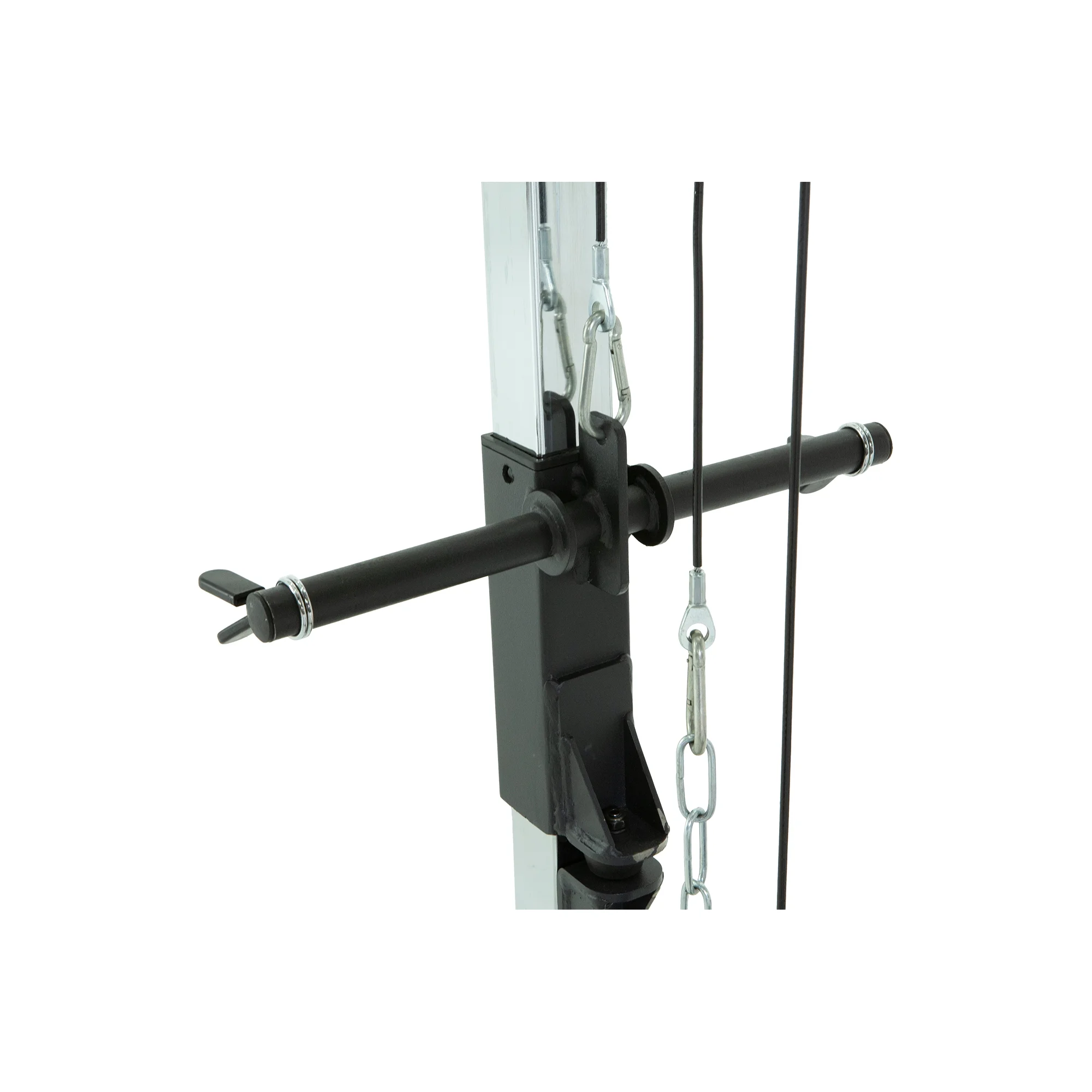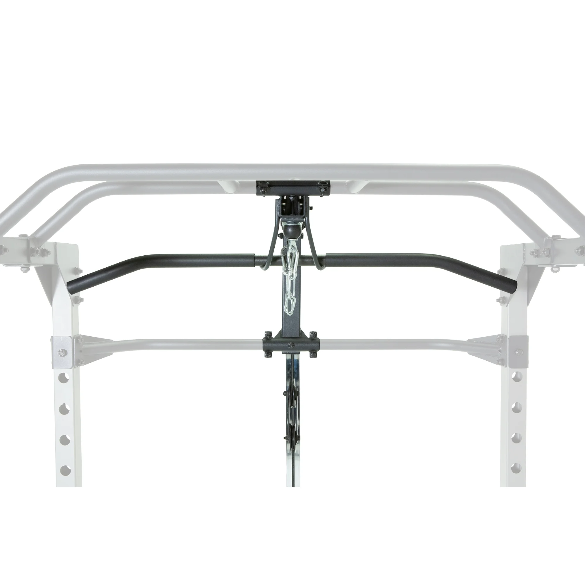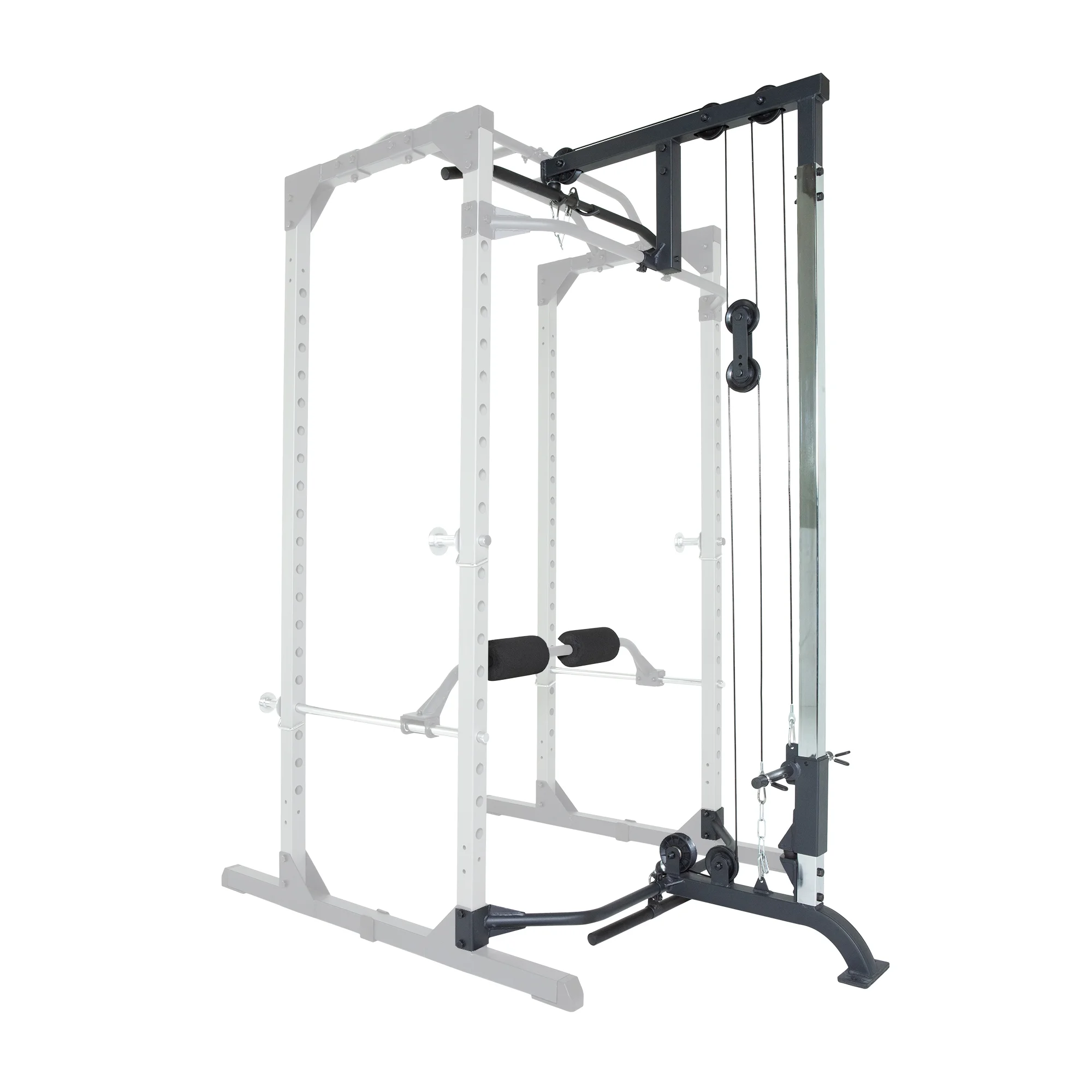 Achieve a sculpted back and arms from the comfort of your own home with the PROGEAR 310 Olympic Lat Pull Down and Low Row Cable Attachment for the Progear 1600 Ultra Strength 800lb Weight Capacity Squat Stand Power Rack Cage. This attachment features a high tensile strength nylon-coated cable, high and low row pulley systems, and a 2�?x 2�?chrome guide rail for smooth operation. With a weight plate capacity of 265lb and included 39�?let bar and 20�?low row bar attachments, the PROGEAR 310 is the perfect addition to your power cage routine. Designed to be used with the PROGEAR 1600 Power Cage, this attachment also comes with lock-in J-hooks for added convenience. Get the results you want and train hard with the PROGEAR 310 Olympic Lat Pull Down and Low Row Cable Attachment.