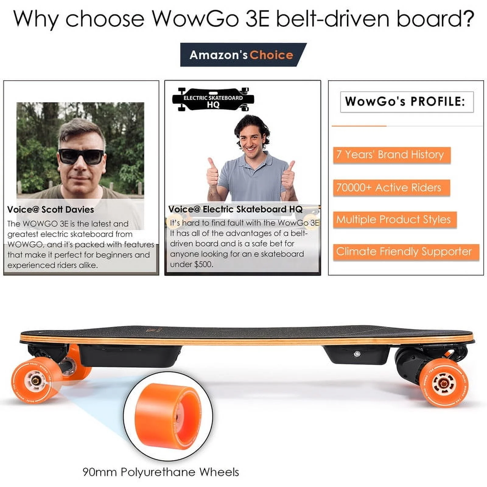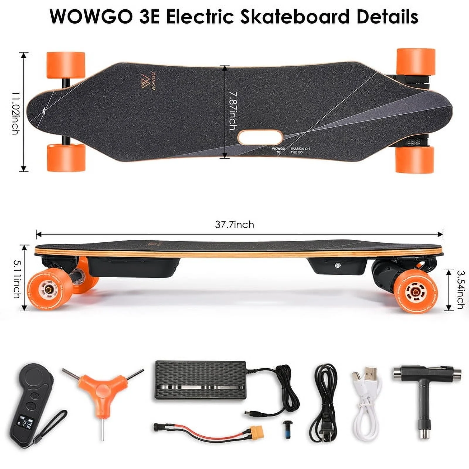 Wowgo 3E Electric Longboard Portable lightweight E Skateboard with Dual Motors Belt, Black, 330ib