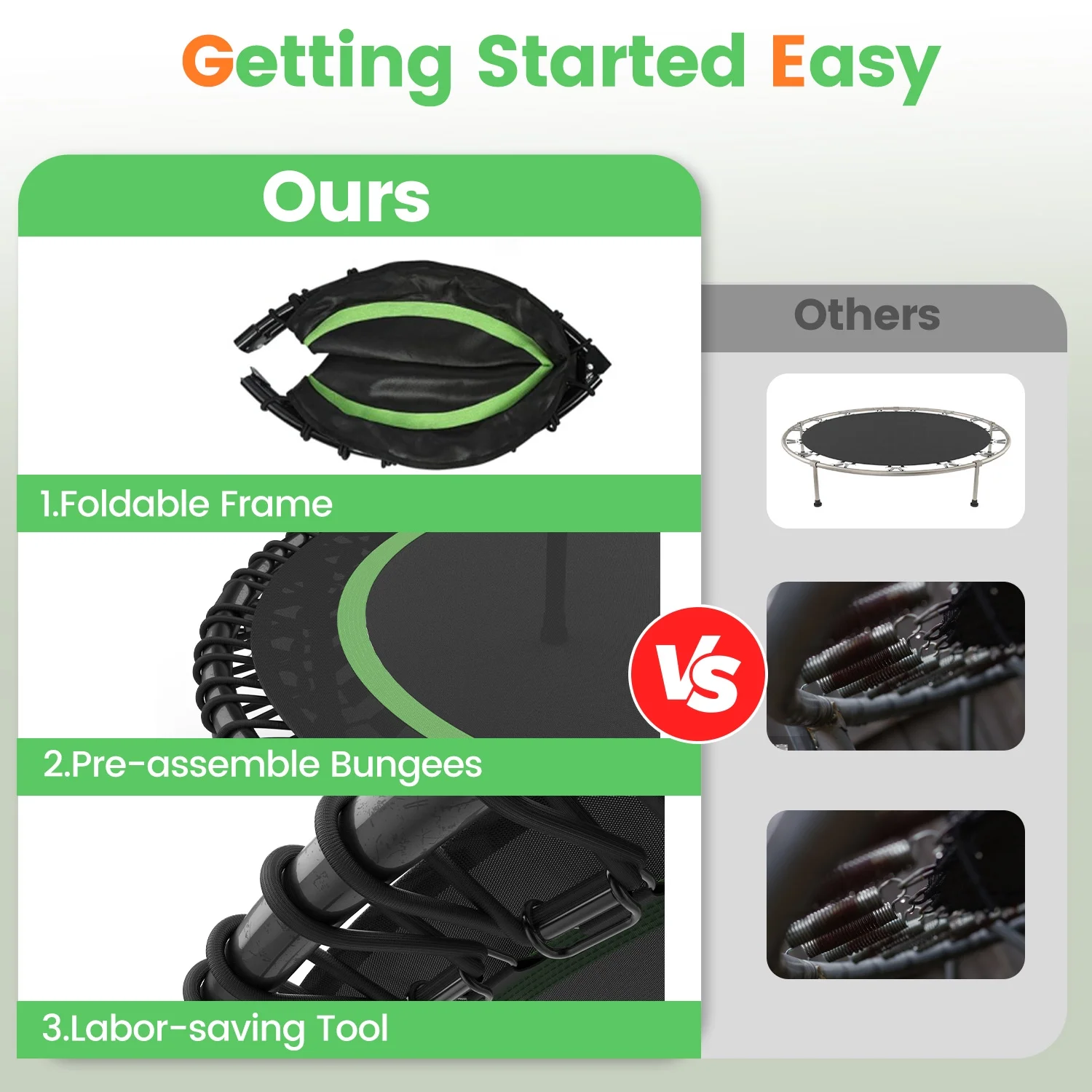 - ��Kindly Reminder��:Please read the user manual before installation. This fitness rebounder installation process is relatively simple, but requires some physical labor. It is best to install two people! Special tool is included for assembly.
