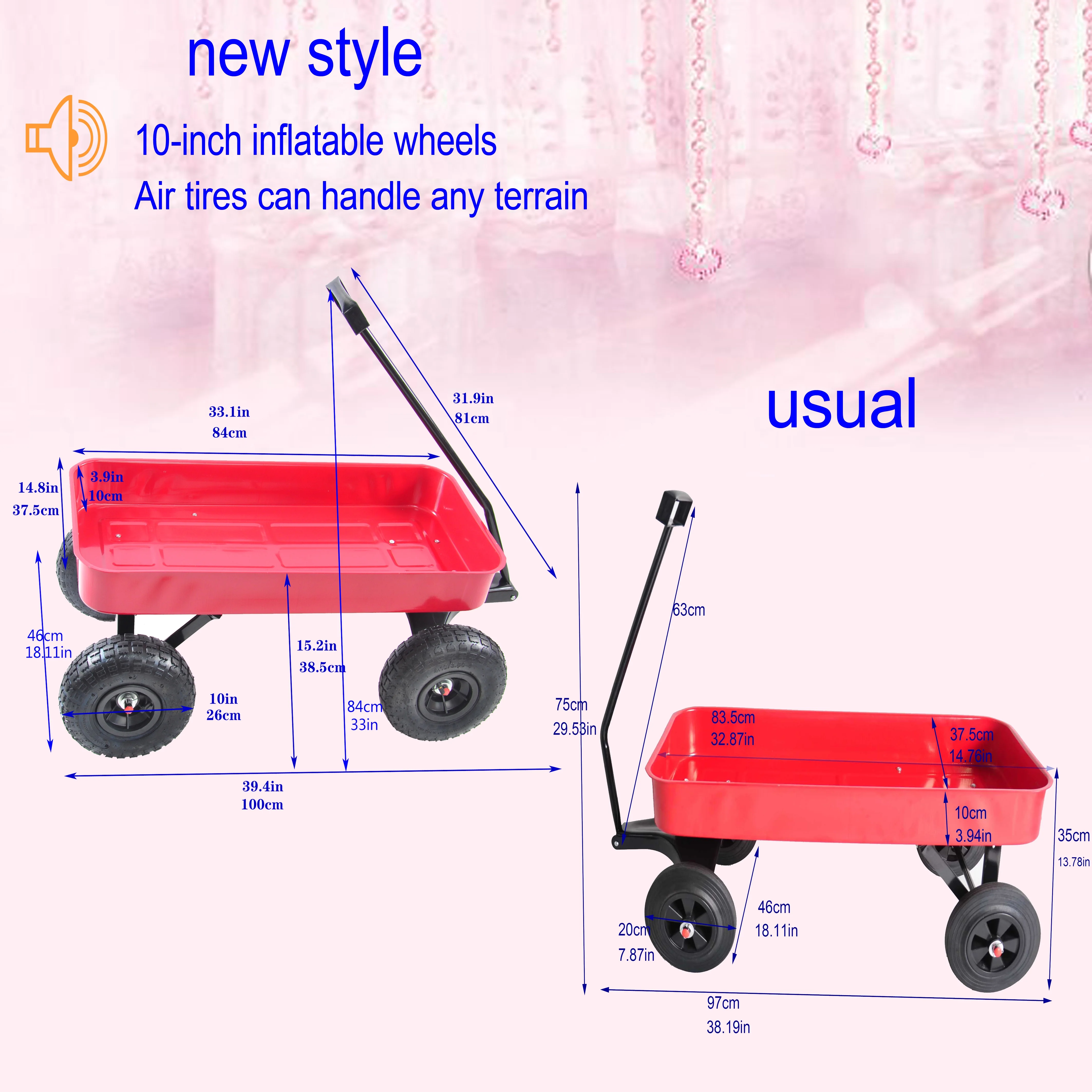 Clearance! Outdoor Sport Red Wagon All-Terrain Pulling W/Removable Wooden Side Panels Air Tires Big Foot Panel Wagon 330 lb. Weight Capacity Sturdy All Steel Wagon Bed Kids' Pull - Along Wagons (Red)