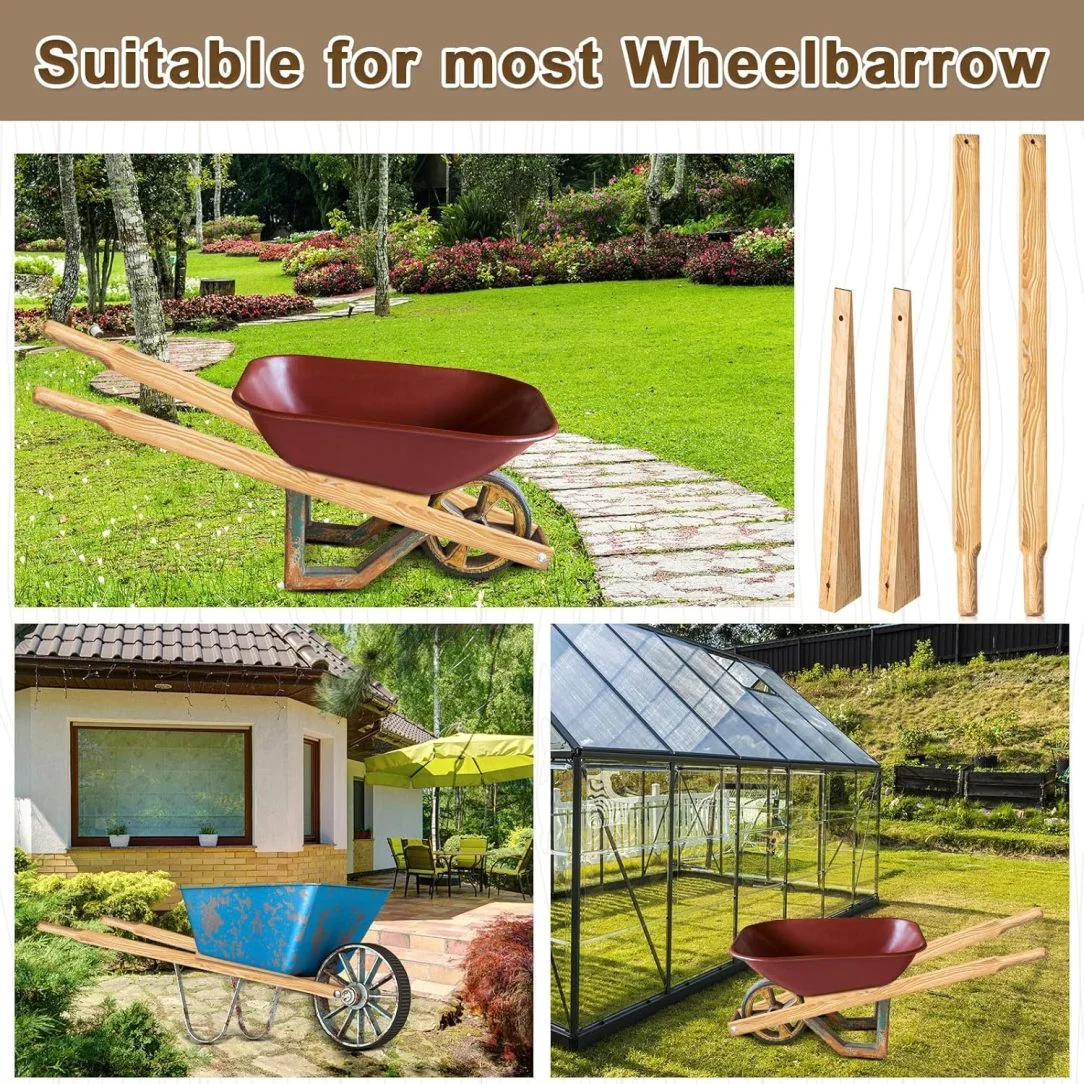 - Reliable Material: replacement wheelbarrow handles are made of quality natural pine wood with clear finish, hard texture, reliable and durable for your long time use; Our replacement wheelbarrow handles are suitable for most of the wheelbarrow types, please check the size before purchasing
