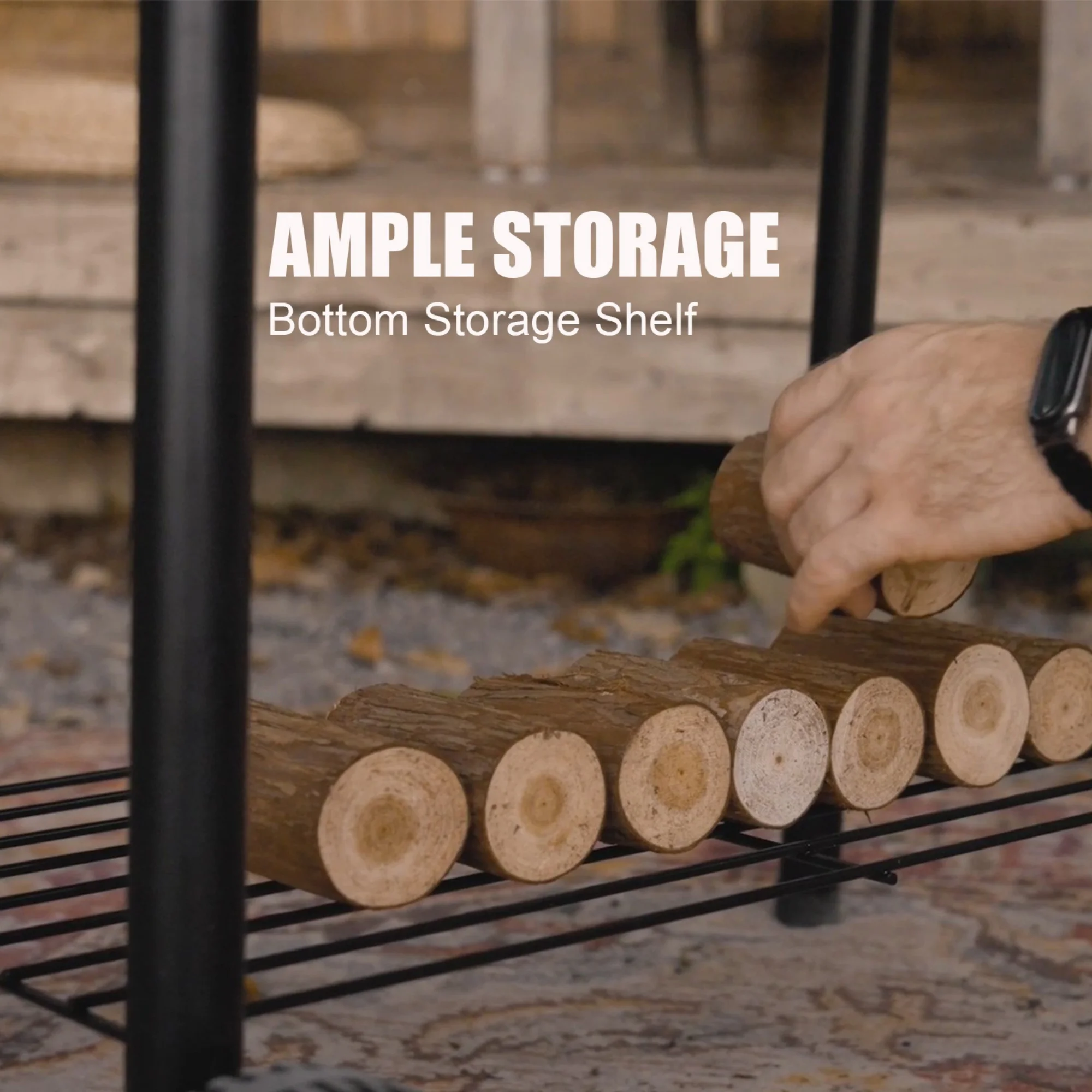 - Multi-level system: Main grate + warming rack + tool shelf