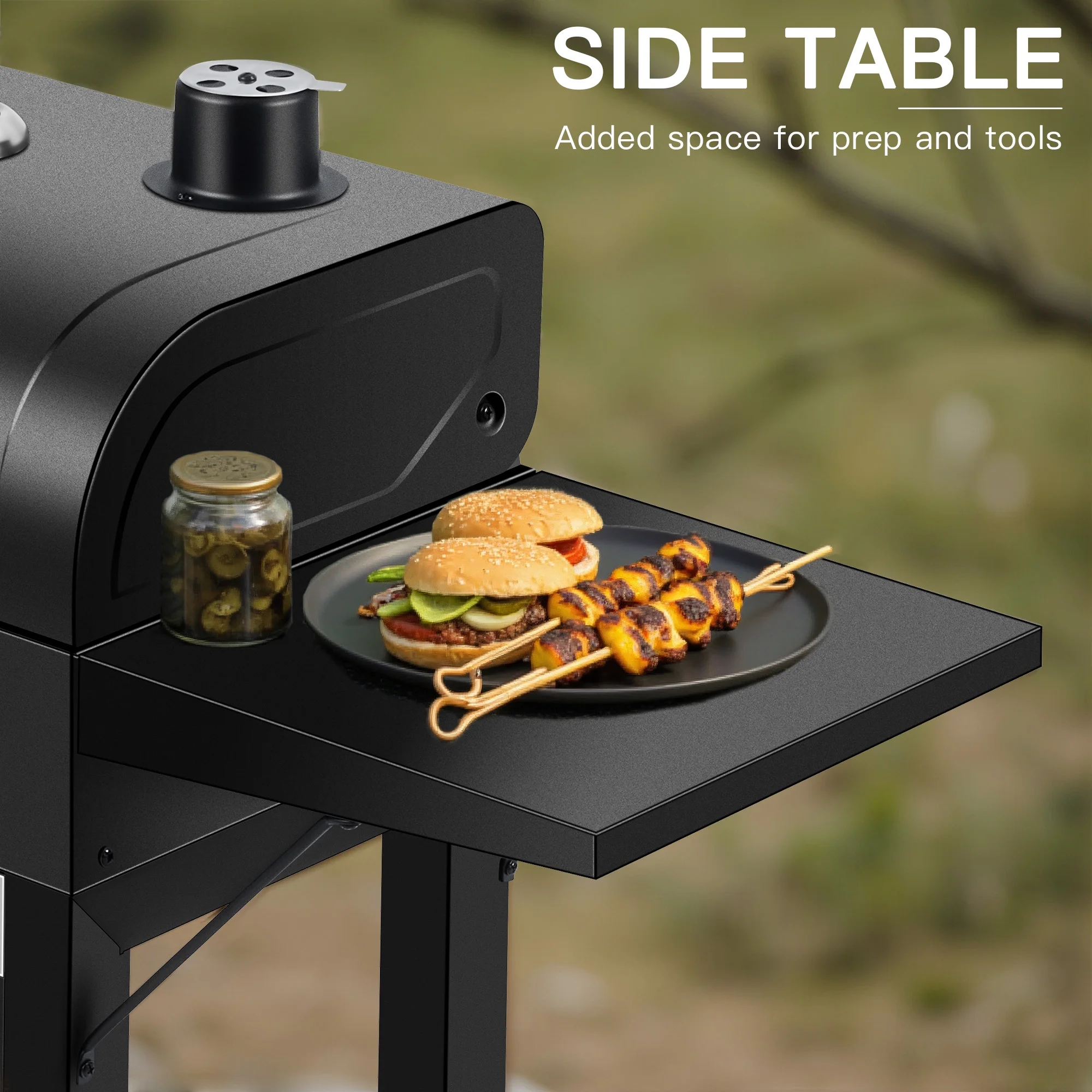 - Convenient Side Shelf & Bottom Storage Rack - Prep and organize with ease �C sturdy side shelf for utensils and ingredients, plus a lower rack for charcoal, wood, or grilling tools.