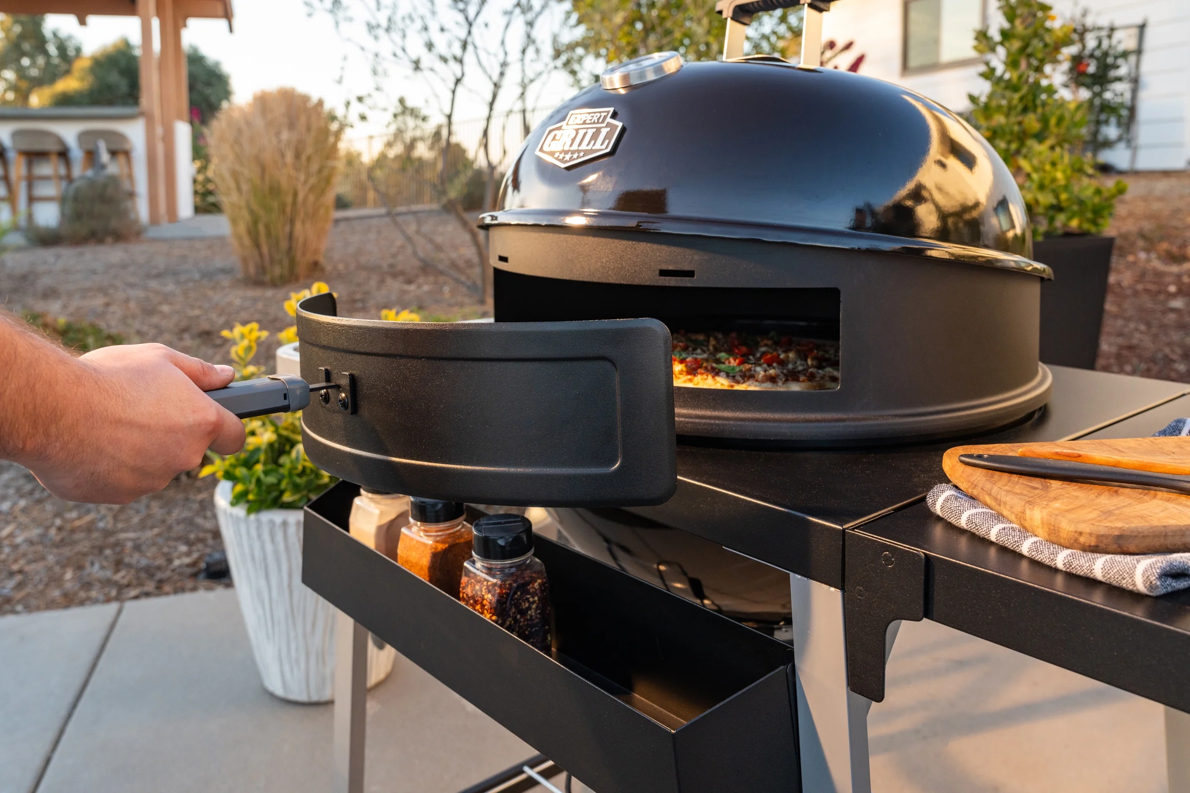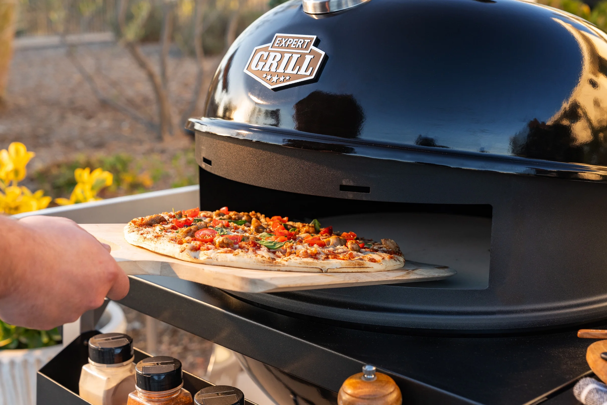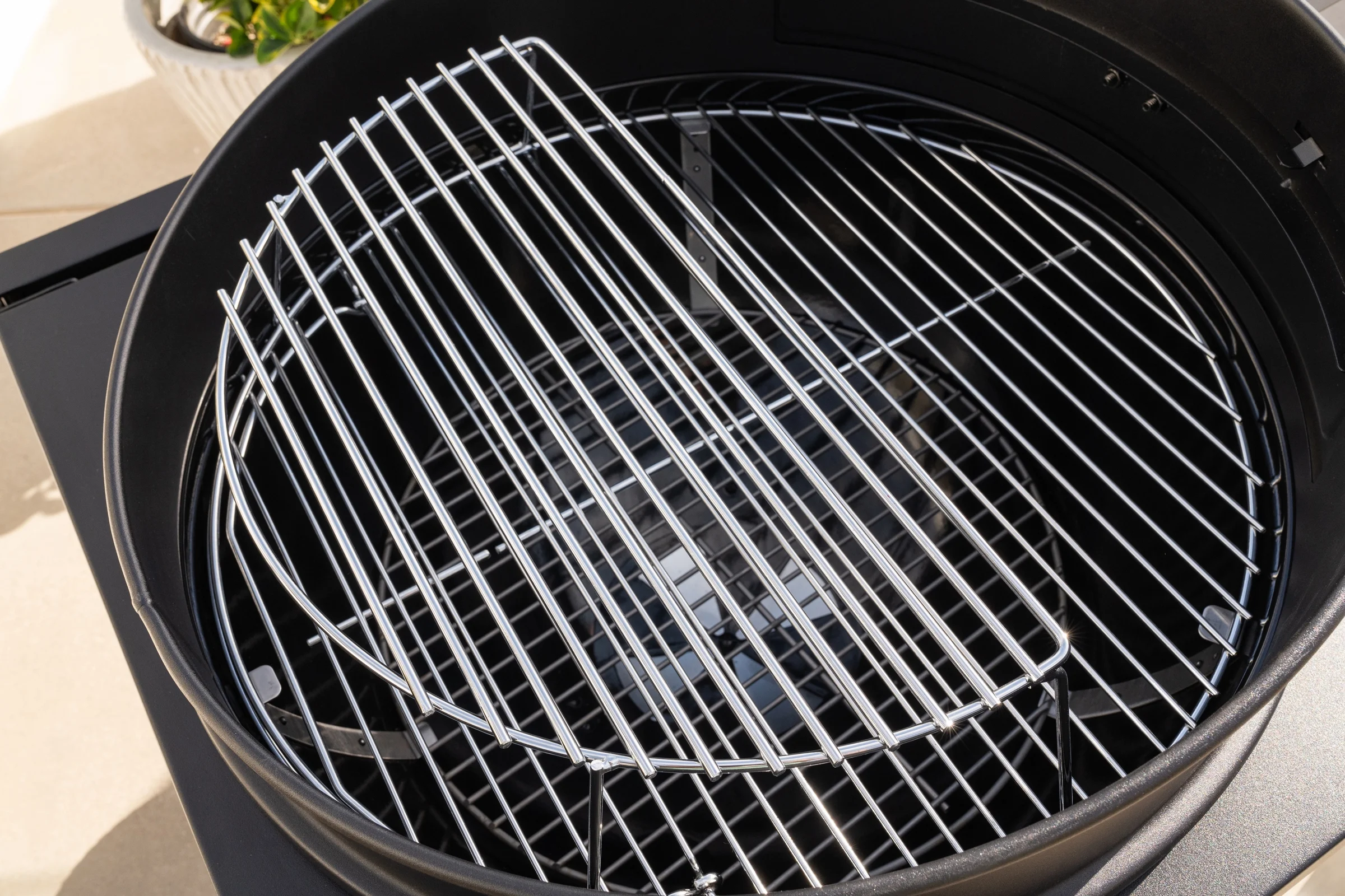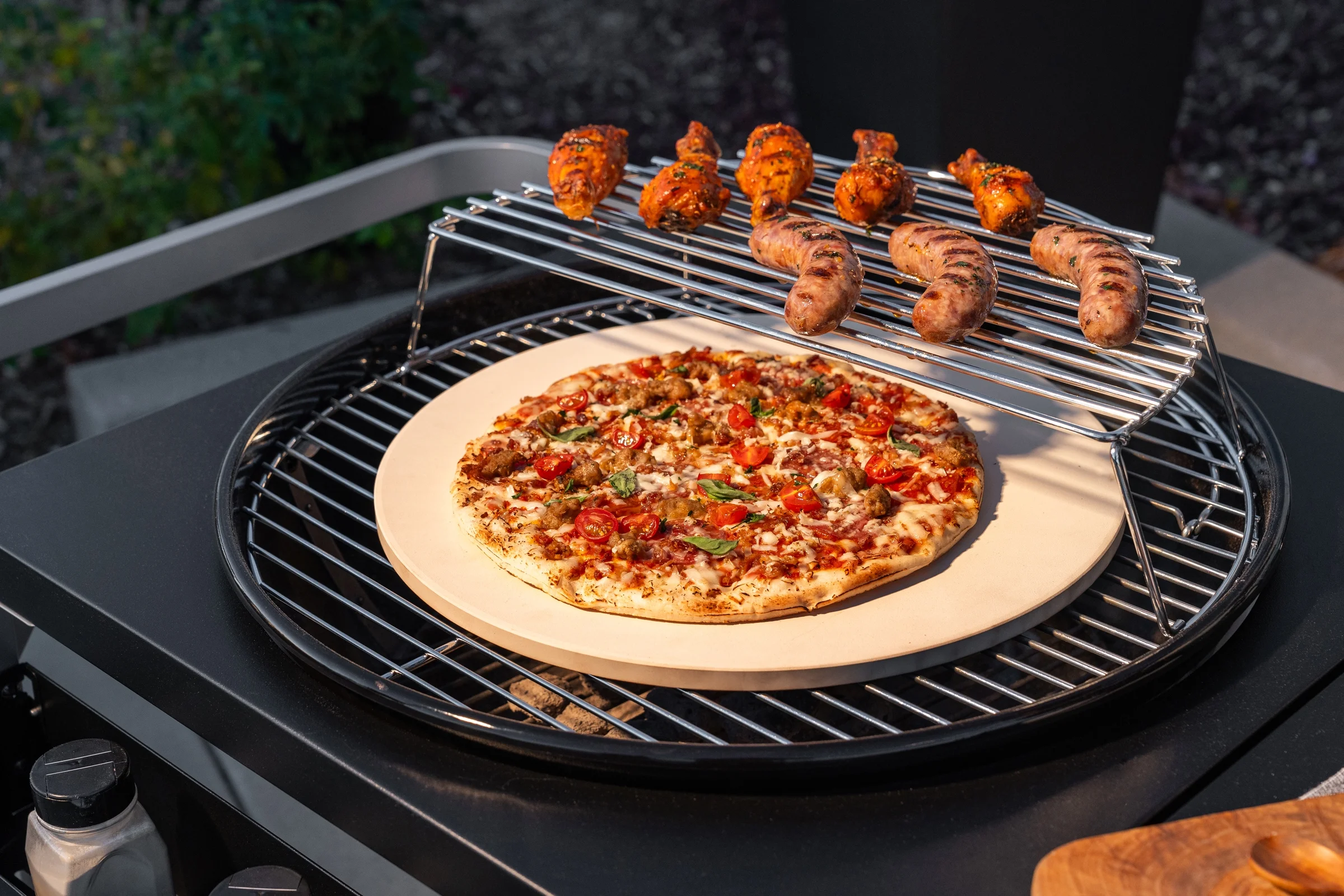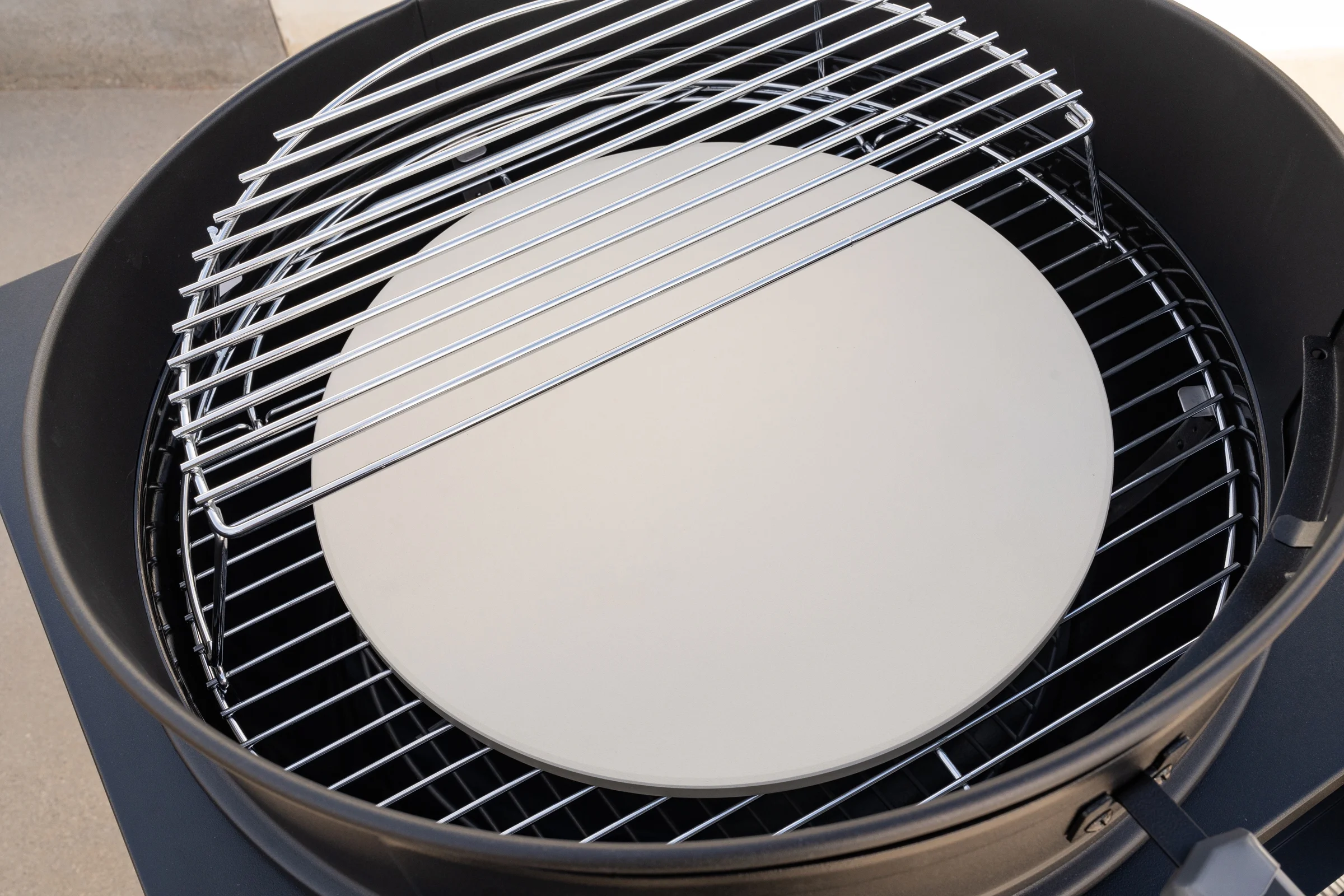 - Includes a 16�� pizza stone and rotary cooking grid, turning your grill into a charcoal-fired pizza oven for crispy, homemade pizzas.