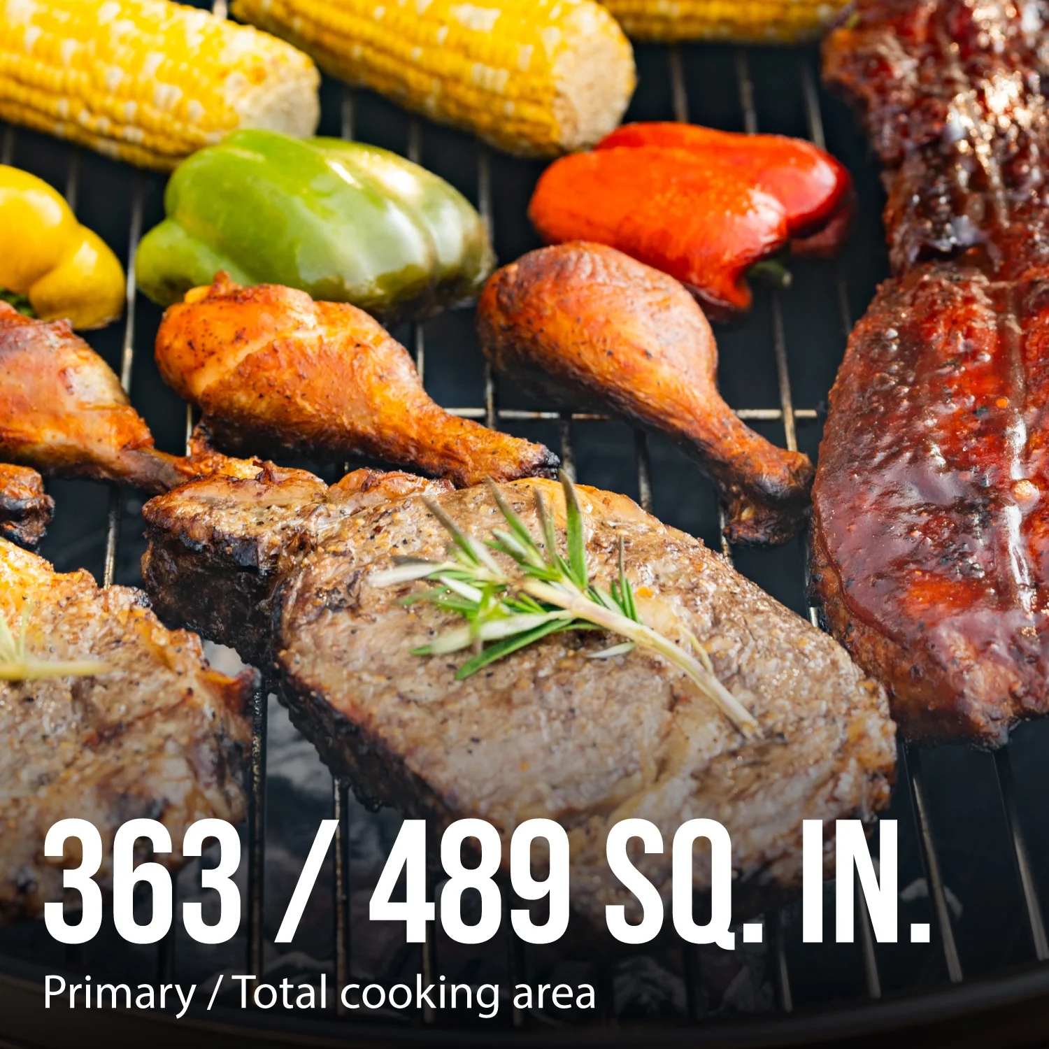 - 489 sq. in. of cooking space lets you grill up to 17 burgers, perfect for family gatherings and BBQ parties.