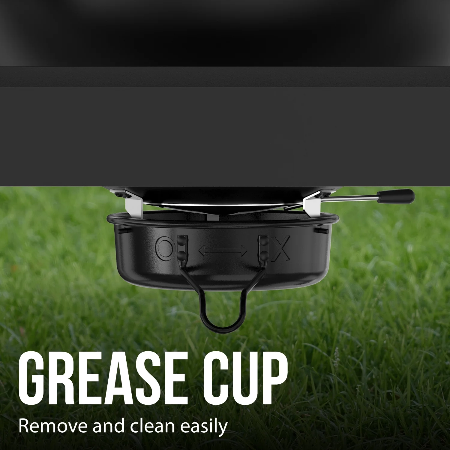 - Removable ash catcher makes clean-up simple, and heat-safe handles protect your hands.