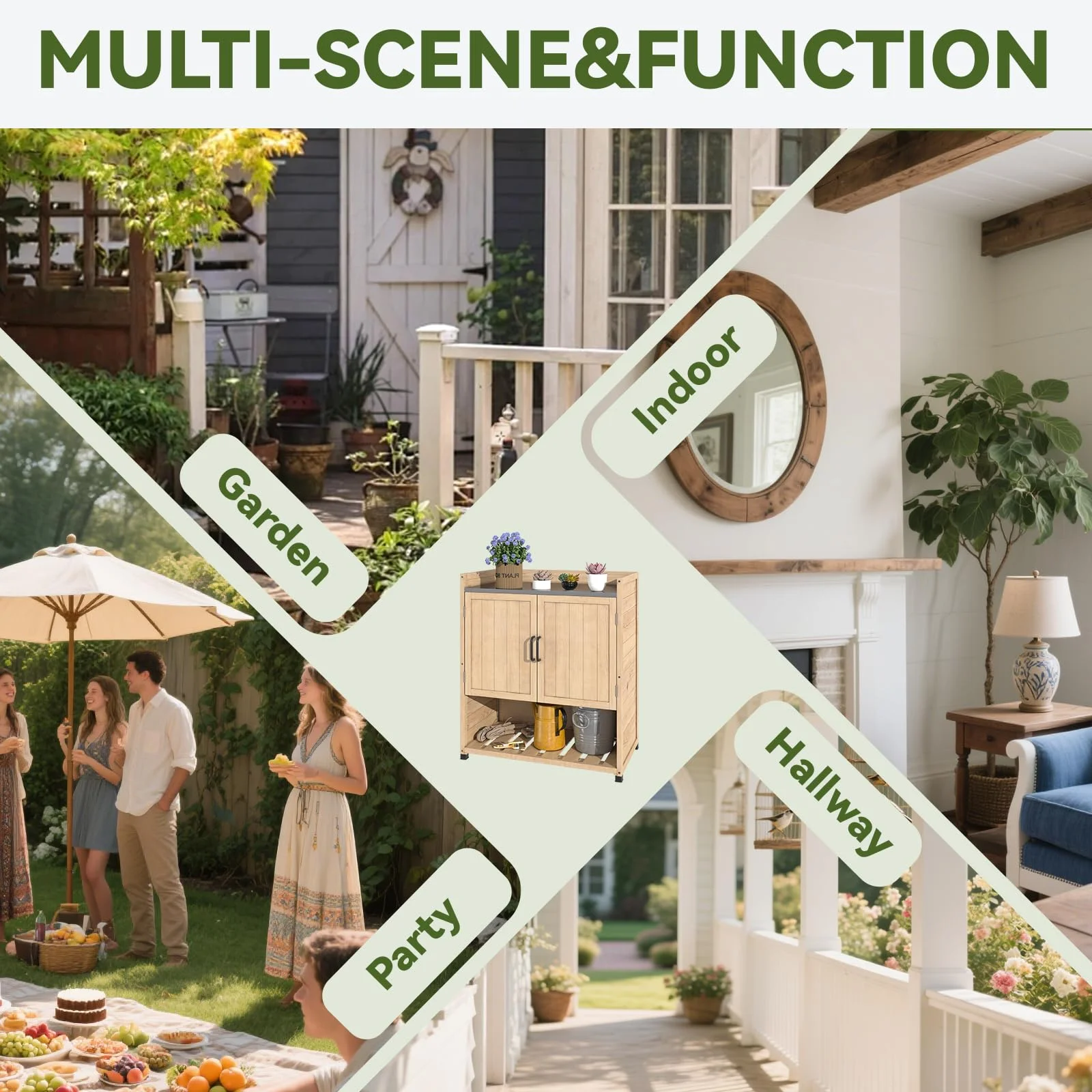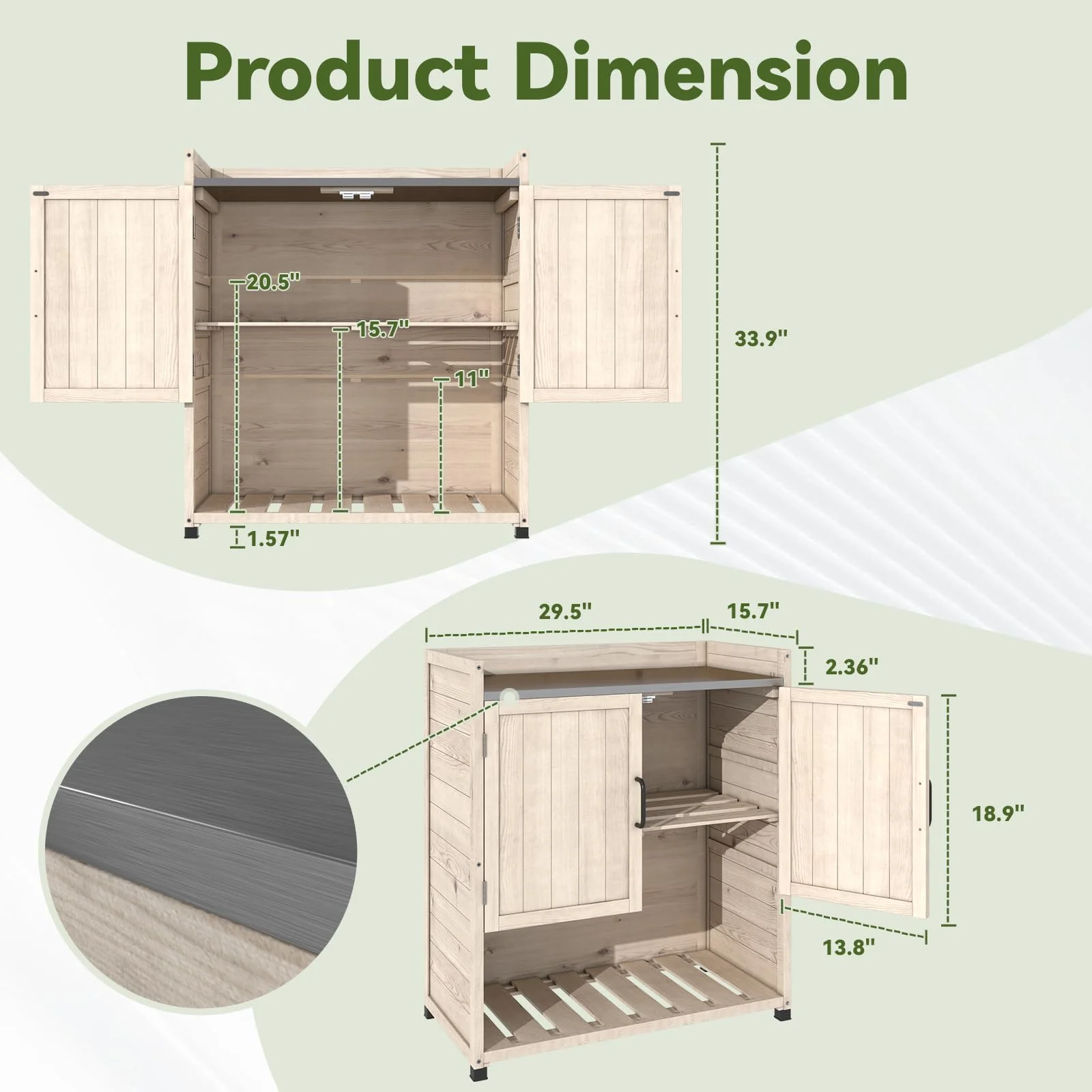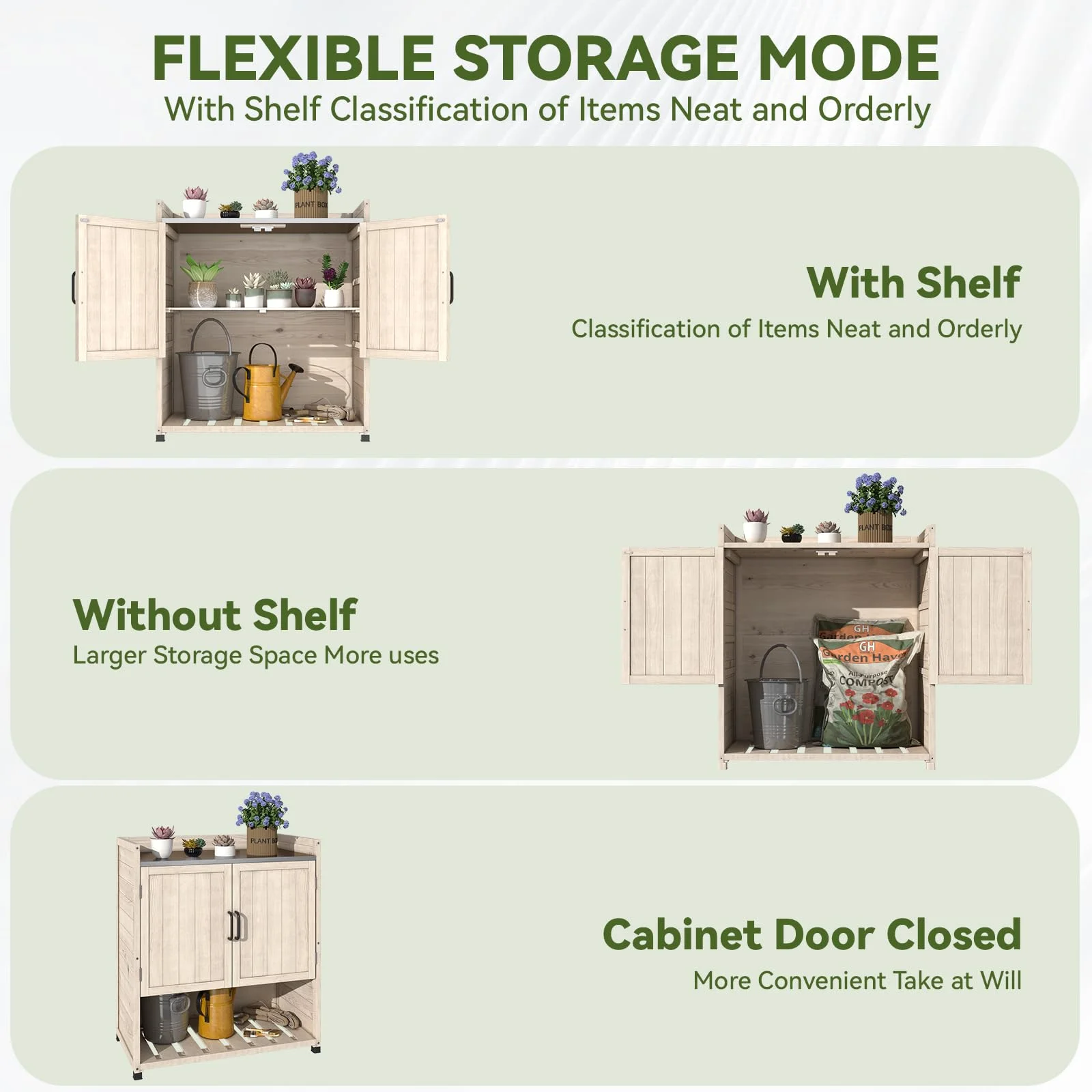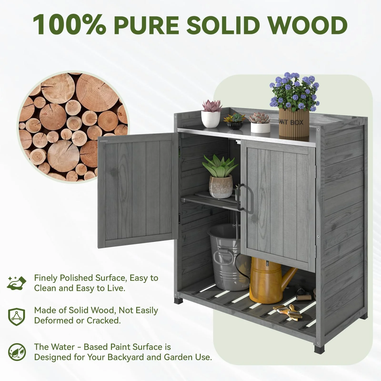 - ��Spacious & Customizable Storage��With ample storage space, this workstation allows you to rearrange internal dividers to fit your specific needs. Whether you're storing gardening tools, patio essentials, or decor items, the flexible layout ensures everything has its place. Effortlessly organize and access your belongings with ease.