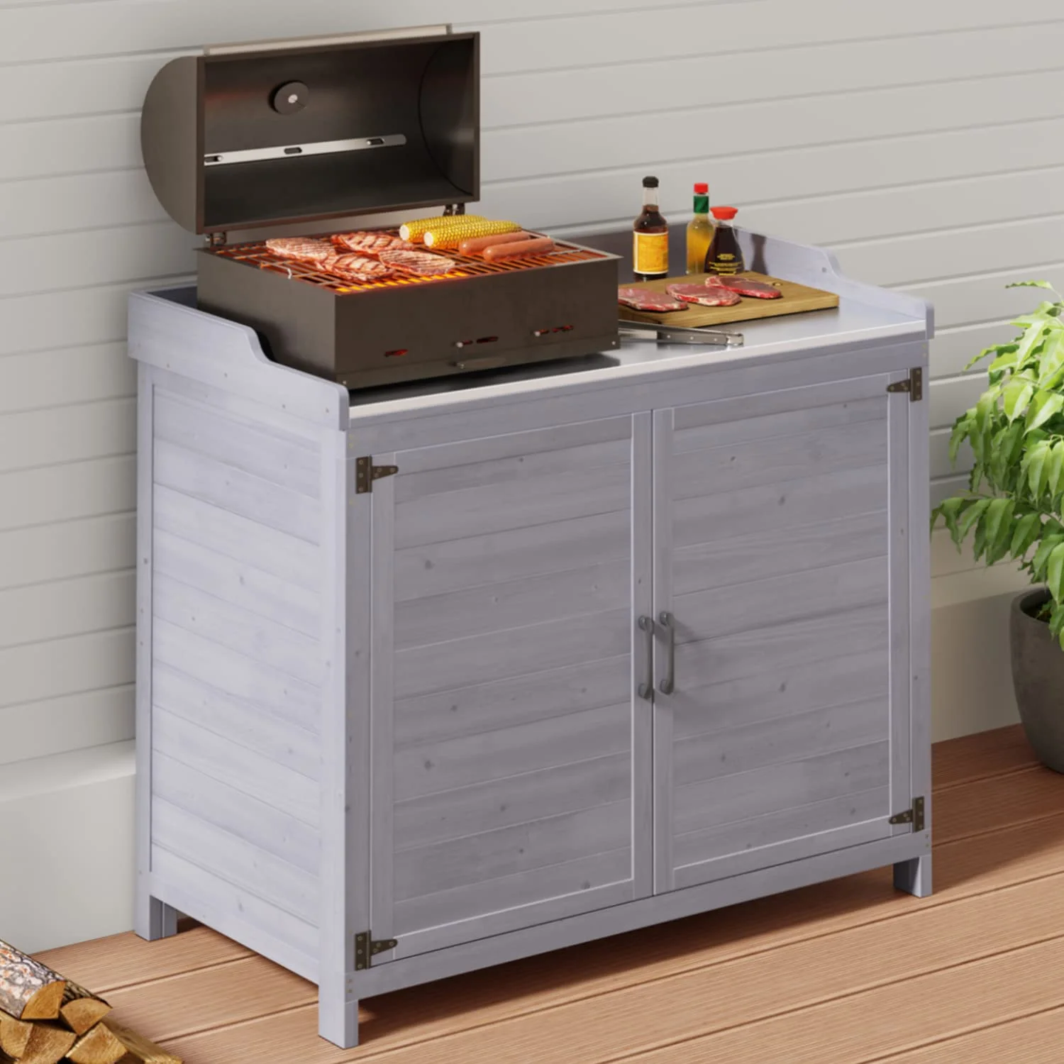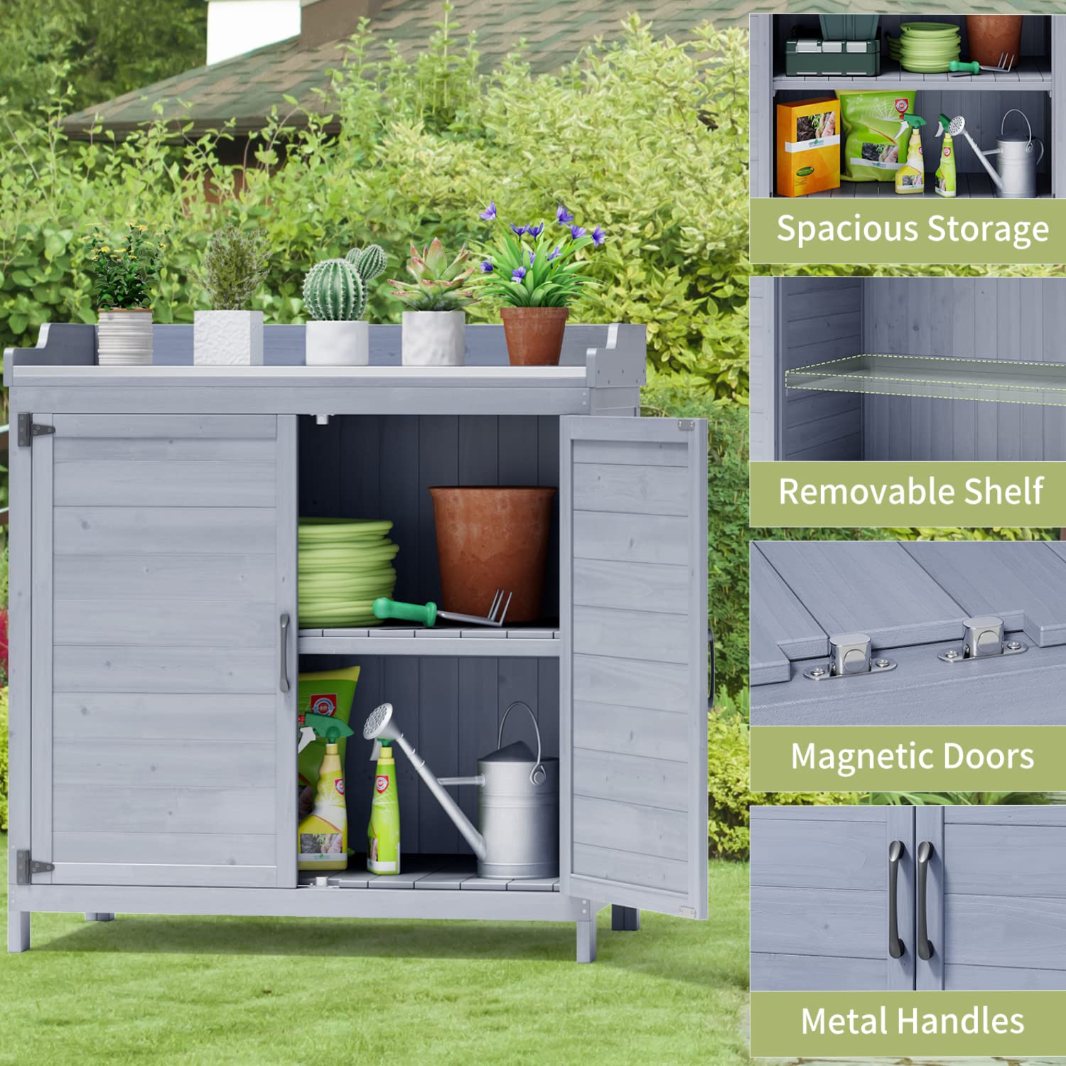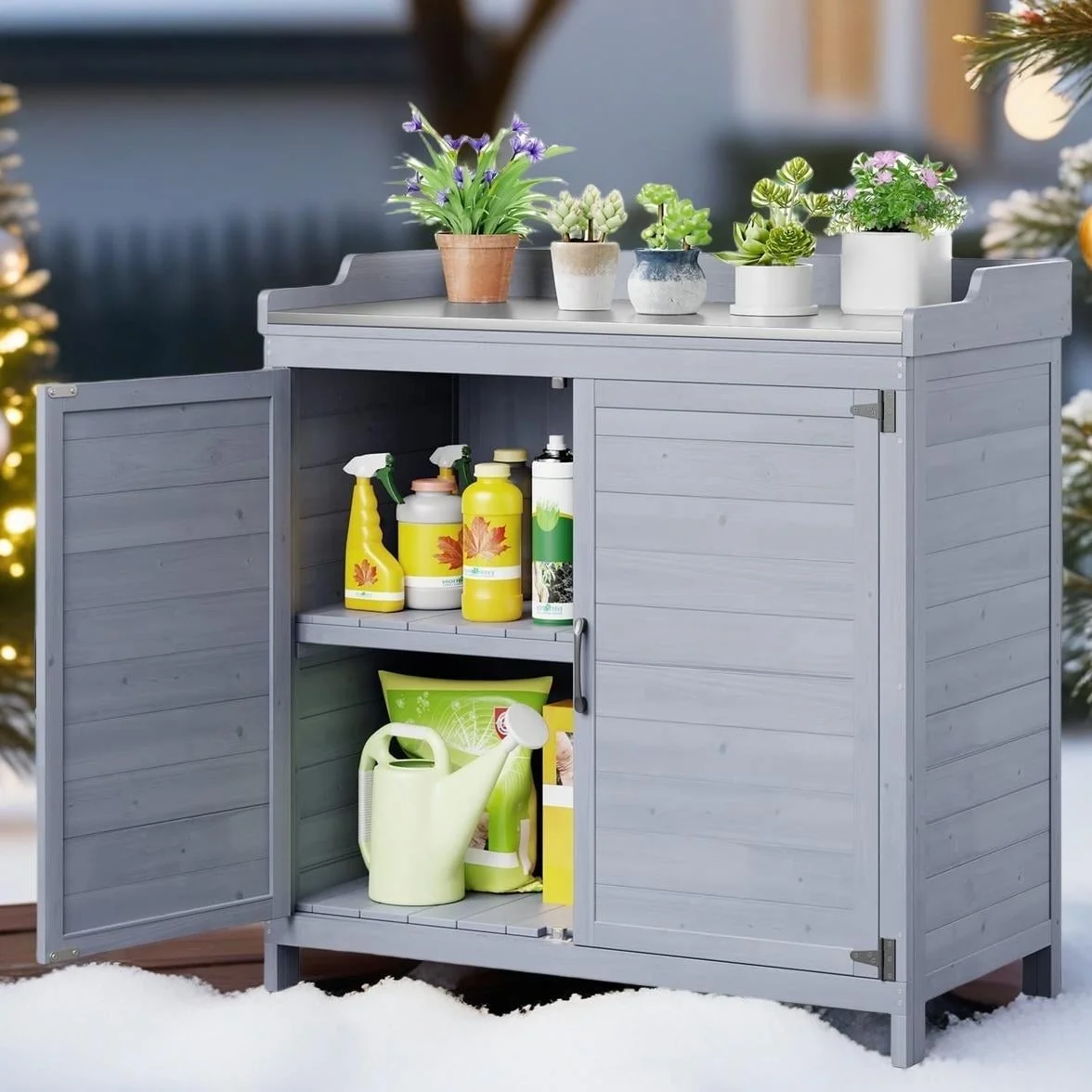 - ?? Multiple Occasions:This Outdoor Storage Cabinet is a flexible and versatile piece of furniture. It can be used for Outdoor Garden Potting Bench Table, and can also be used as an outdoor cooking table or barbecue table.