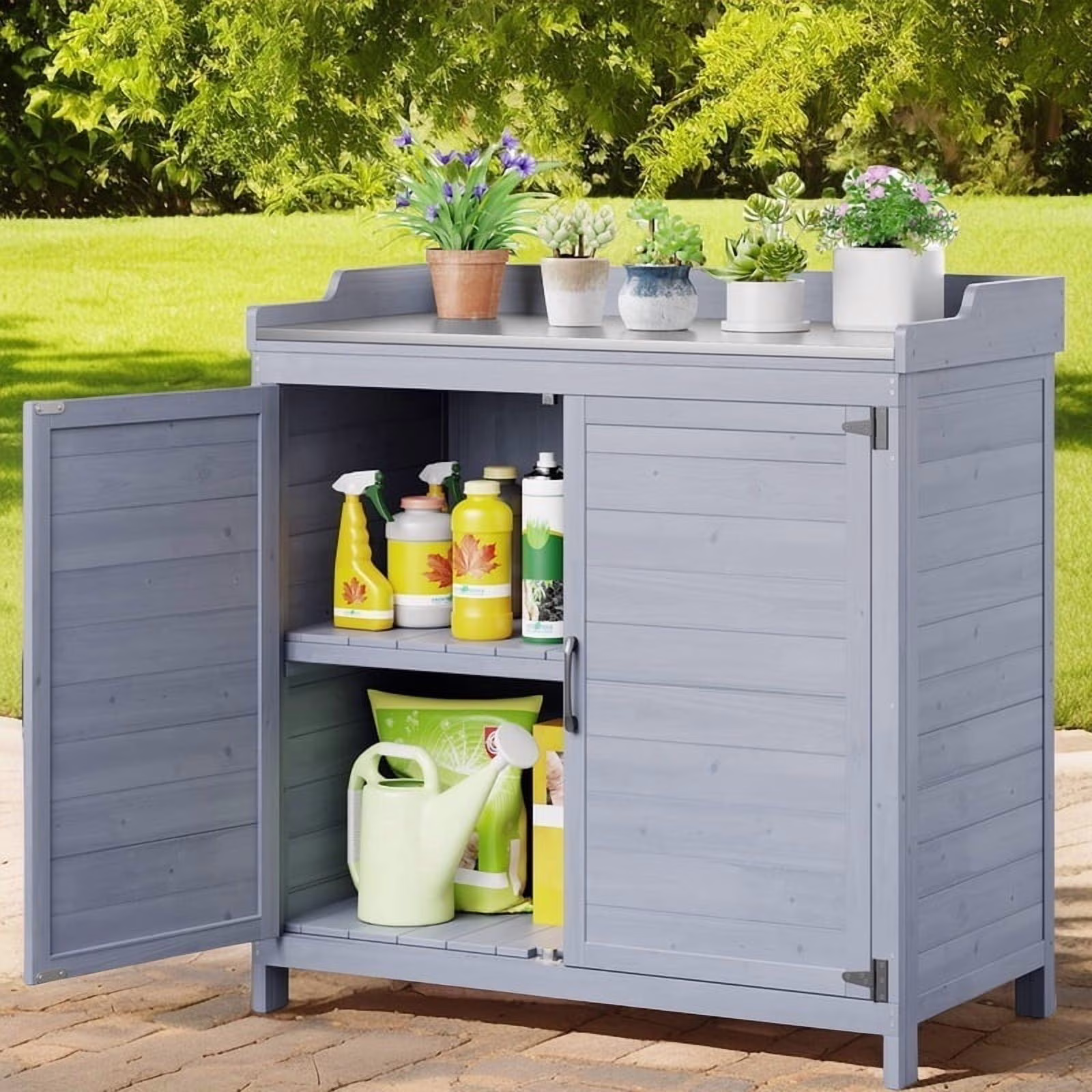 ?Lofka Outdoor Storage Cabinet/Garden Potting Bench Table