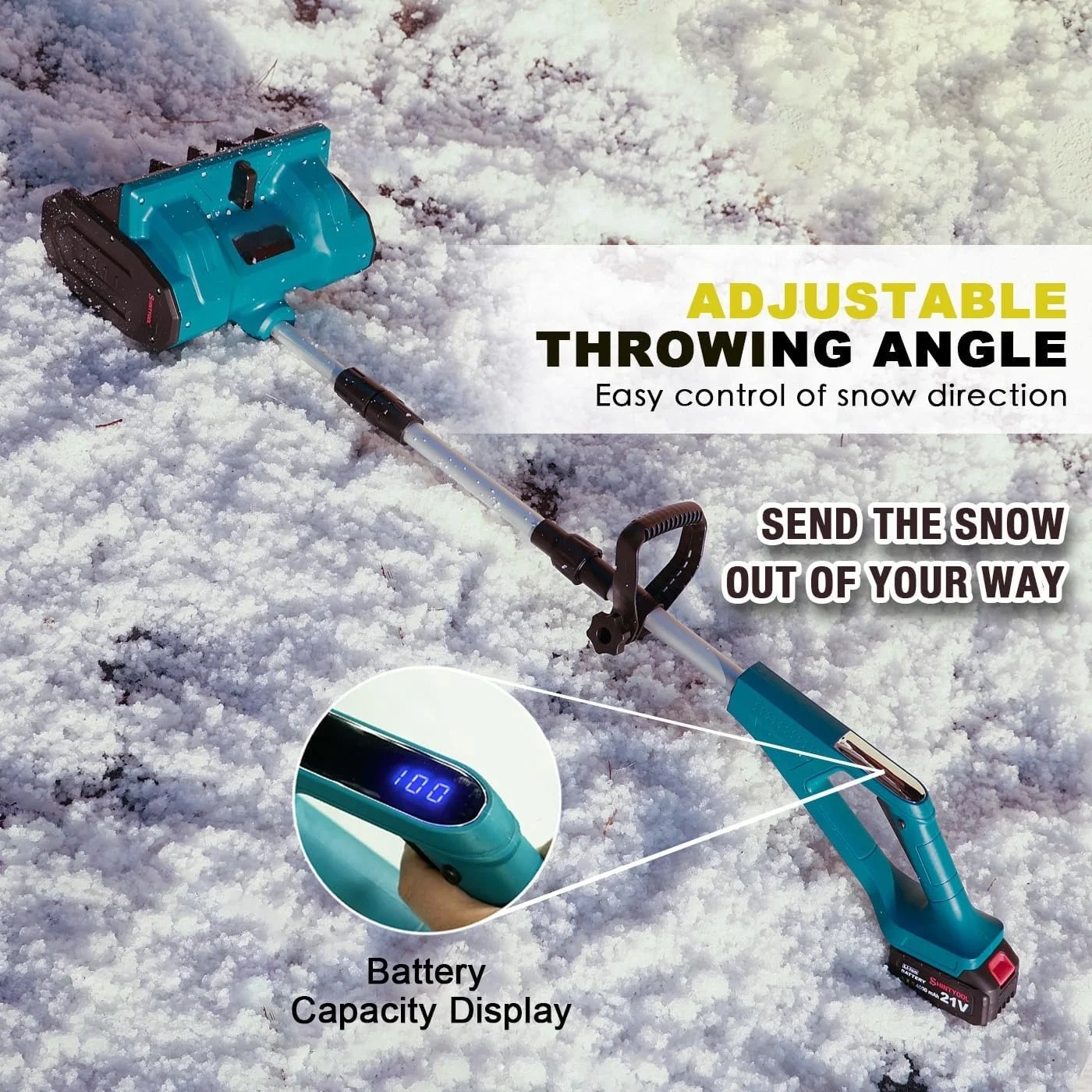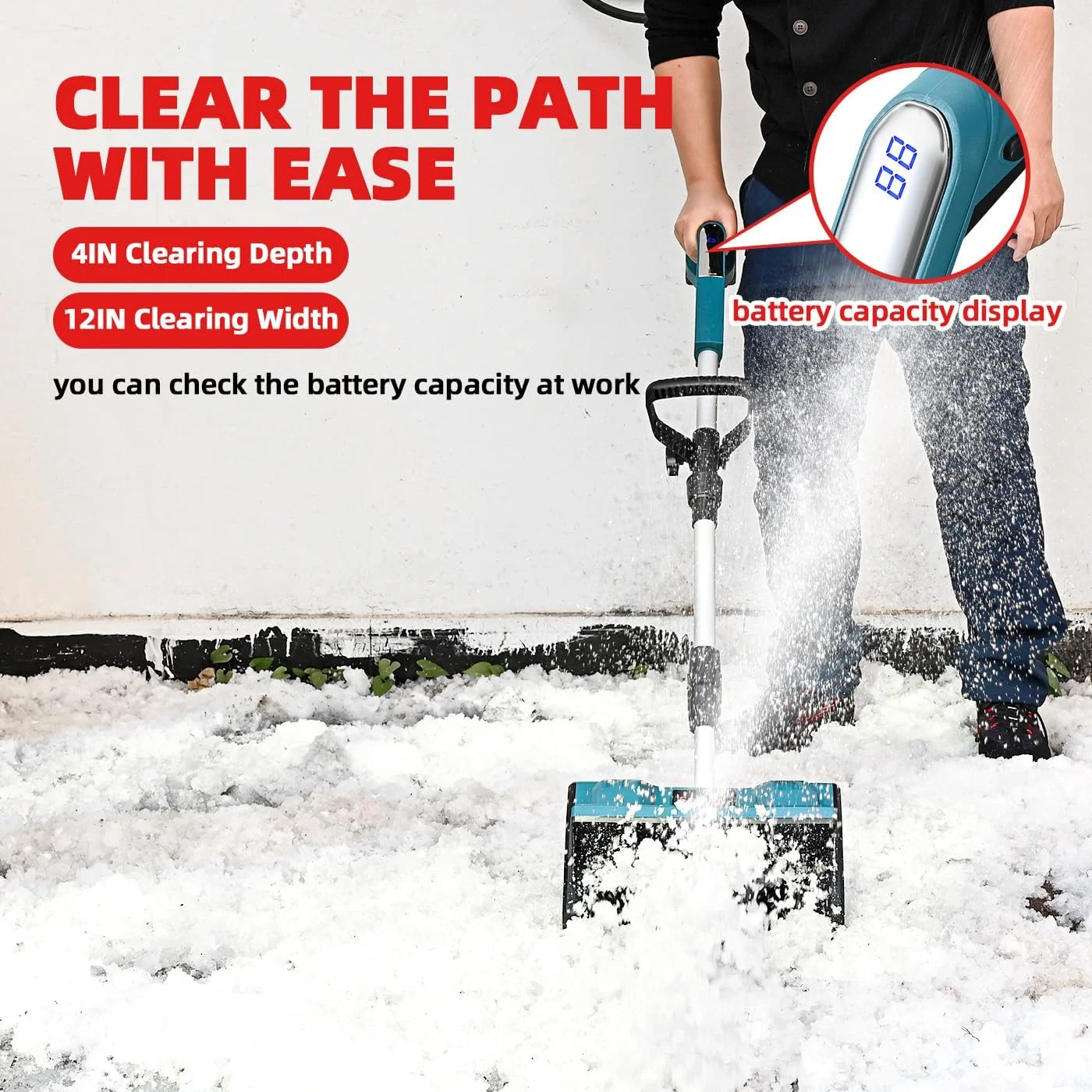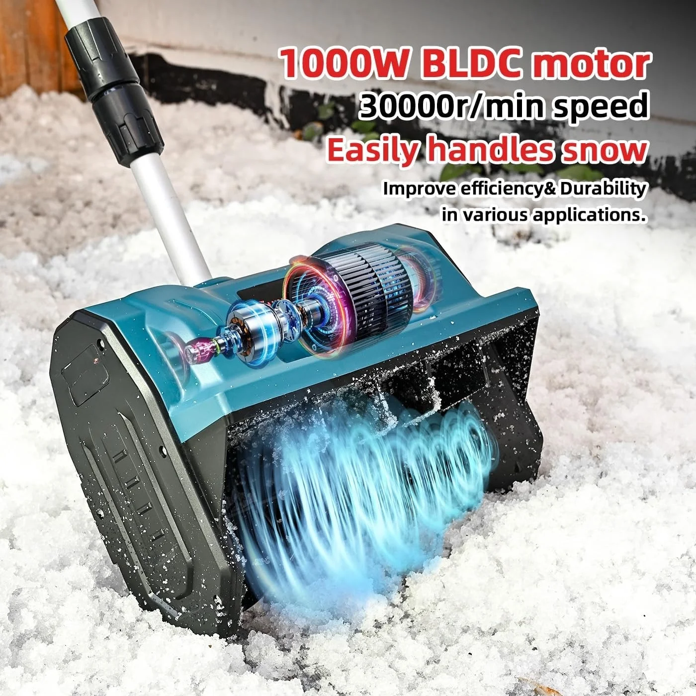 - Operates cordlessly for enhanced mobility during snow removal.