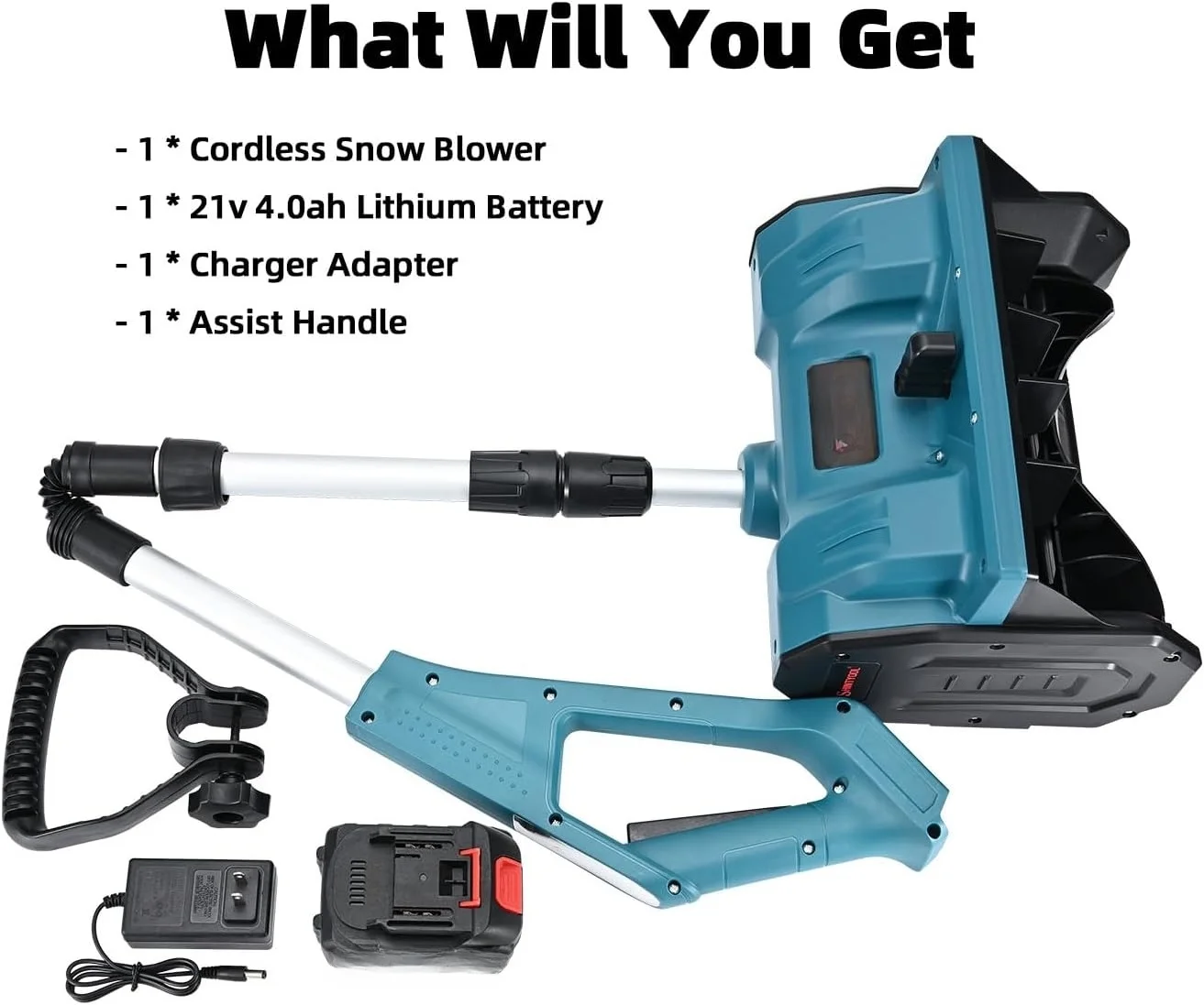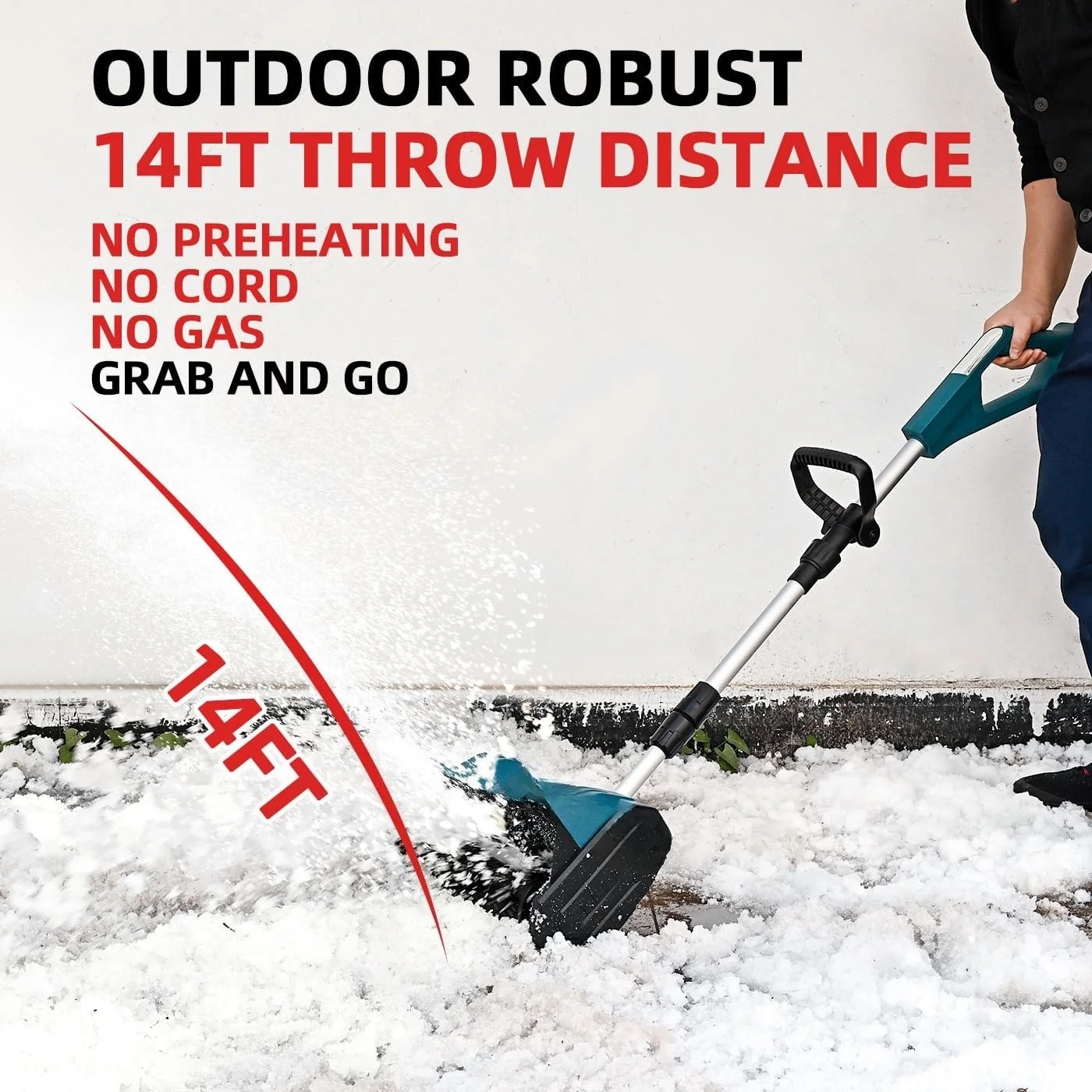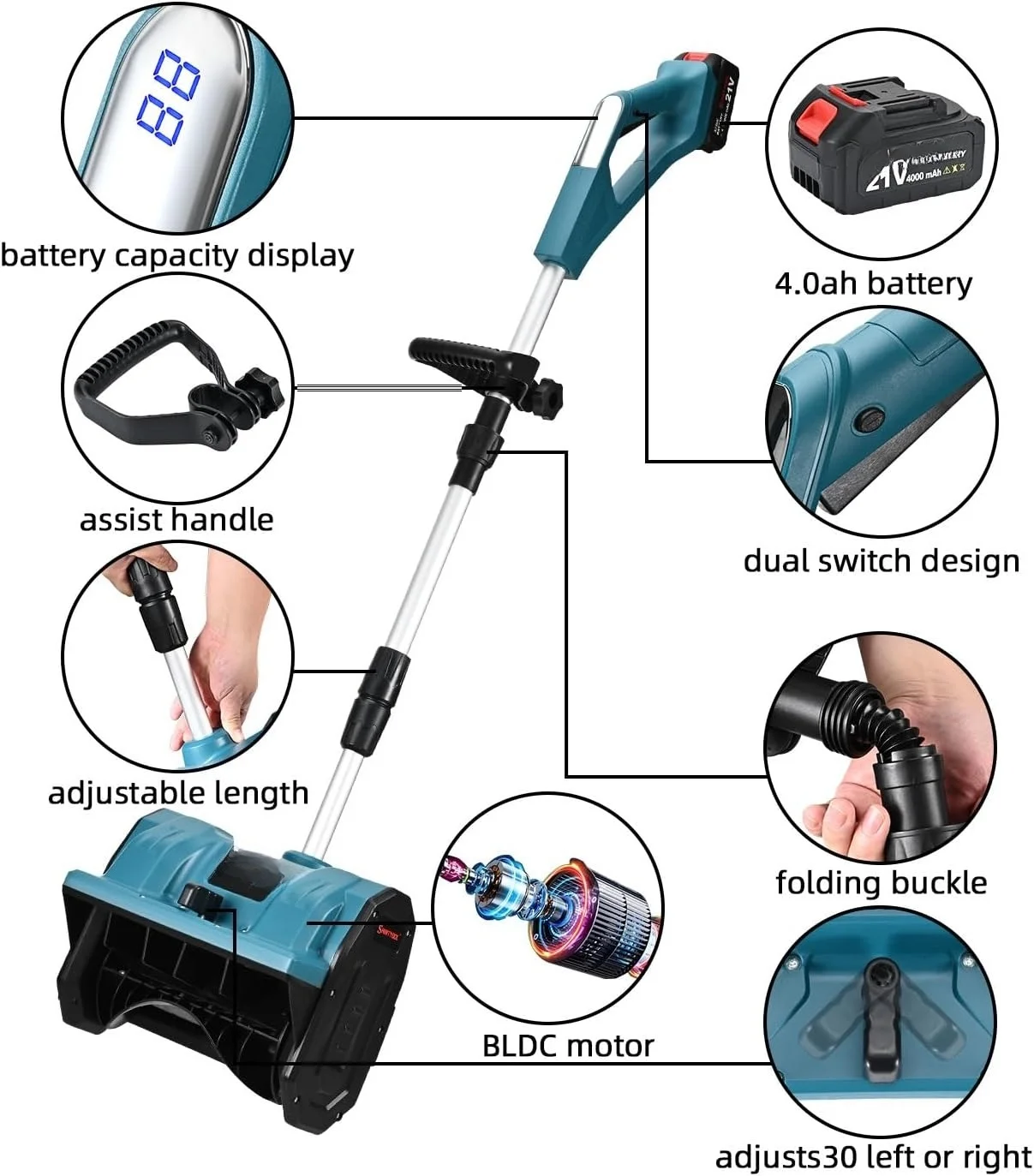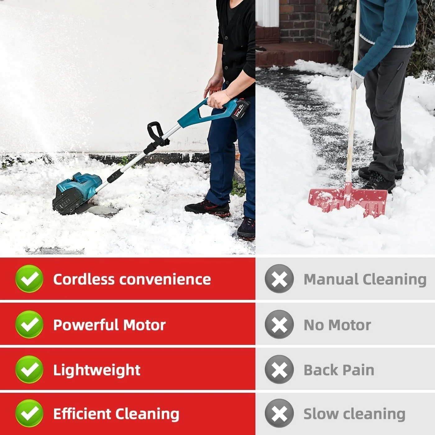 - Operates cordlessly for enhanced mobility during snow removal.
