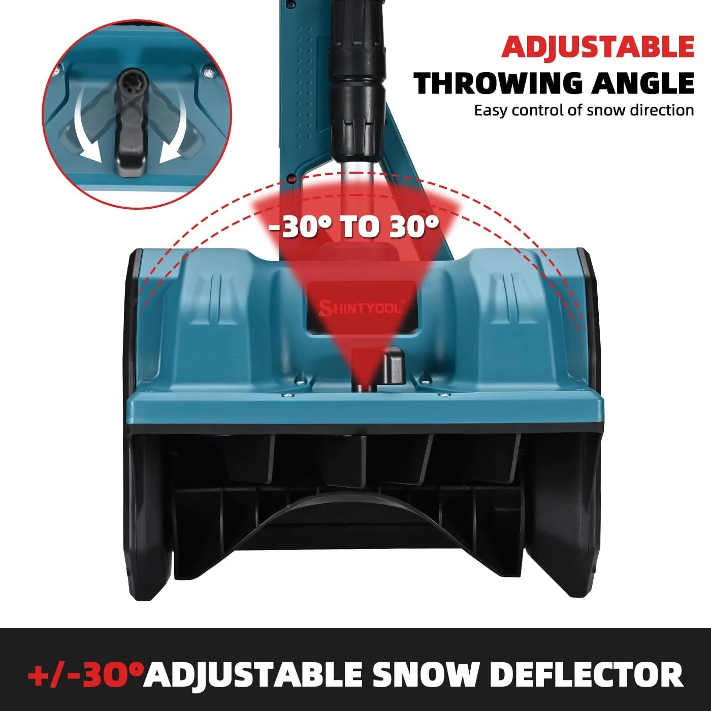 - The directional plate adjusts 30�� left or right, providing 60�� of control for precise snow discharge.