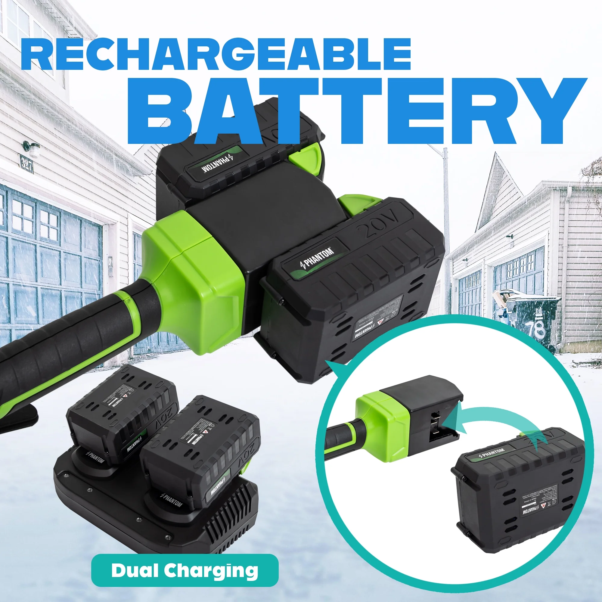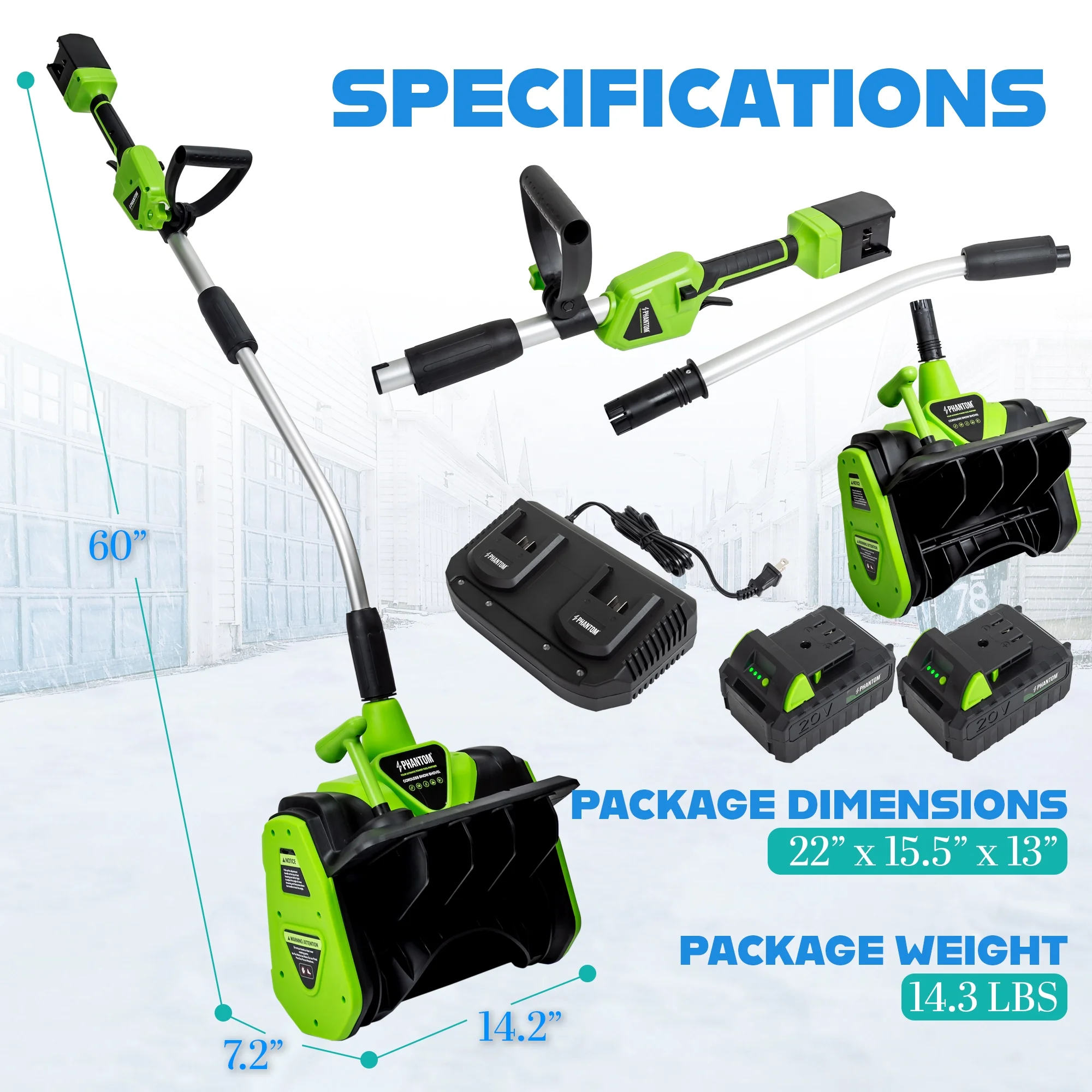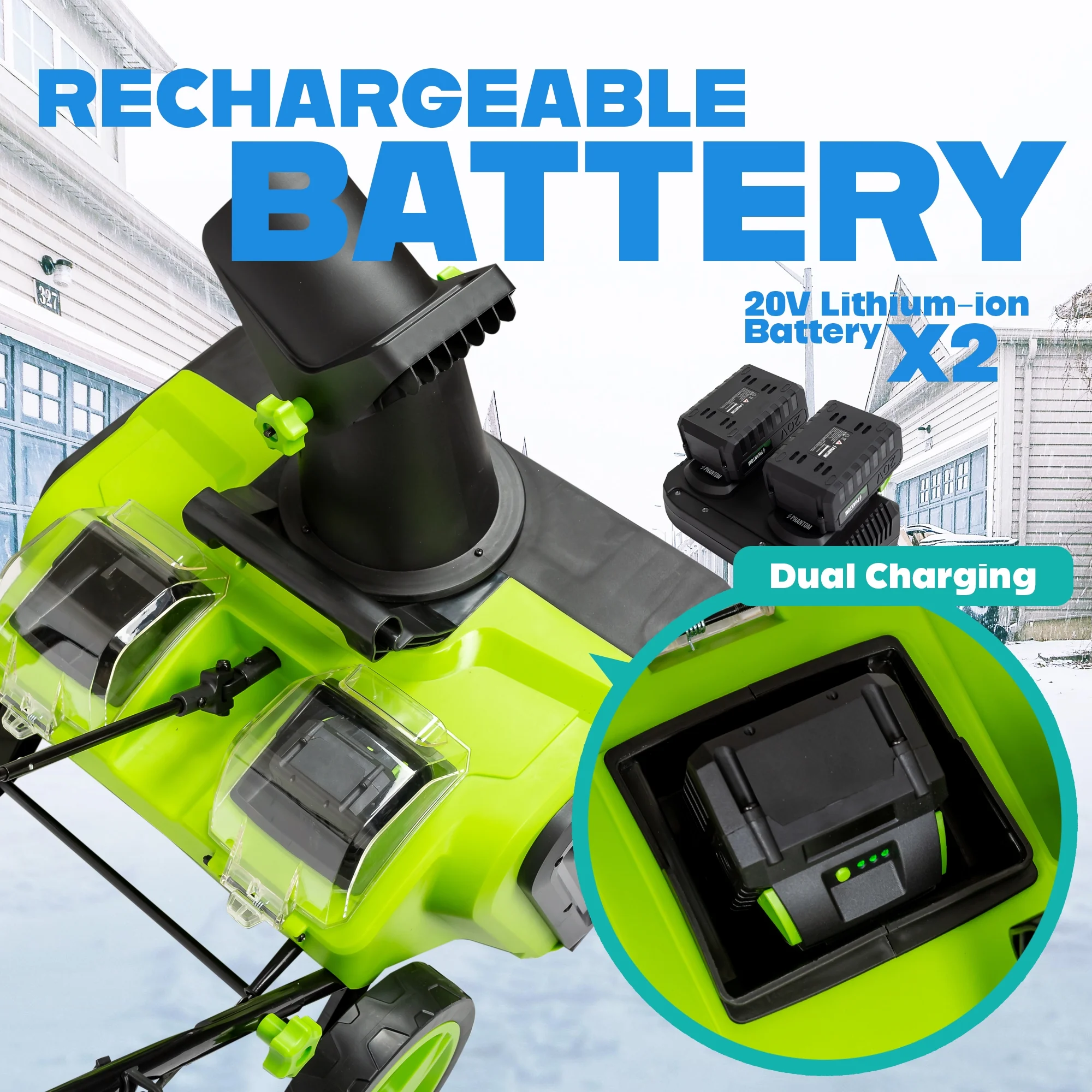 - ?Powerful Cordless Performance: This 20V cordless snow shovel features a high-efficiency motor and rechargeable lithium-ion battery. Perfect for clearing snow from patios, decks, driveways, walkways, and steps without the hassle of cords or gas. (include 2x20V battery)