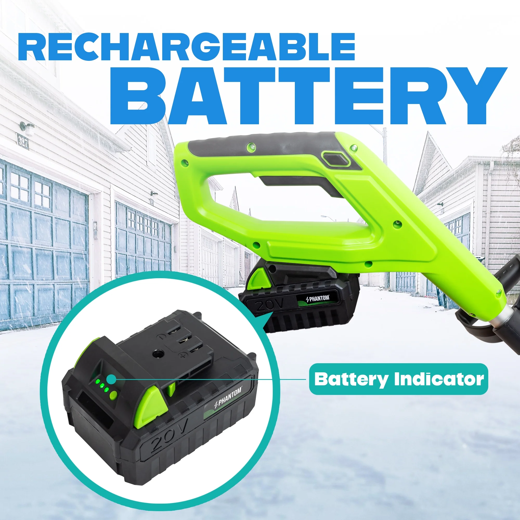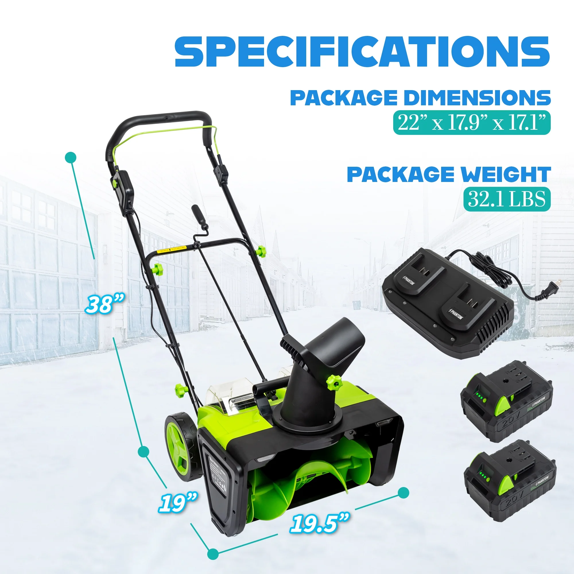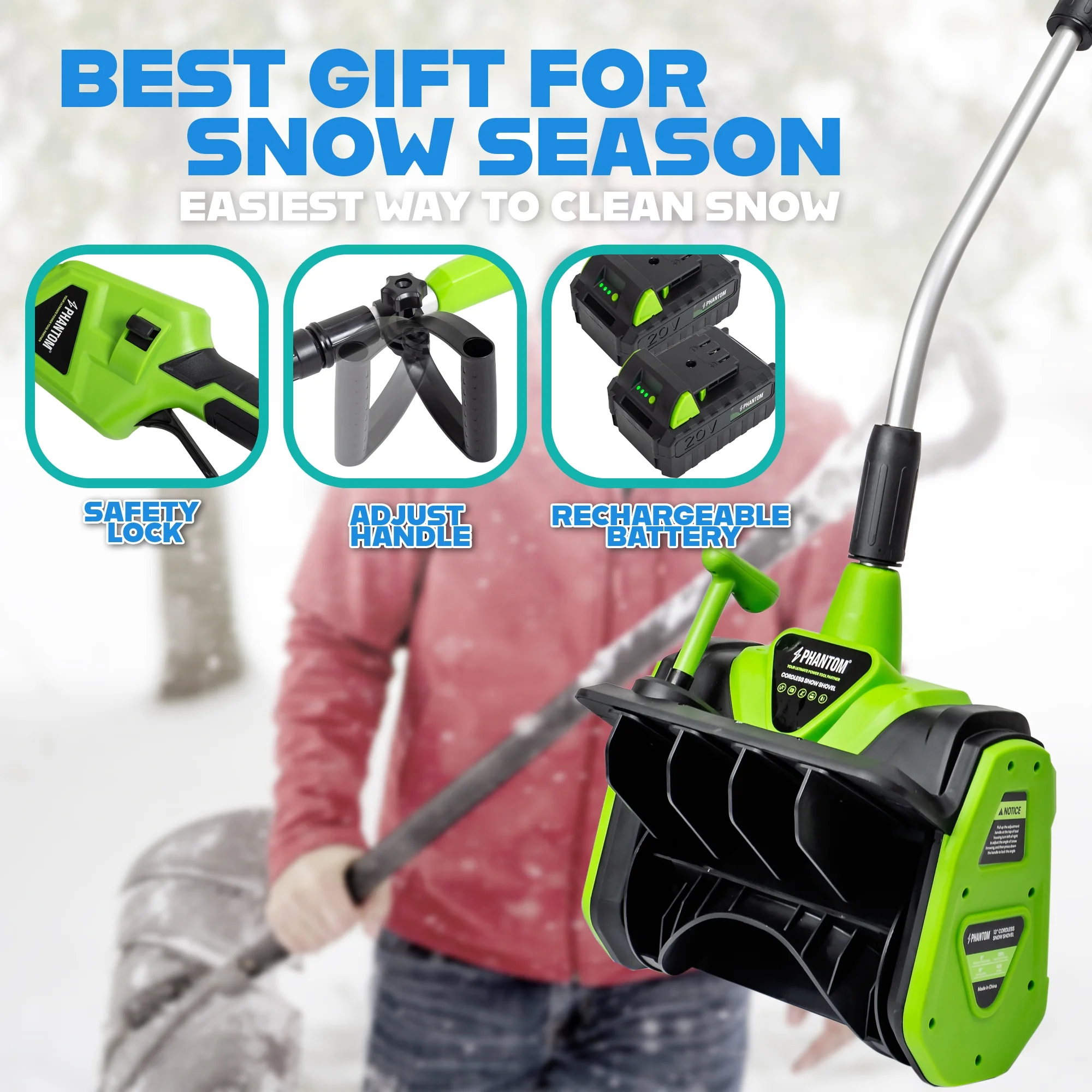 - ?Powerful Cordless Performance: This 20V cordless snow shovel features a high-efficiency motor and rechargeable lithium-ion battery. Perfect for clearing snow from patios, decks, driveways, walkways, and steps without the hassle of cords or gas. (include 2x20V battery)