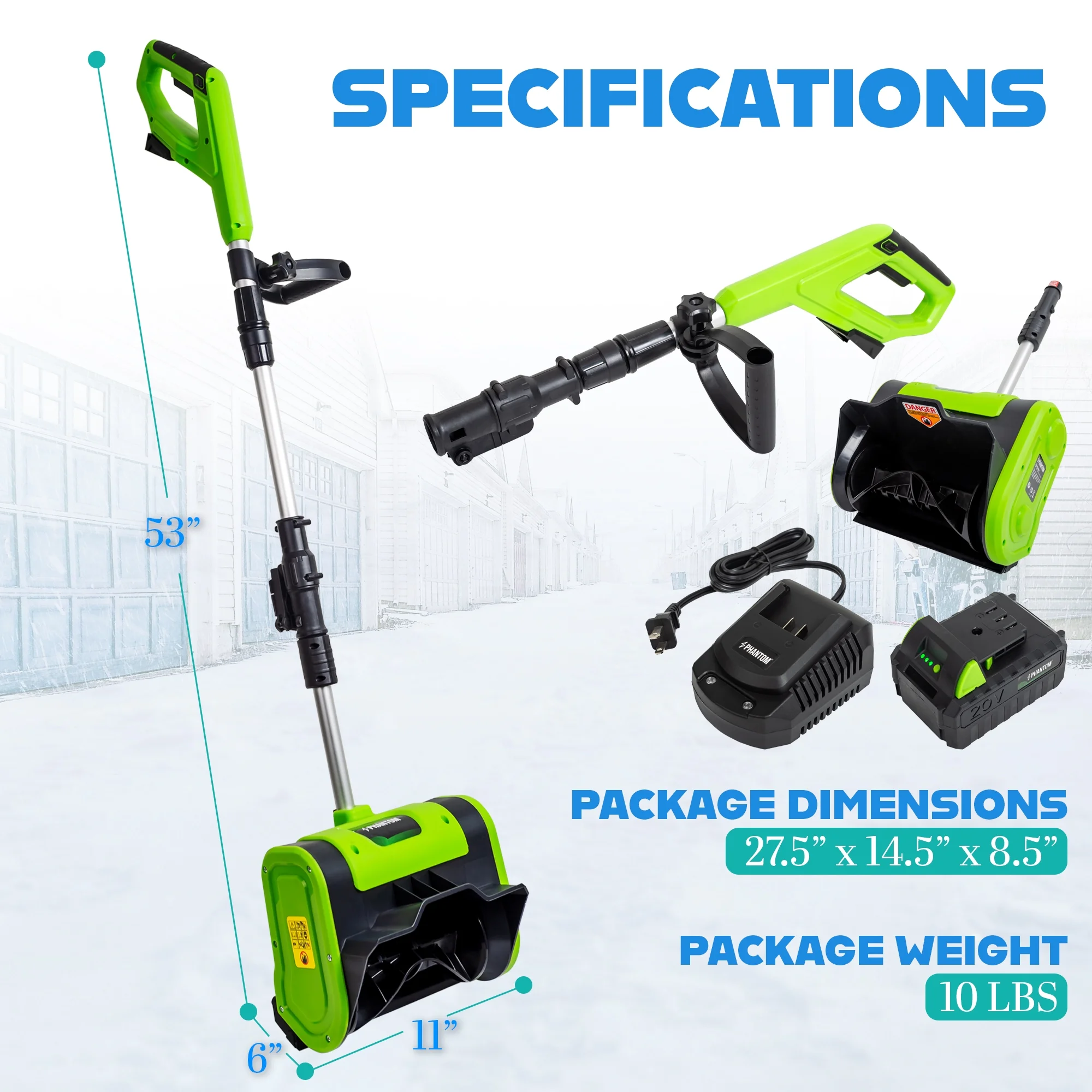 - Efficient Snow Clearing with Versatile Features: With an 20-inch clearing width and 11-inch clearing depth, this battery-powered snow shovel makes quick work of powder snow.