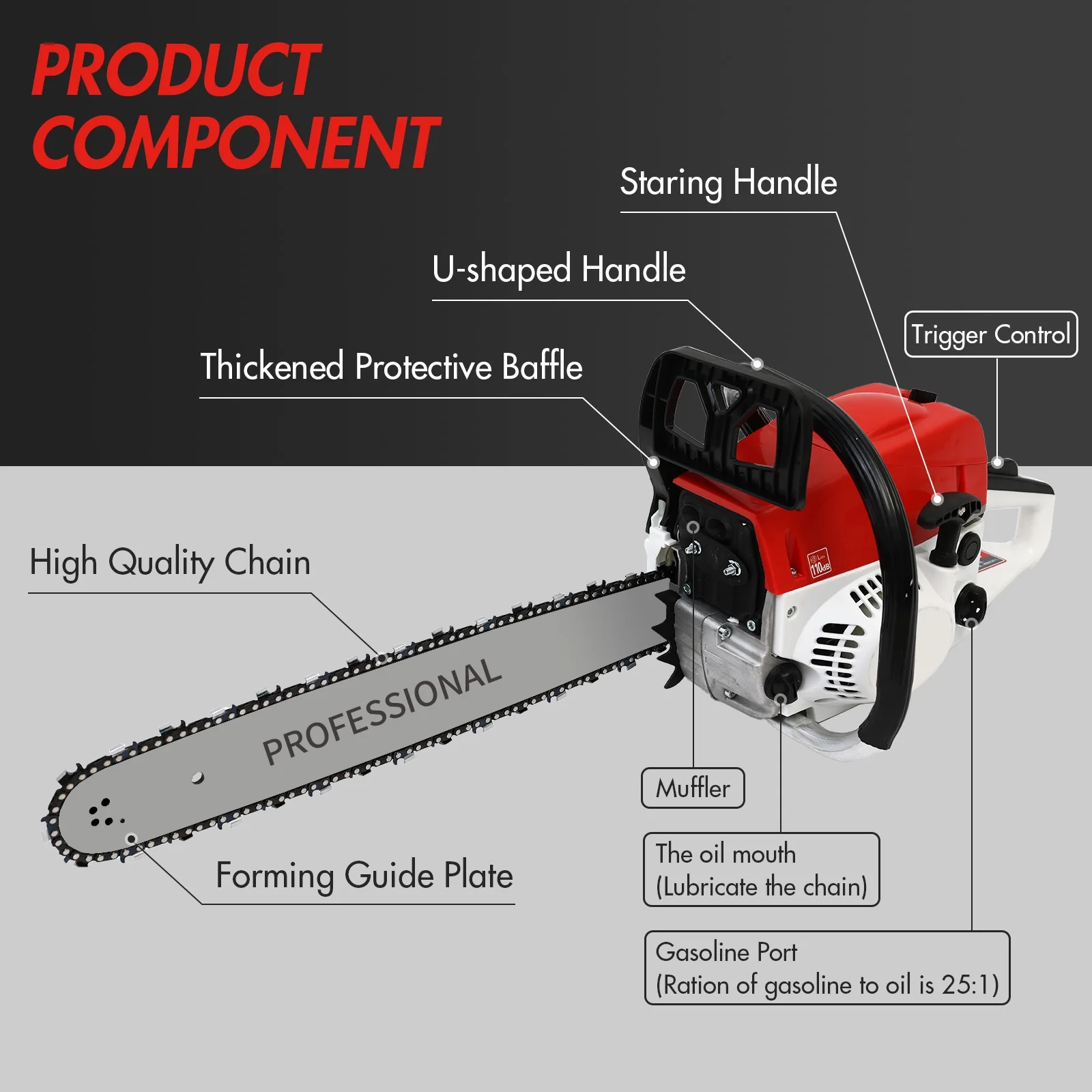 - ��Powerful Power��Baokaler 12" chain saw is equipped with a top-of-the-line two-stroke gasoline engine, which provides a strong power for cutting. Whether it's hard wood or dense bushes, it gets the job done quickly and efficiently.