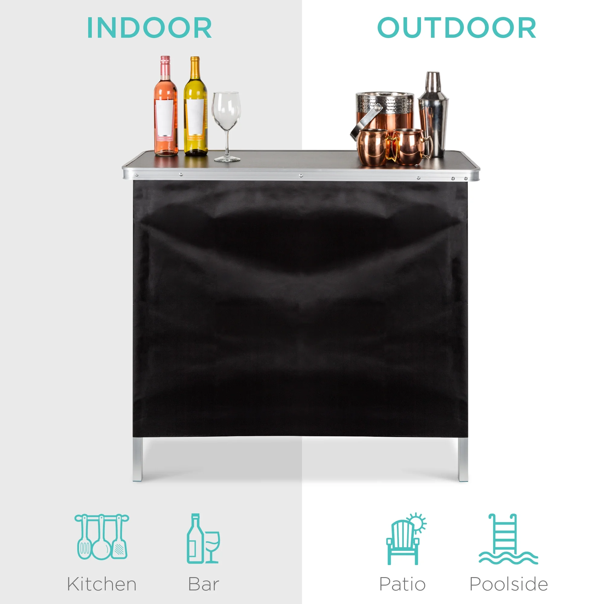 - MULTIPURPOSE TABLE: Built compact, with a 110-pound weight capacity that is perfect for mixing drinks, displaying goods, or holding the entrees at your next potluck