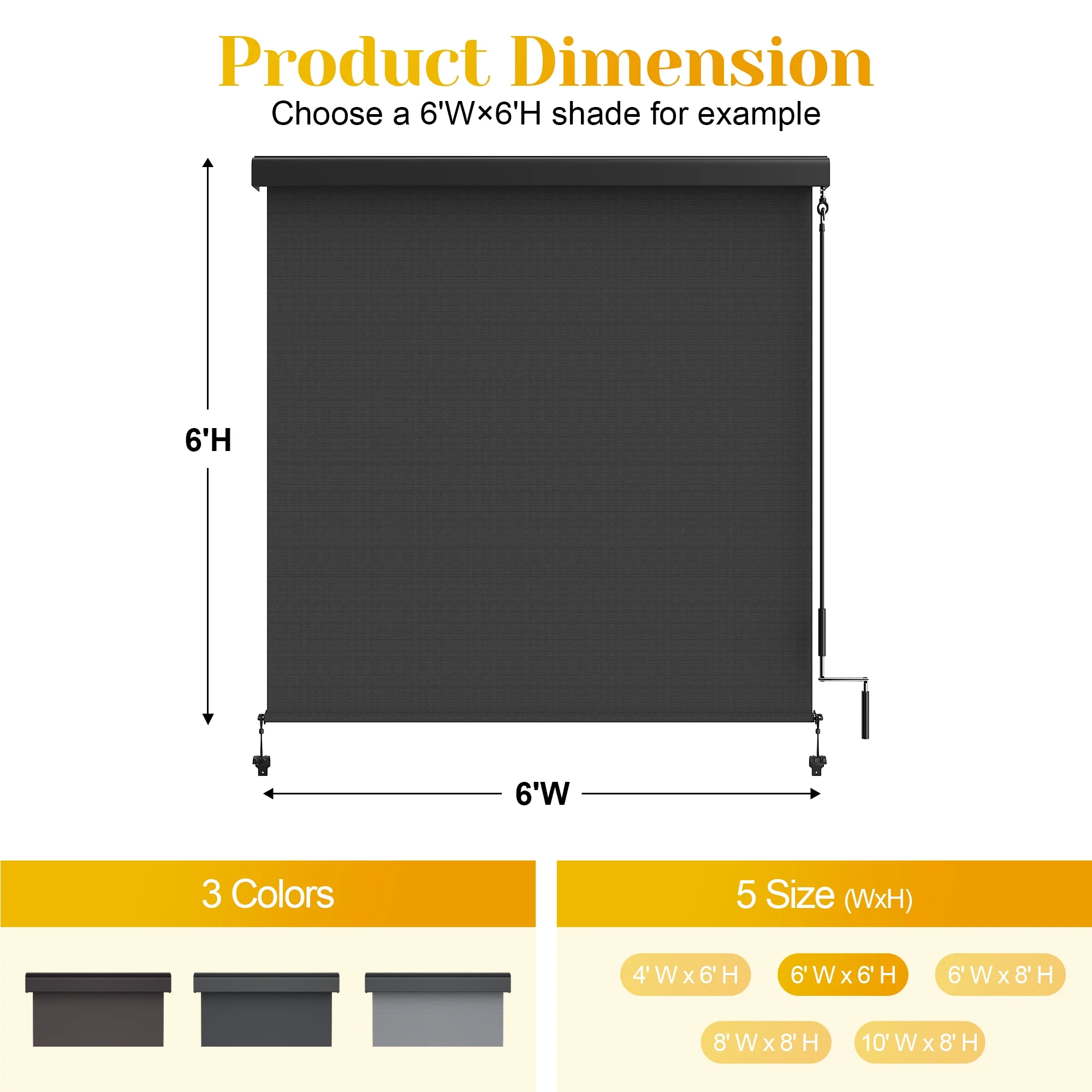 - ROLL UP DESIGN - Convenient crank handle allows effortless raising and lowering