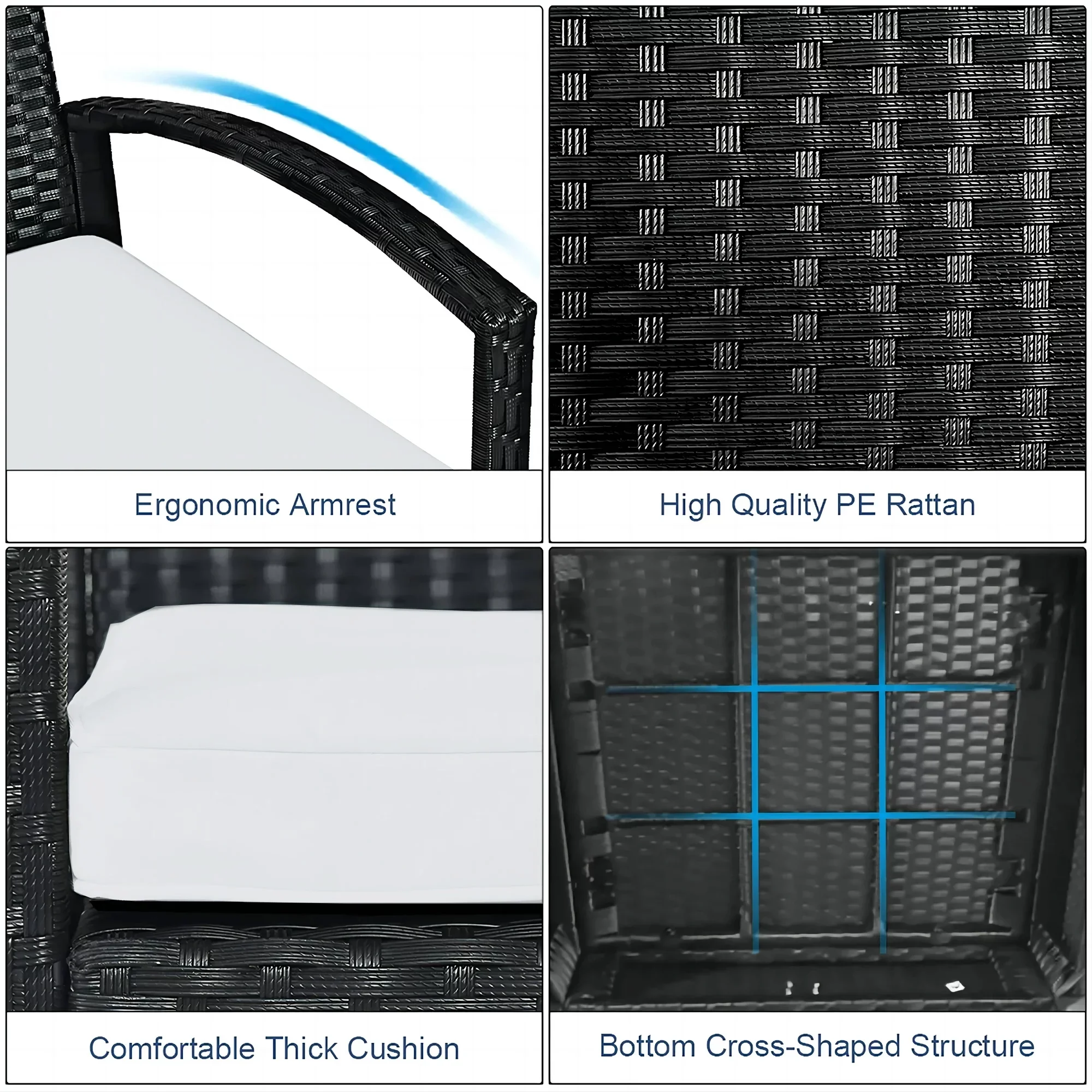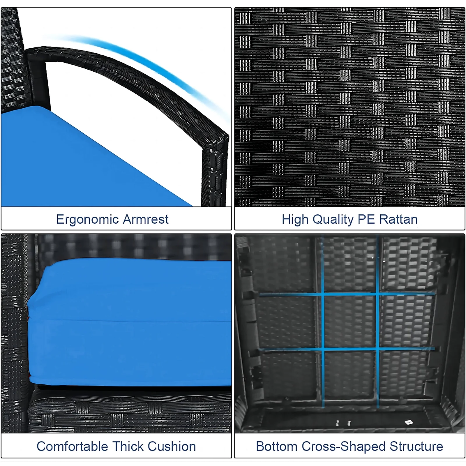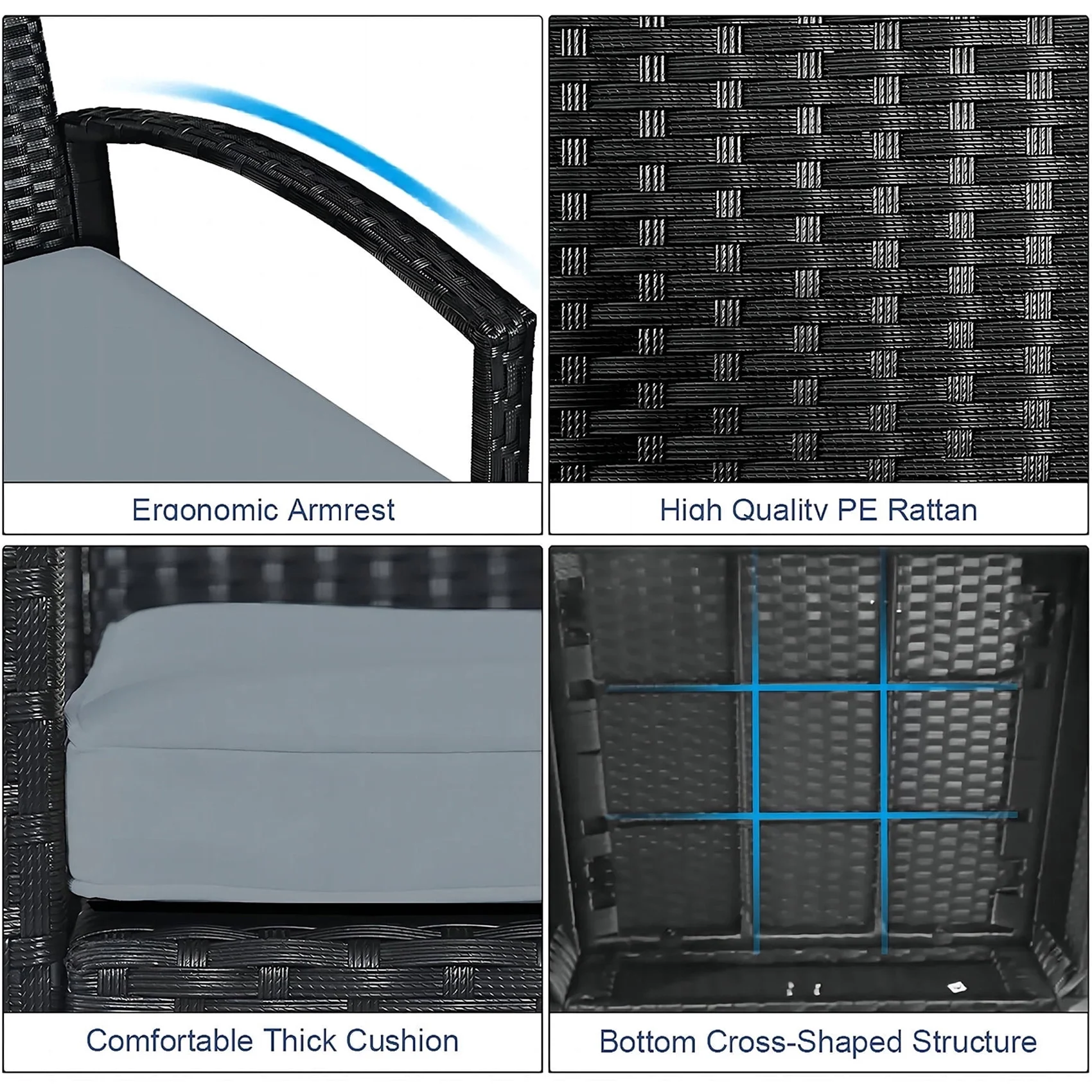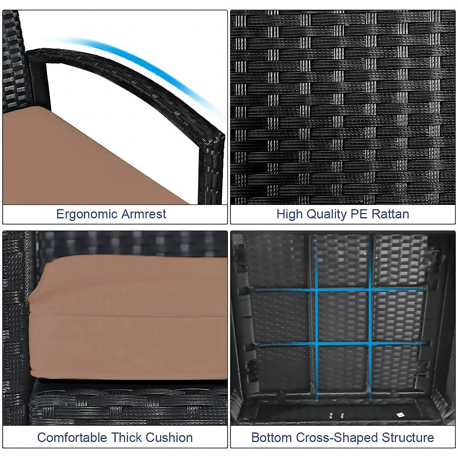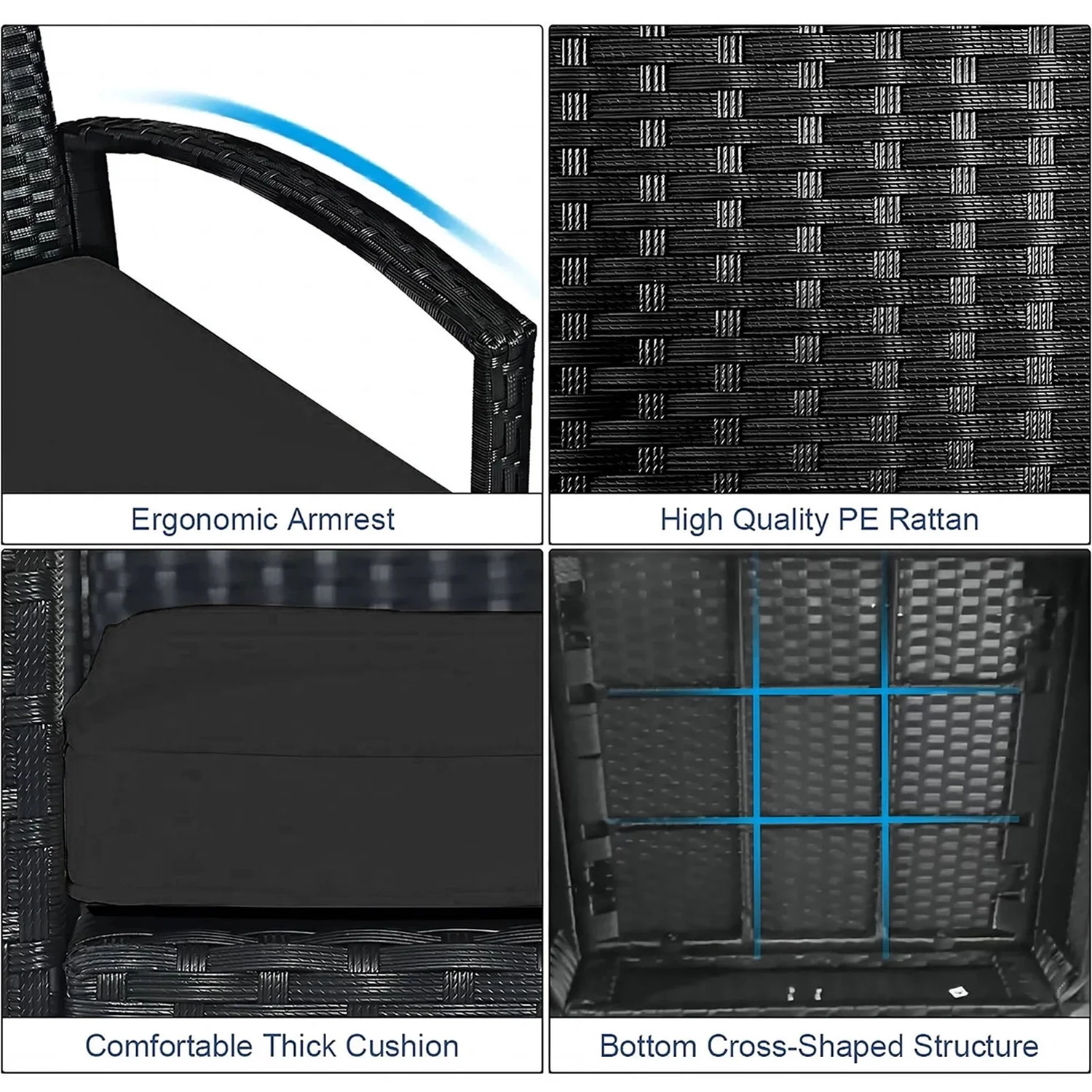 - [Super Sturdy Construction] Constructed with a rigid coated steel frame and PE rattan, this patio furniture set offers a high load-bearing capacity and resists deformation even after prolonged use. The eco-friendly, high-strength woven rattan withstands fluctuating weather conditions and provides a breathable and comfortable space to relax.