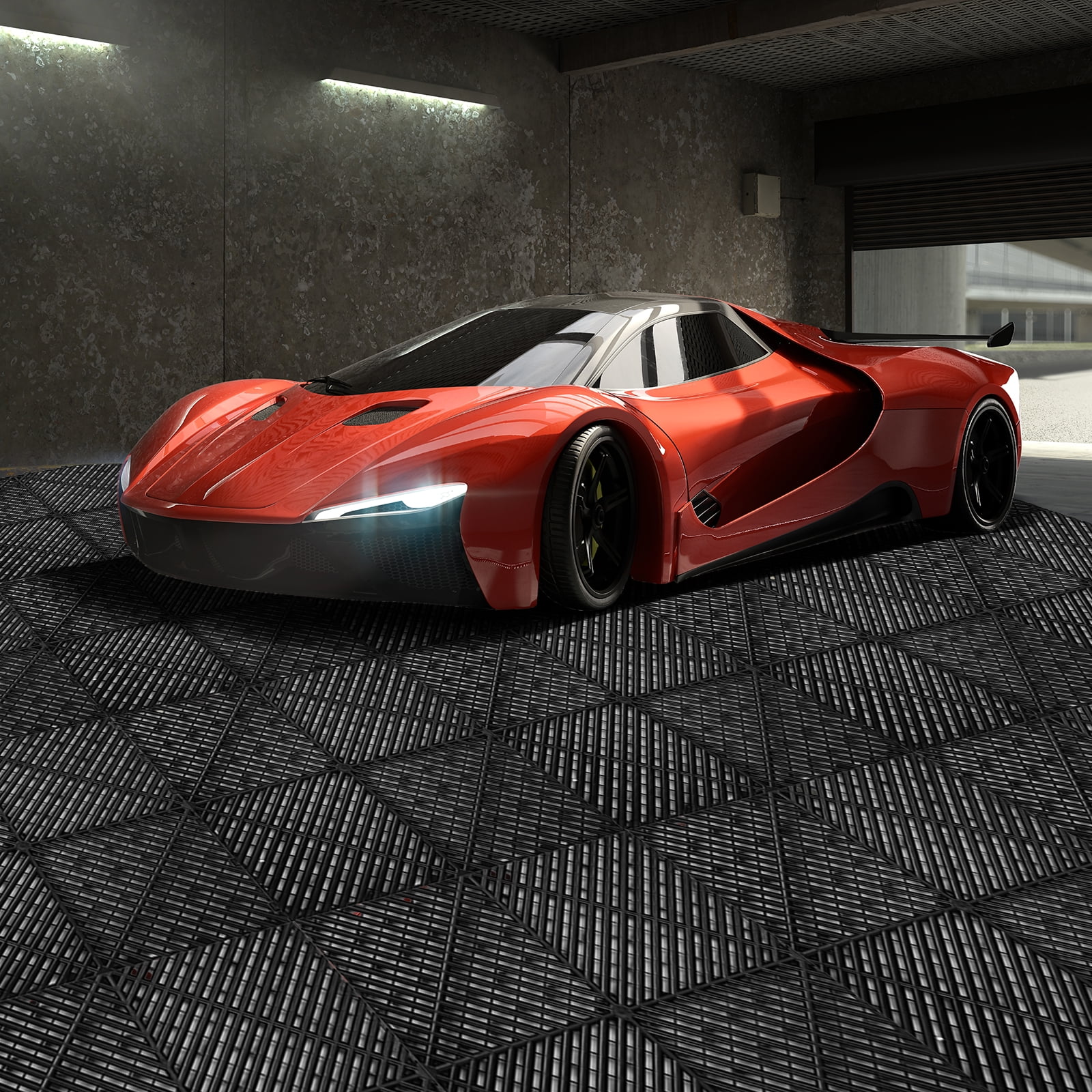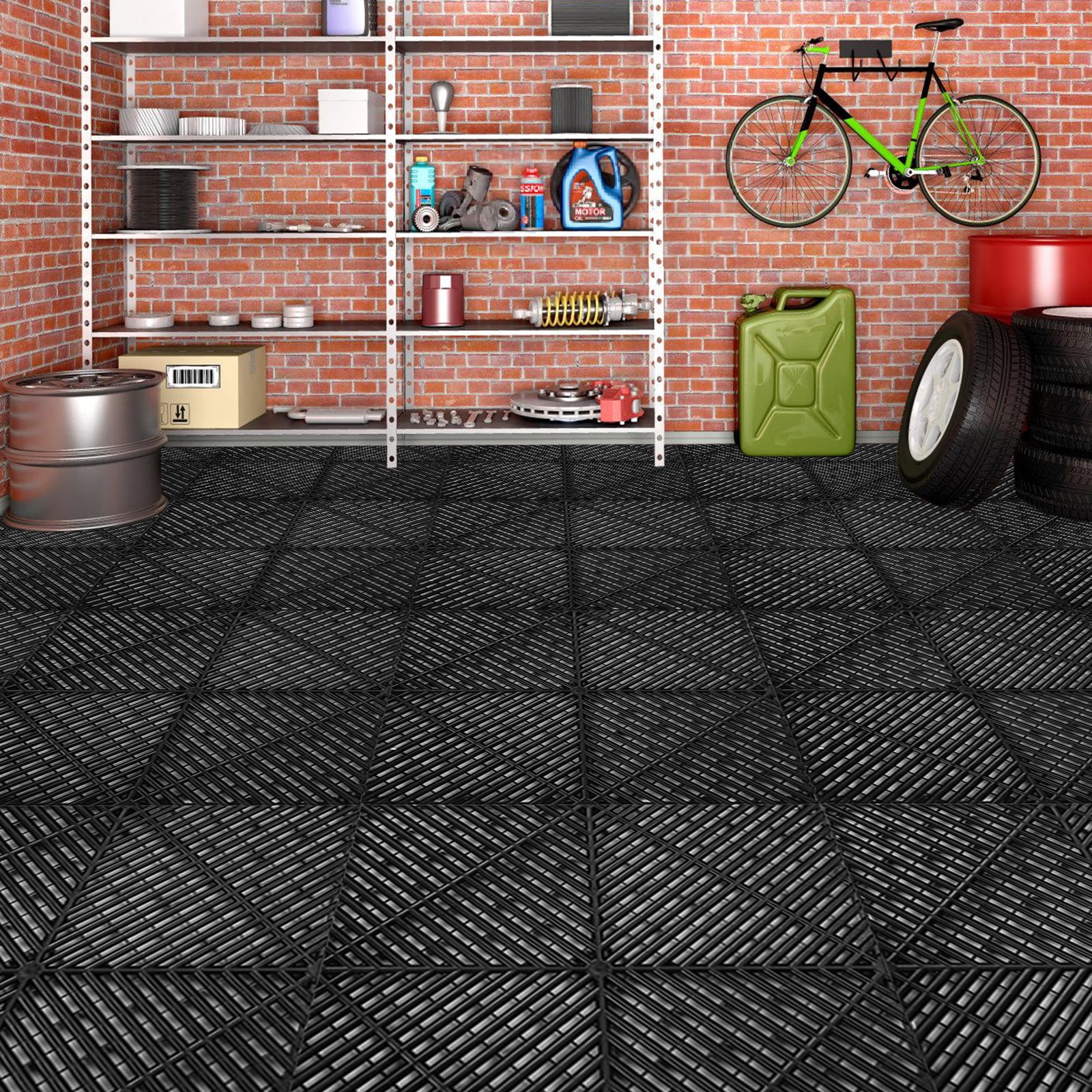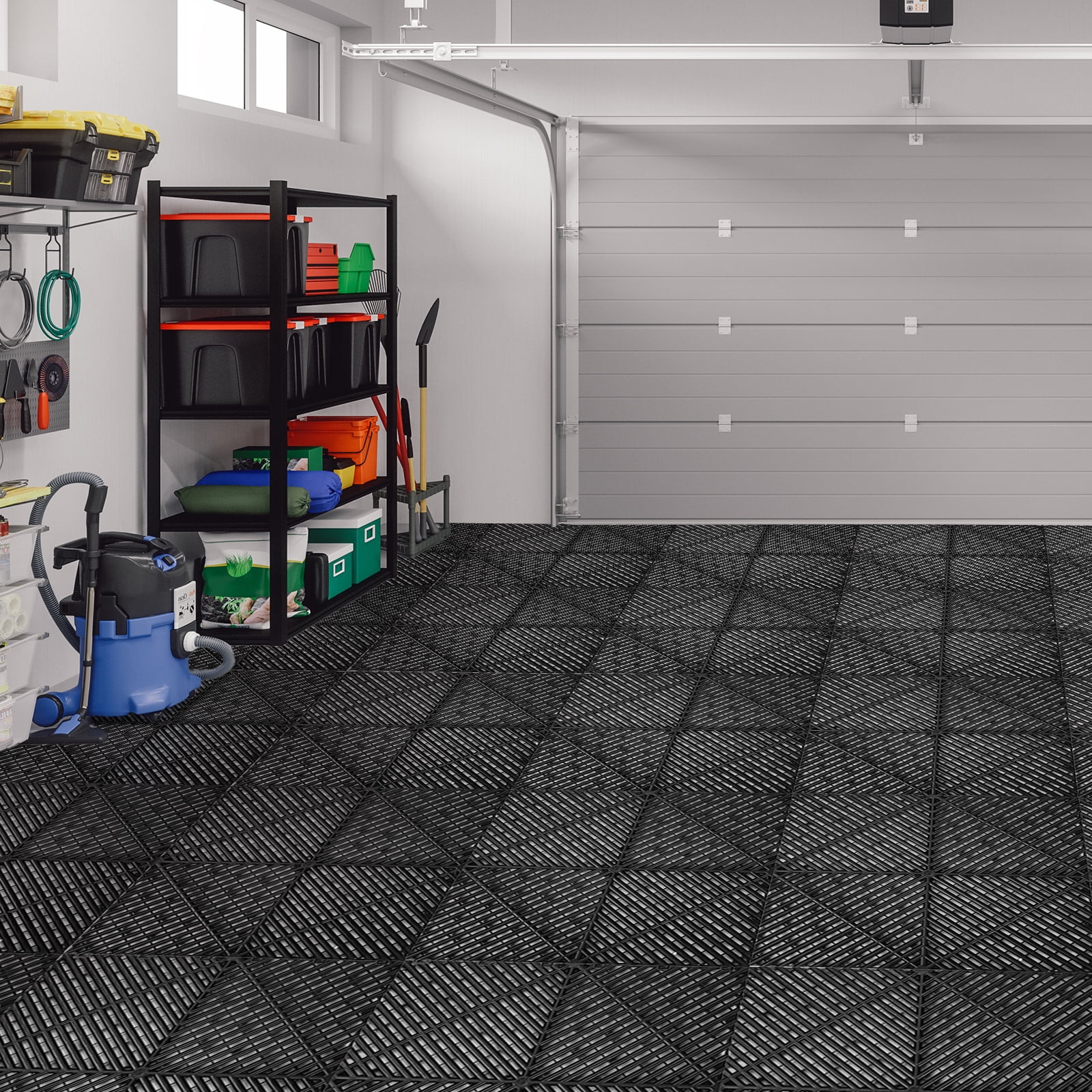 15.75''x15.75'' Garage Floor Tiles Interlocking Flooring Tiles 25/50 Black /Gray