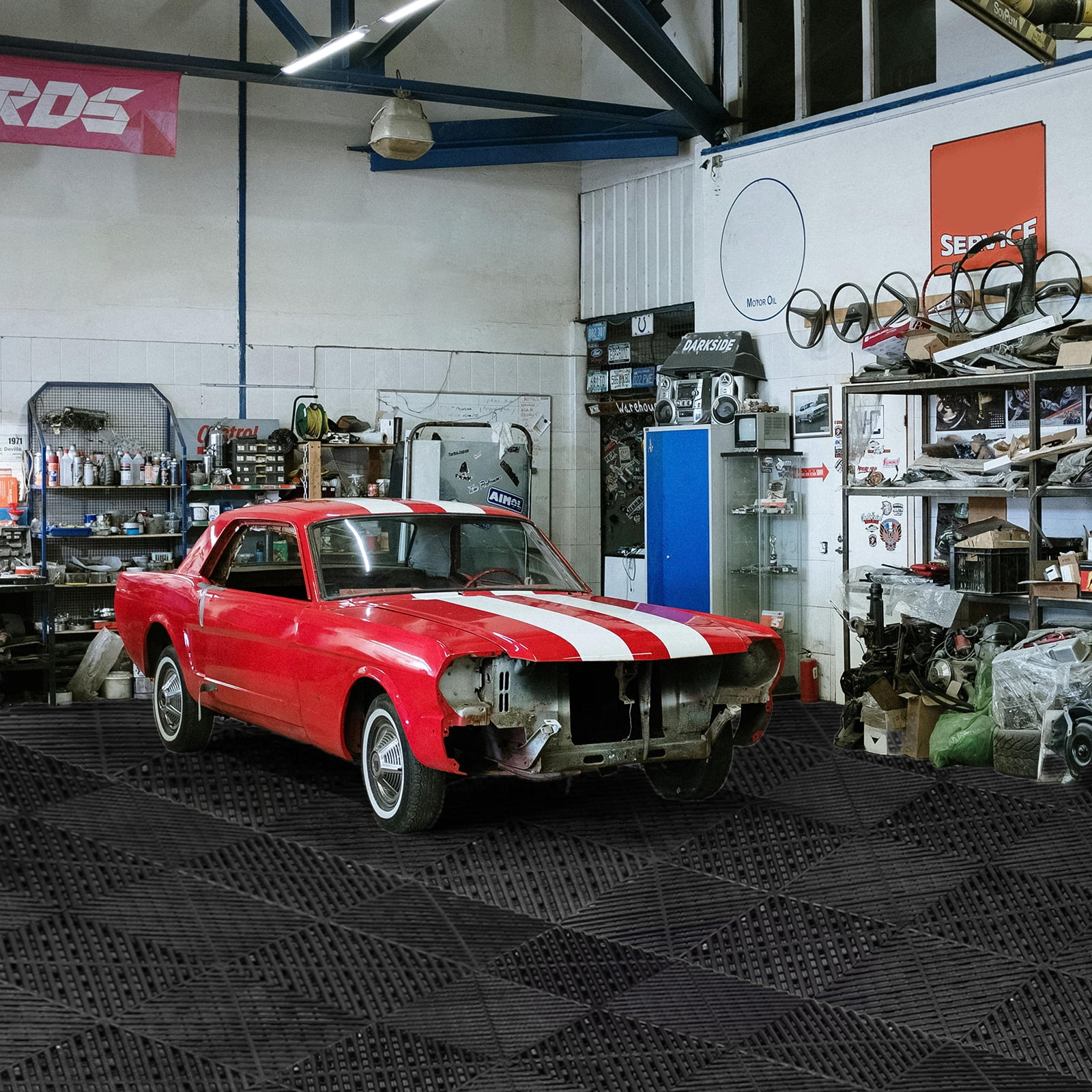 Free-Flow durable garage flooring is easy to install. The interlocking tiles simply snap together �C no tools required - and provide a high-end look and exceptional floor protection.