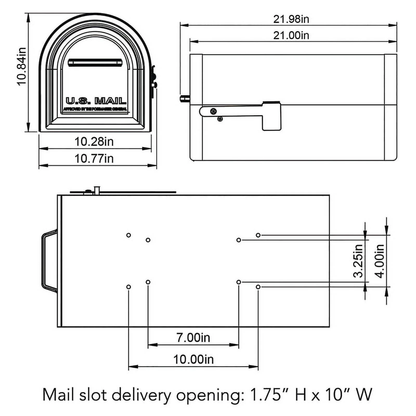 - Delivery slot measures 10-in W x 1.75-in H