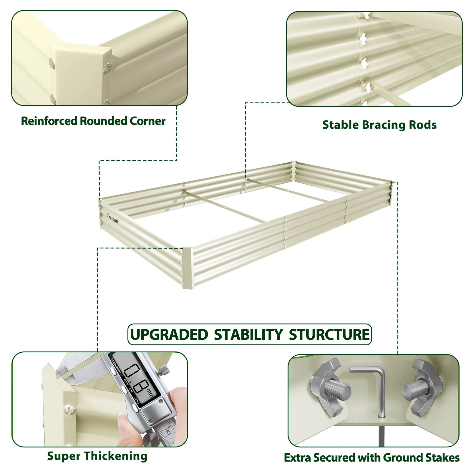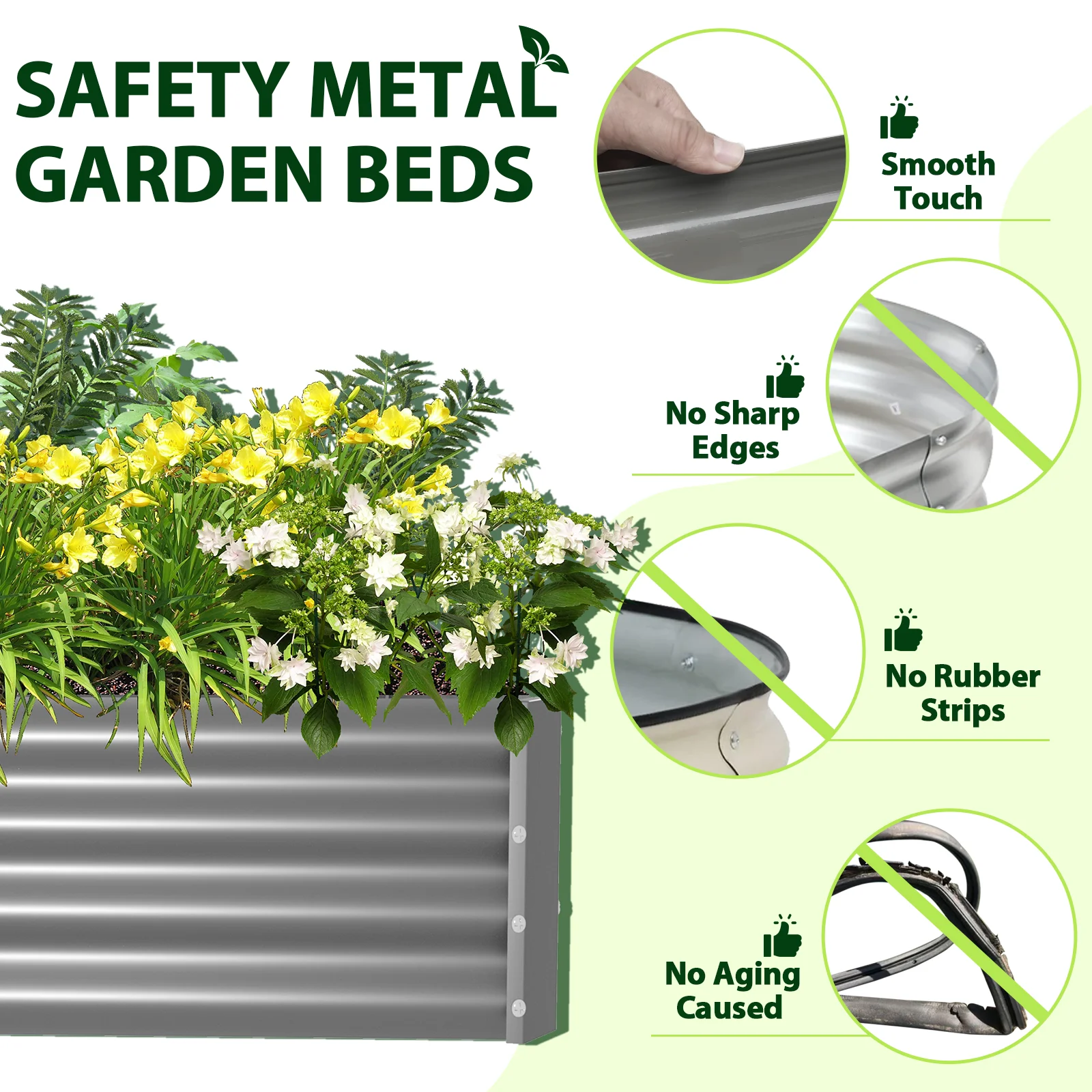- Durable Material and Safe Painting: The metal planter bed is made of weather-proof galvanized sheets with a wave structure that can withstand high pressure without loosening, sturdy enough for long-lasting outdoor use. The powder coating is not only beautiful but also rust-proof and corrosion-proof. More importantly, it is eco-friendly, do not contaminate soil, safe for plants and humans.