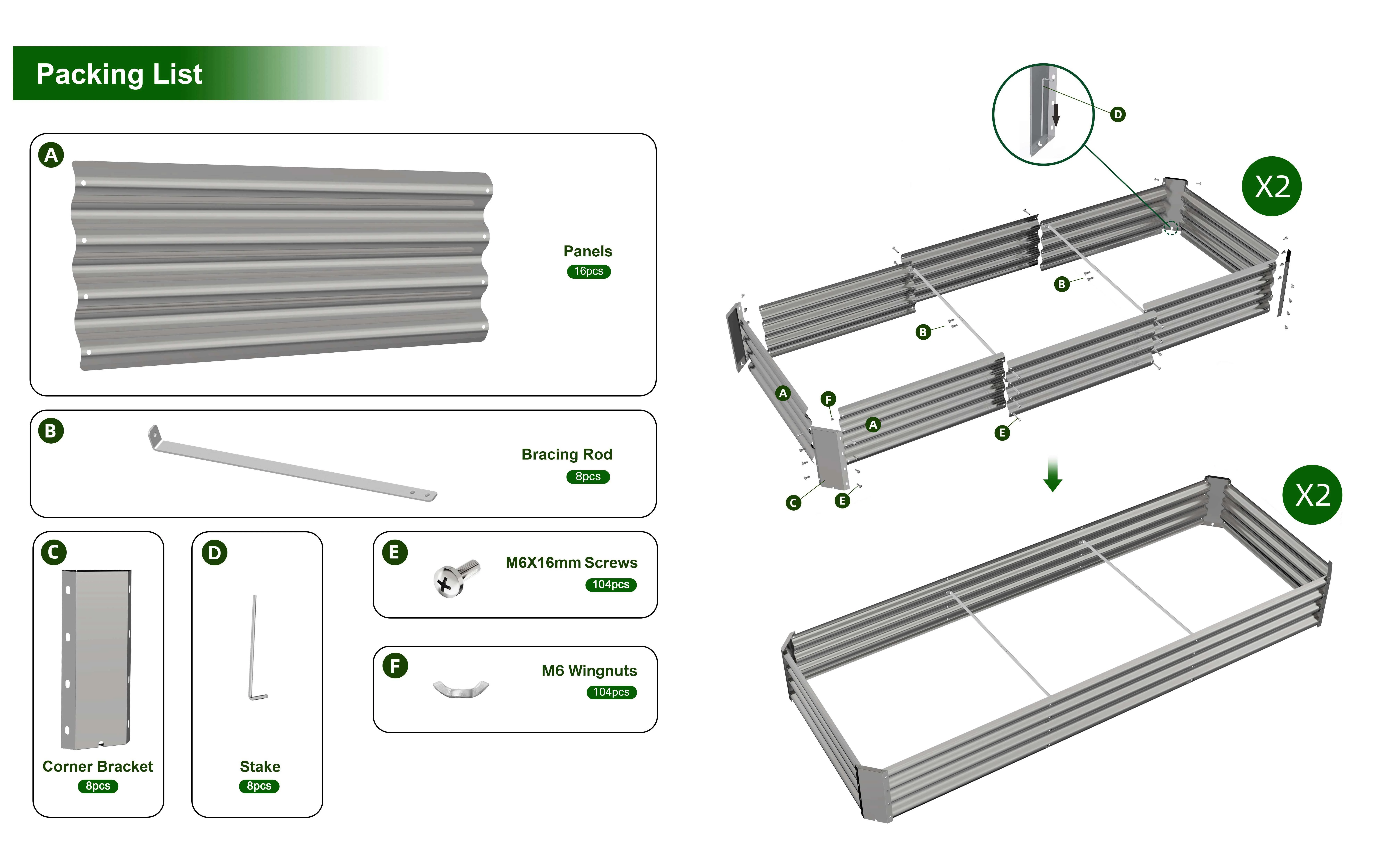 - Easy Assembly: The raised garden bed kit has very simple structure design, which comes with complete screws and pre-drilled holes for quick and effortless installation. All you need to do is connect the metal plates with screws, you can finish the installation in a few minutes