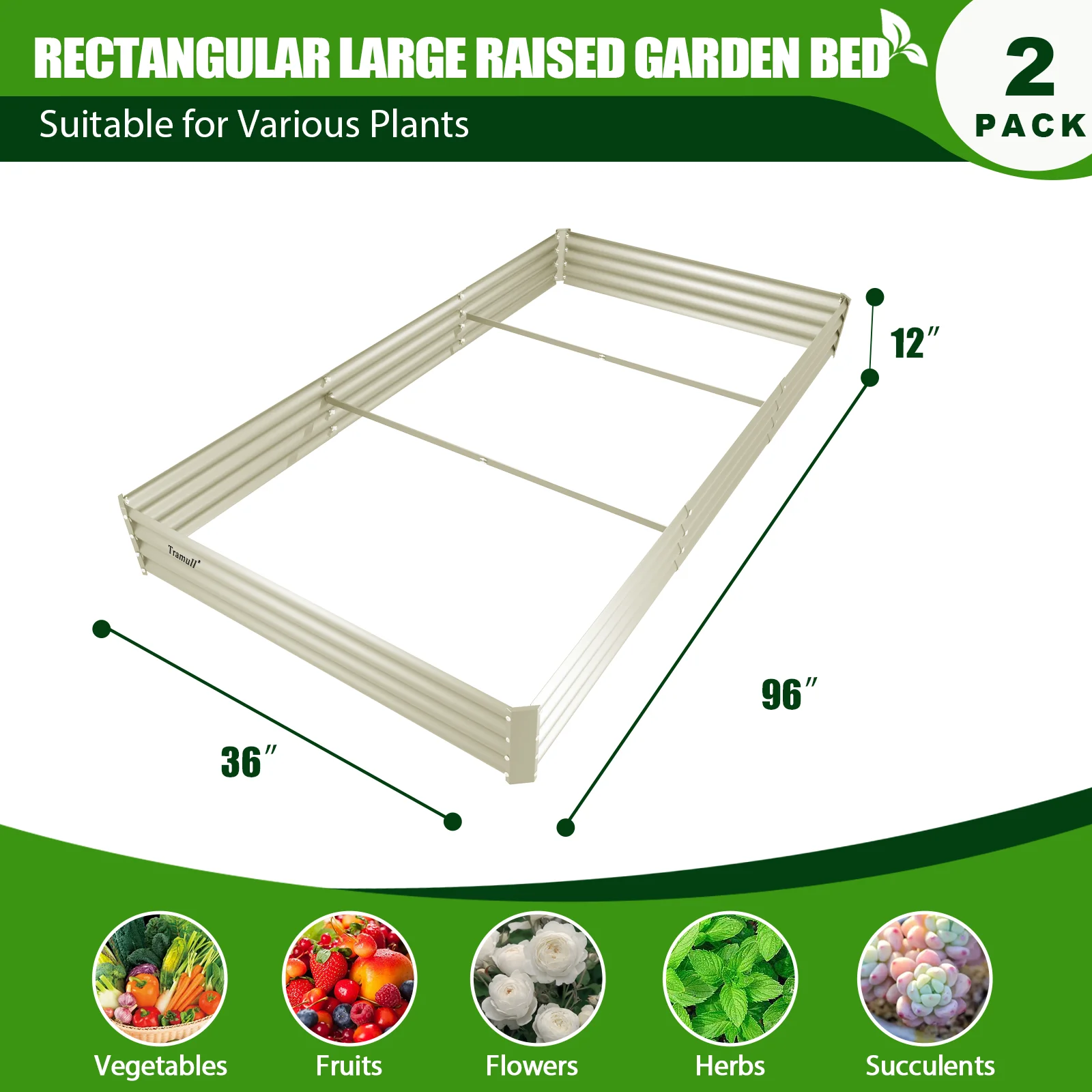 - Package contains 2 x 94.5'' (L) x 35'' (W) x 12'' (H) garden beds�?provide extra large growing space to meets your planting needs and the square shape makes the garden more tidy.