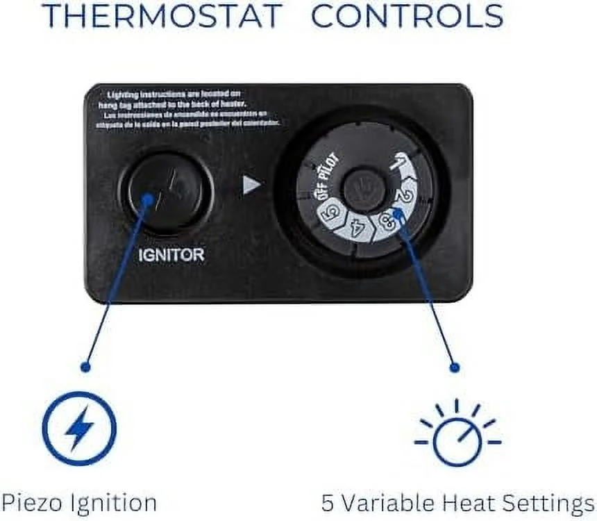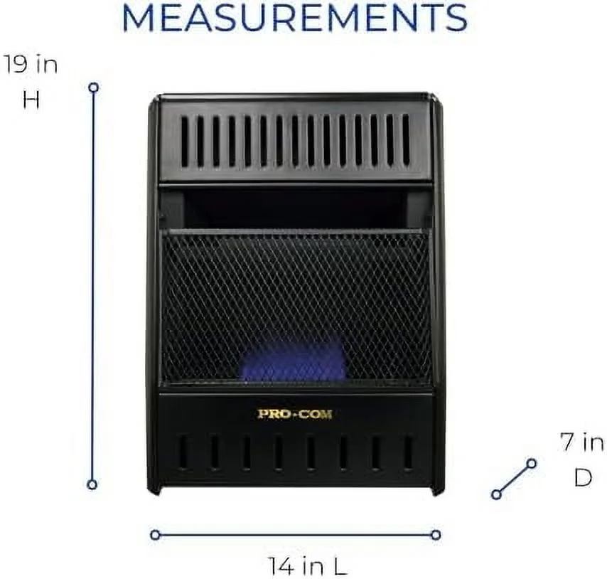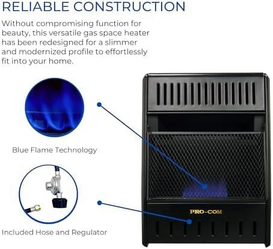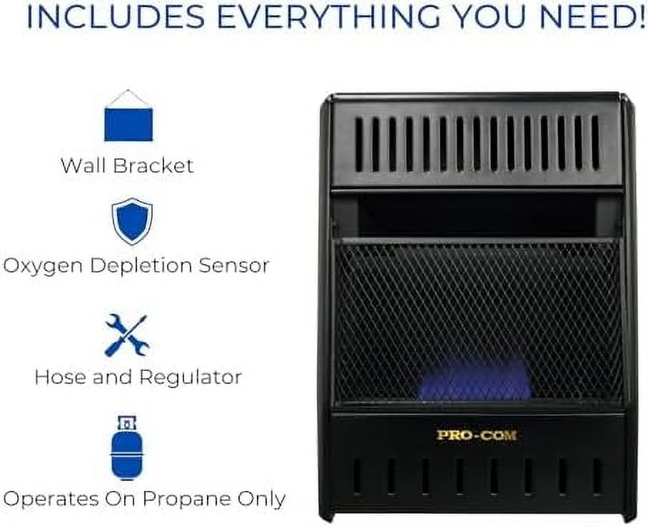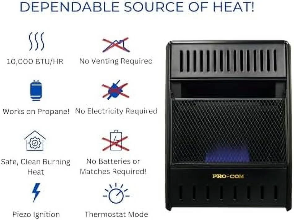 ML100TBAHR Ventless Propane Gas Blue Flame Space Heater with Thermostat Control for Living Room, Bedroom, Home Office, 10000 BTU, Heats up to 300 Sq. Ft., Includes Wall Mount, Black