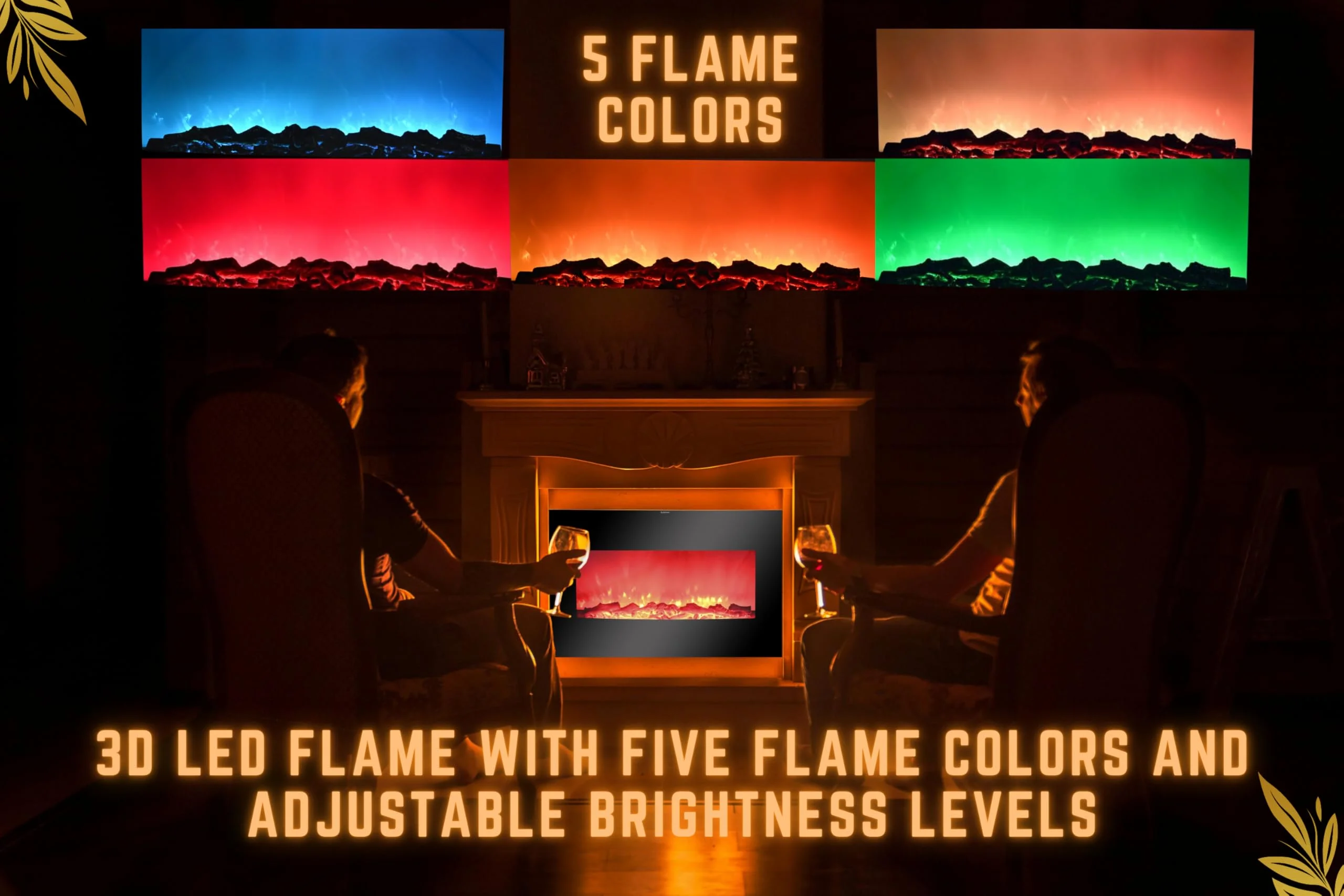 - ???? ?????????? & ???????????? ????????????: This 38-inch electric fireplace heater offers a beautifully curved screen and a realistic three-dimensional flame effect. With five different flame colors and brightness settings, this wall-mount fireplace is ideal for any modern living room.