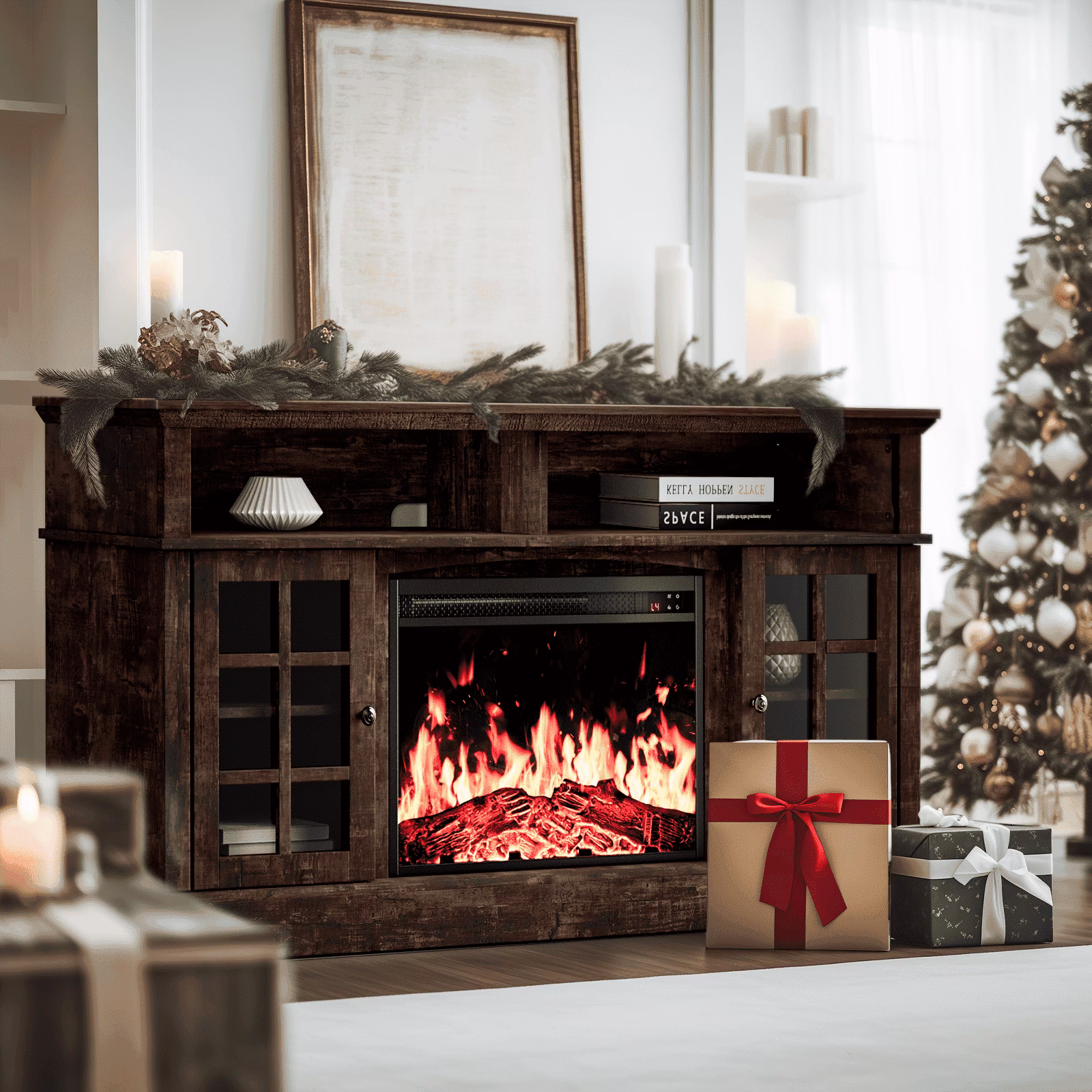 - Create a Warmer Space: The farmhouse fireplace TV stand can help to create the ultimate warm and cozy space thanks to the 23�� electric fireplace with 9 temperature options, 4 levels of flame brightness, and 1400W rapid heating system that can warm air in only 5 seconds