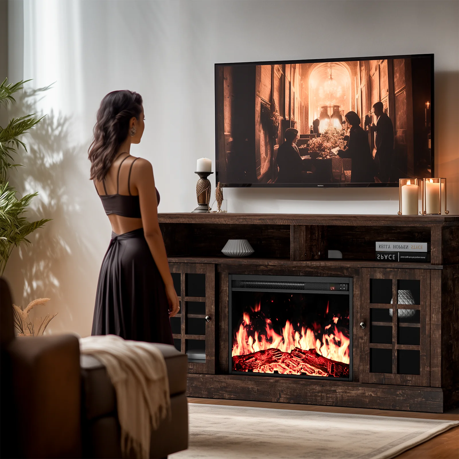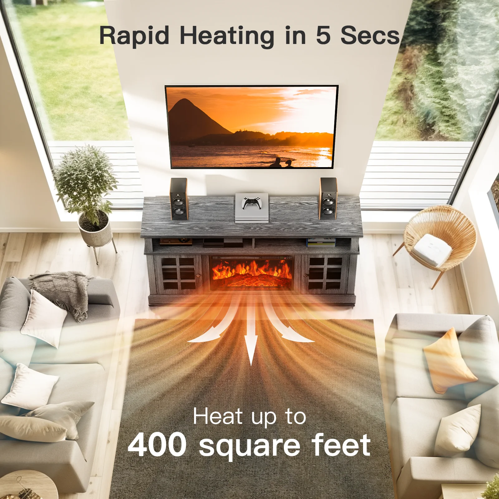 - 2-in-1 Design: The fireplace entertainment center is a perfect combination of console and electric fireplace. Enjoy extra-large storage space for your TV, soundbar, gaming devices, books, and more