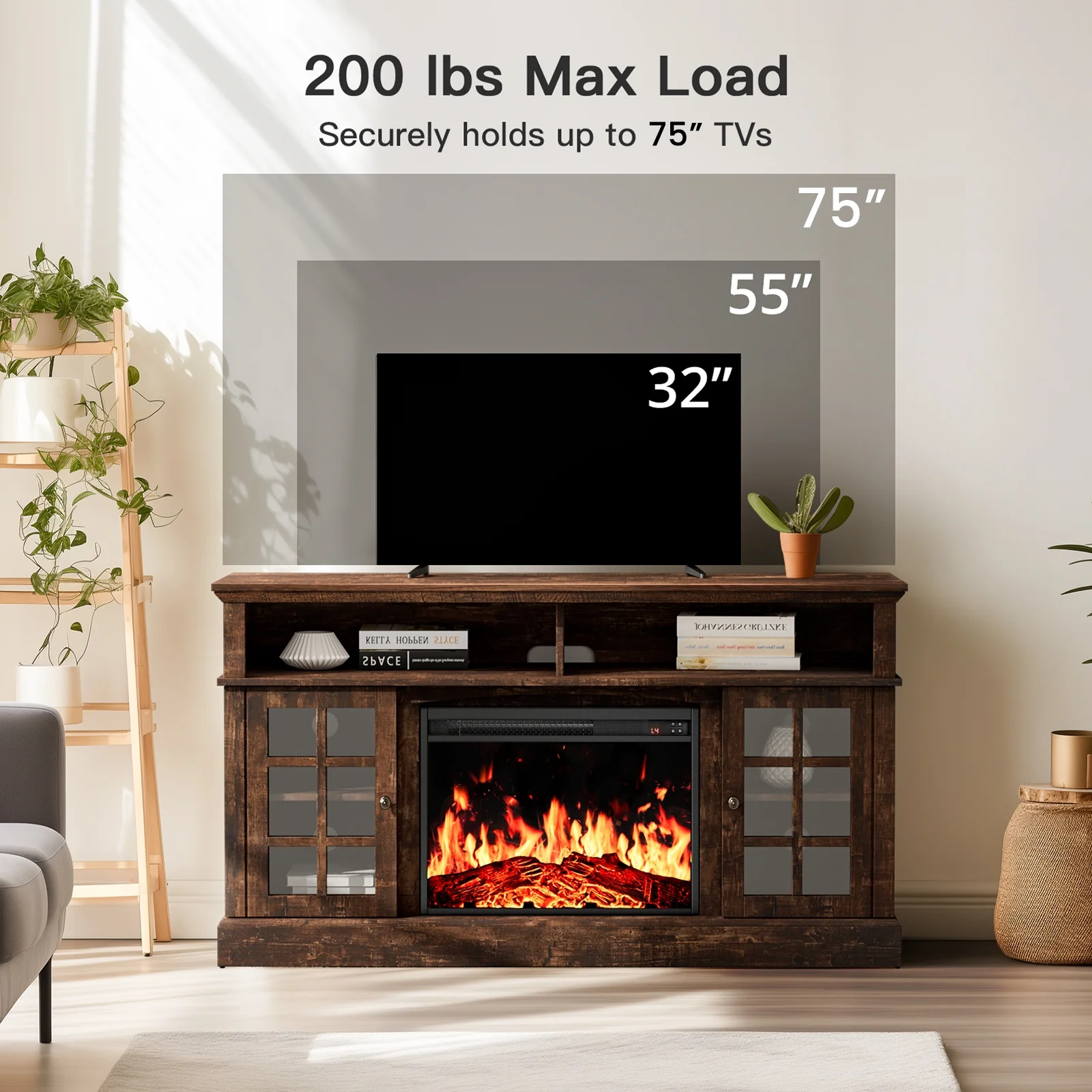 - Sturdy Construction: Featuring premium MDF material and fine craftmanship, this fireplace TV stand can easily support up to 75 inch TVs with a weight capacity of 200 lbs