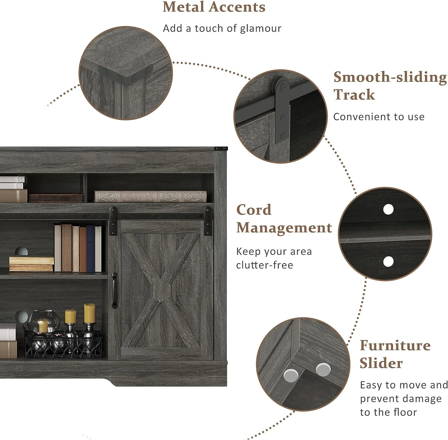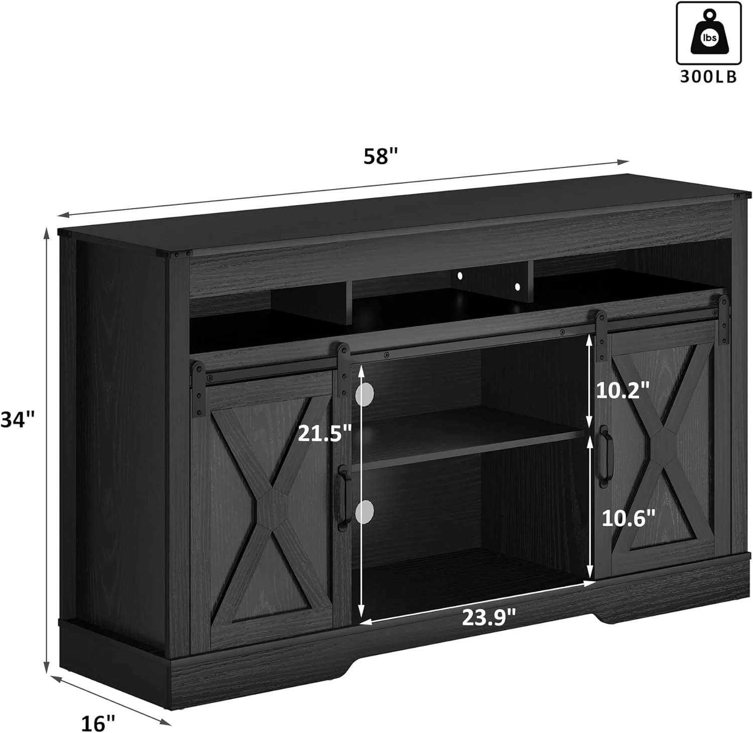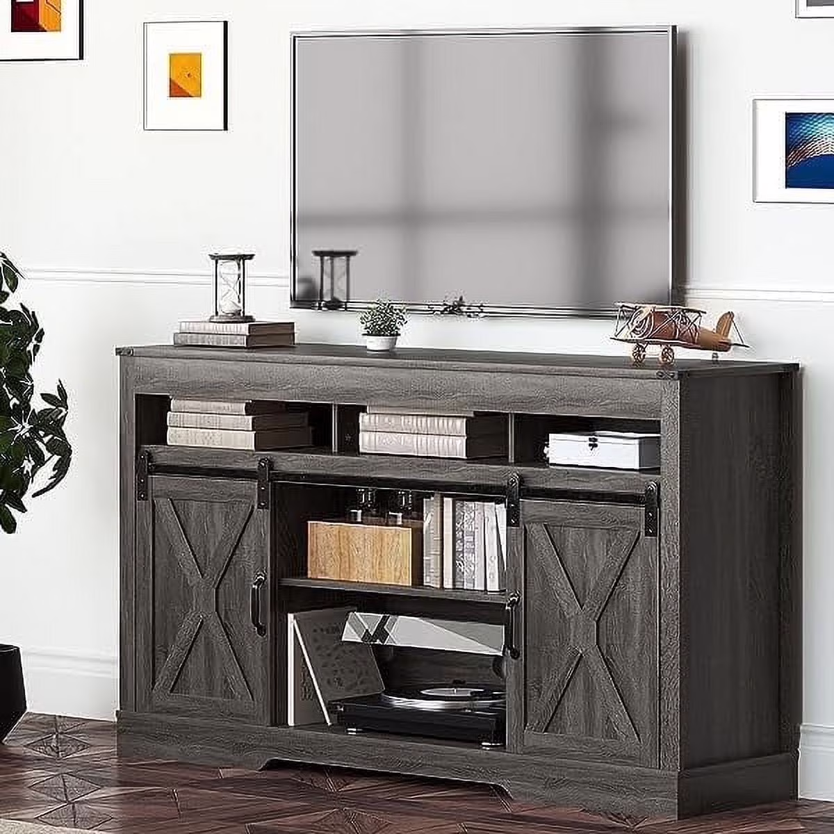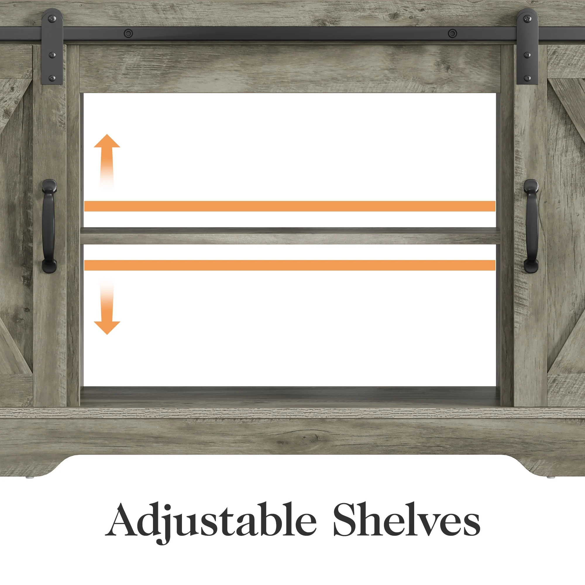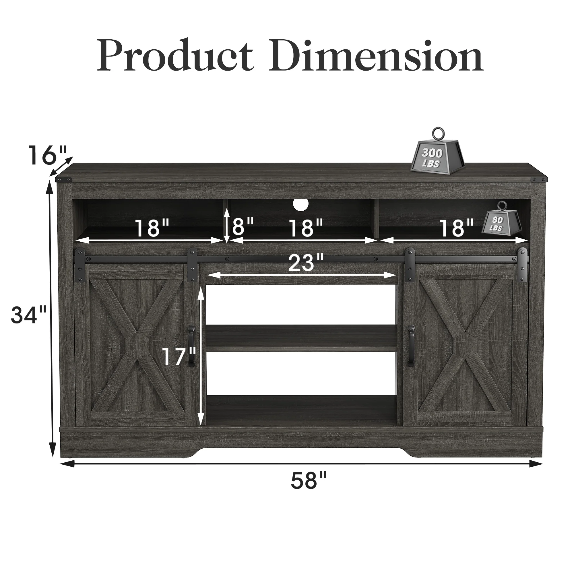 - Who knew storage could be this stylish? Measuring 60" W x 34" H x 16" D, this farmhouse TV stand offers the perfect blend of functionality and charm. Featuring both open and closed compartments, it allows you to showcase your favorite decor on the central shelves while keeping things organized with three adjustable inner shelves for customizable storage.