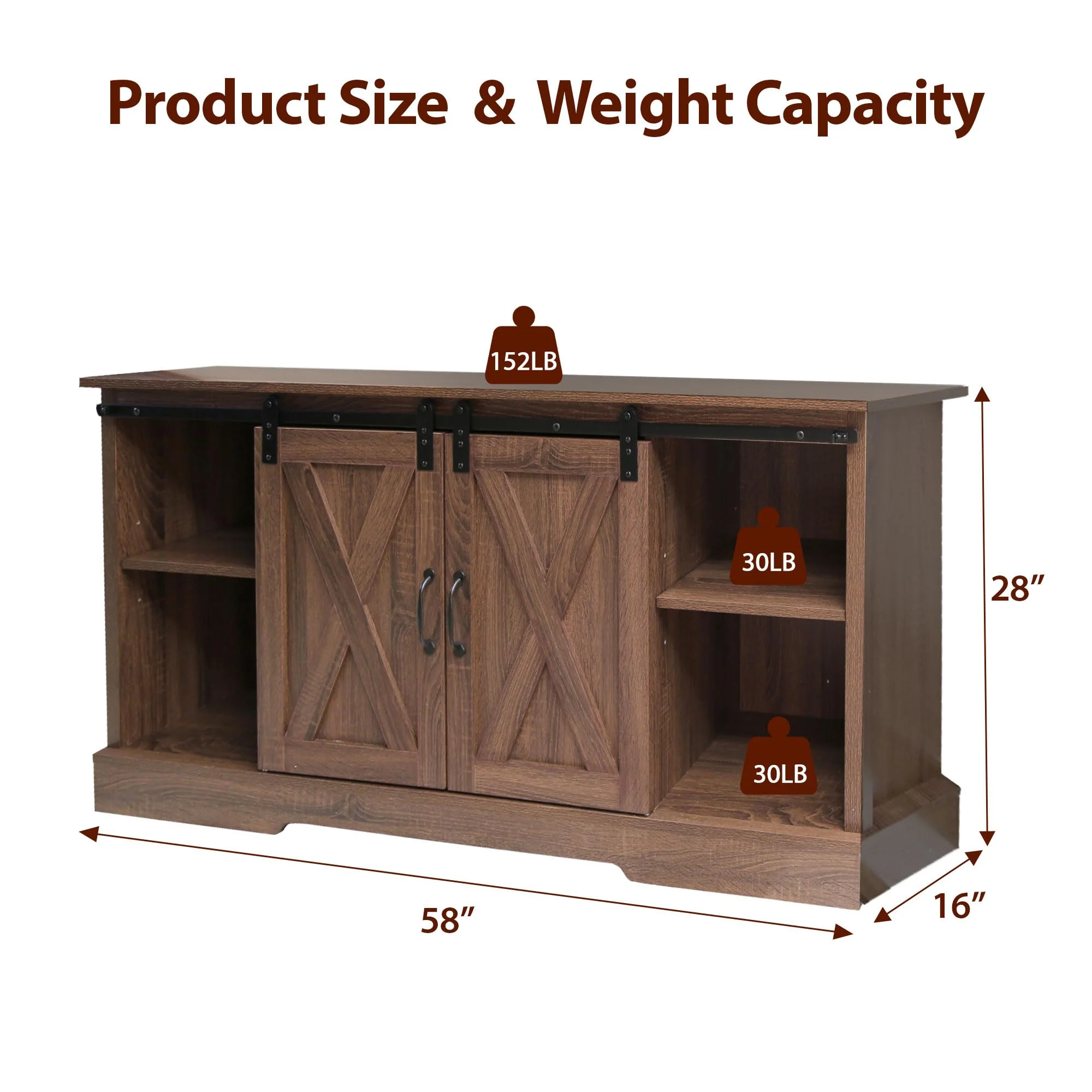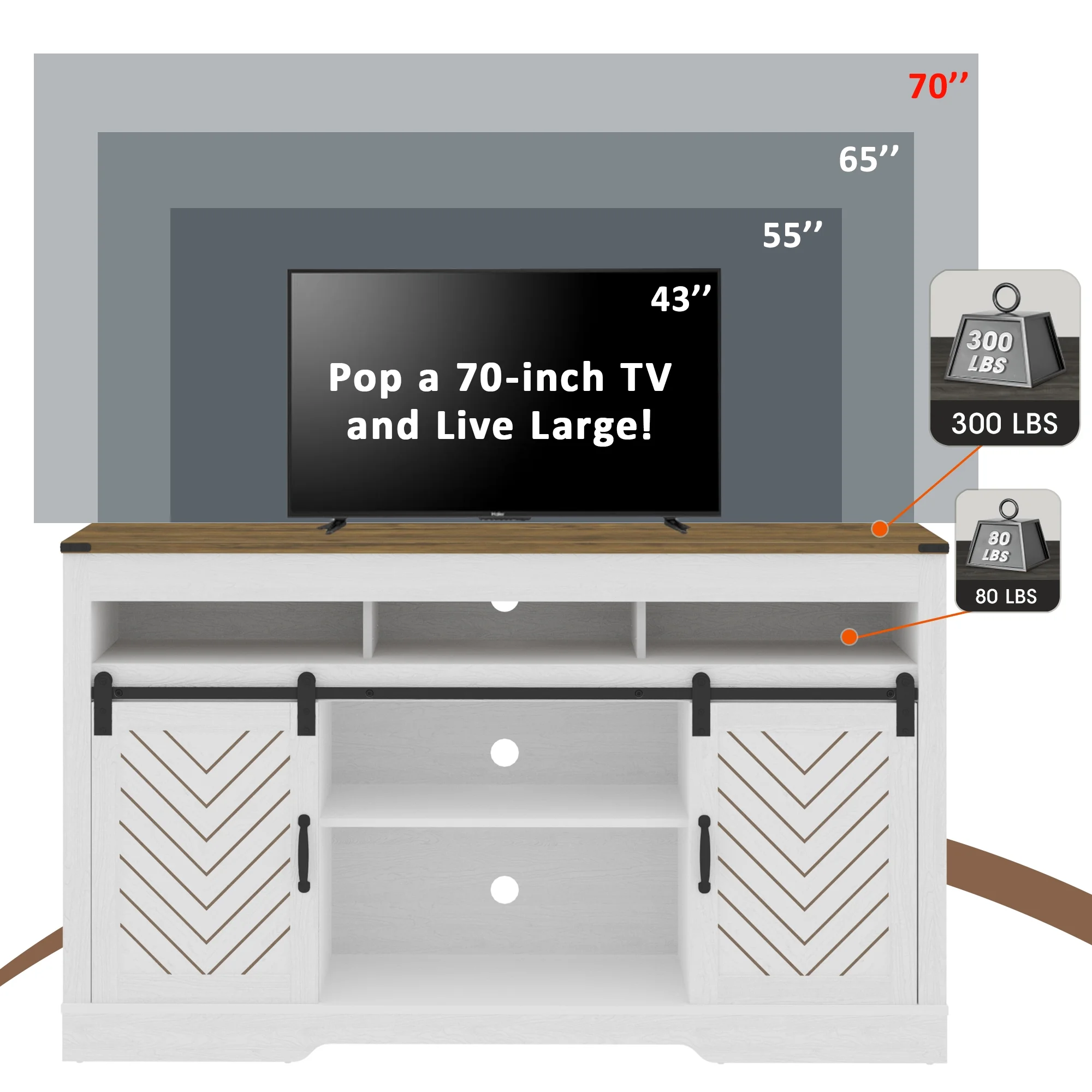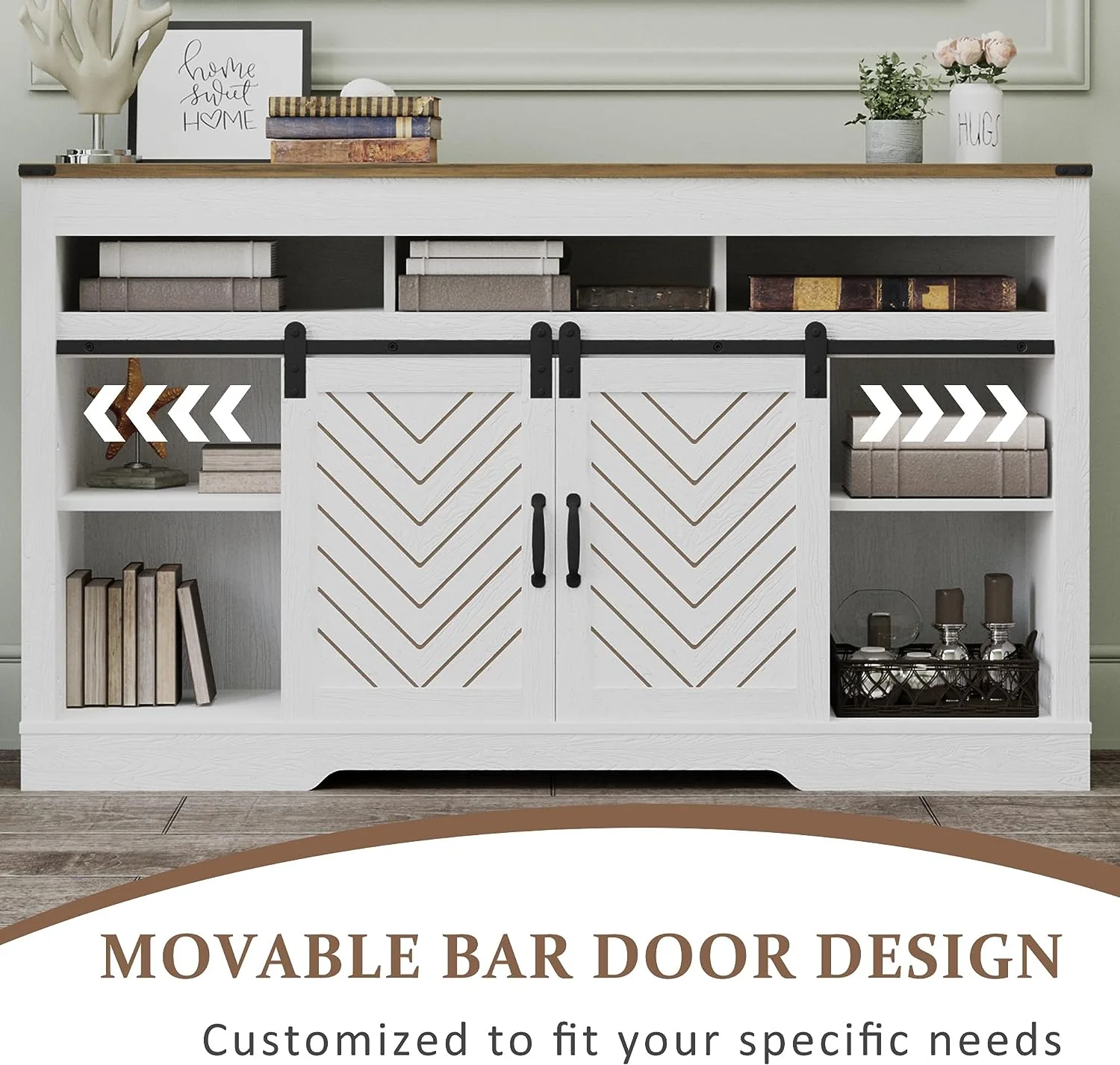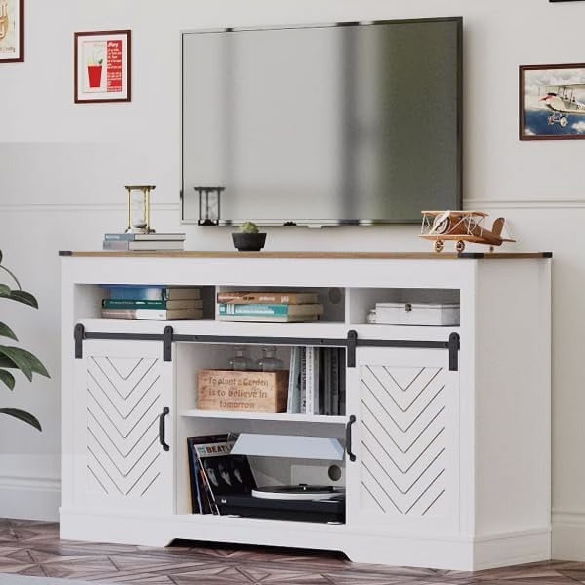 - Who knew storage could be this stylish? Measuring 60" W x 34" H x 16" D, this farmhouse TV stand offers the perfect blend of functionality and charm. Featuring both open and closed compartments, it allows you to showcase your favorite decor on the central shelves while keeping things organized with three adjustable inner shelves for customizable storage.