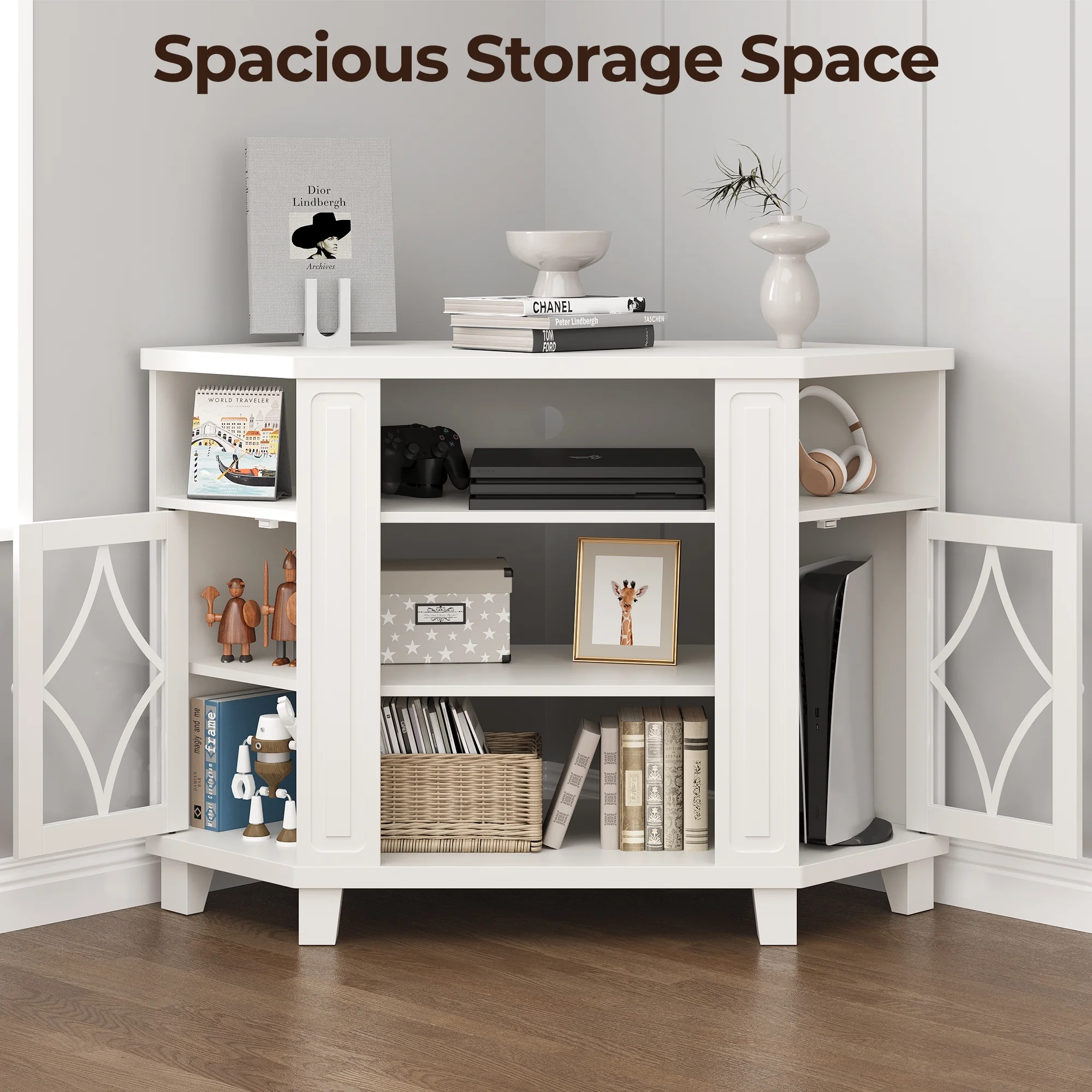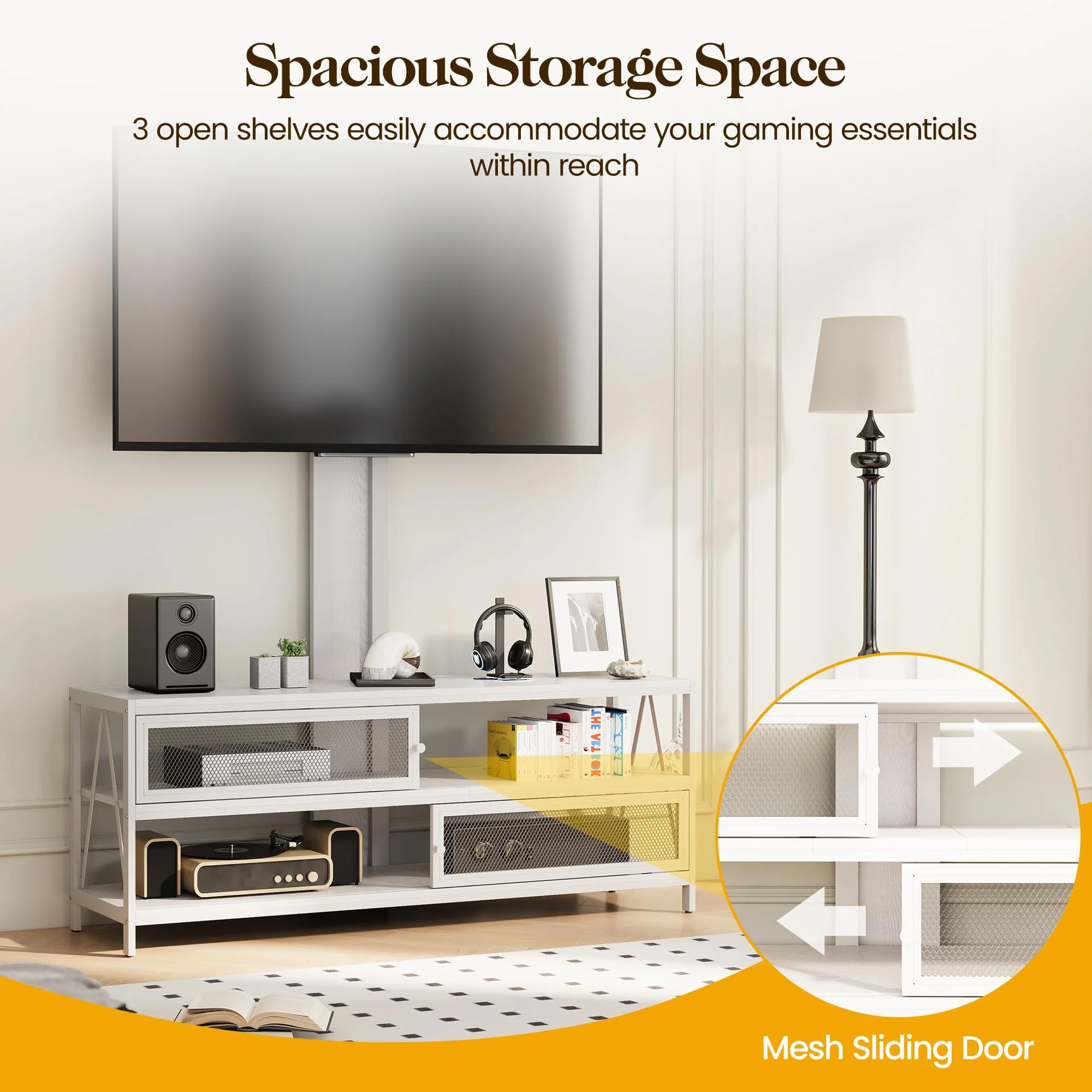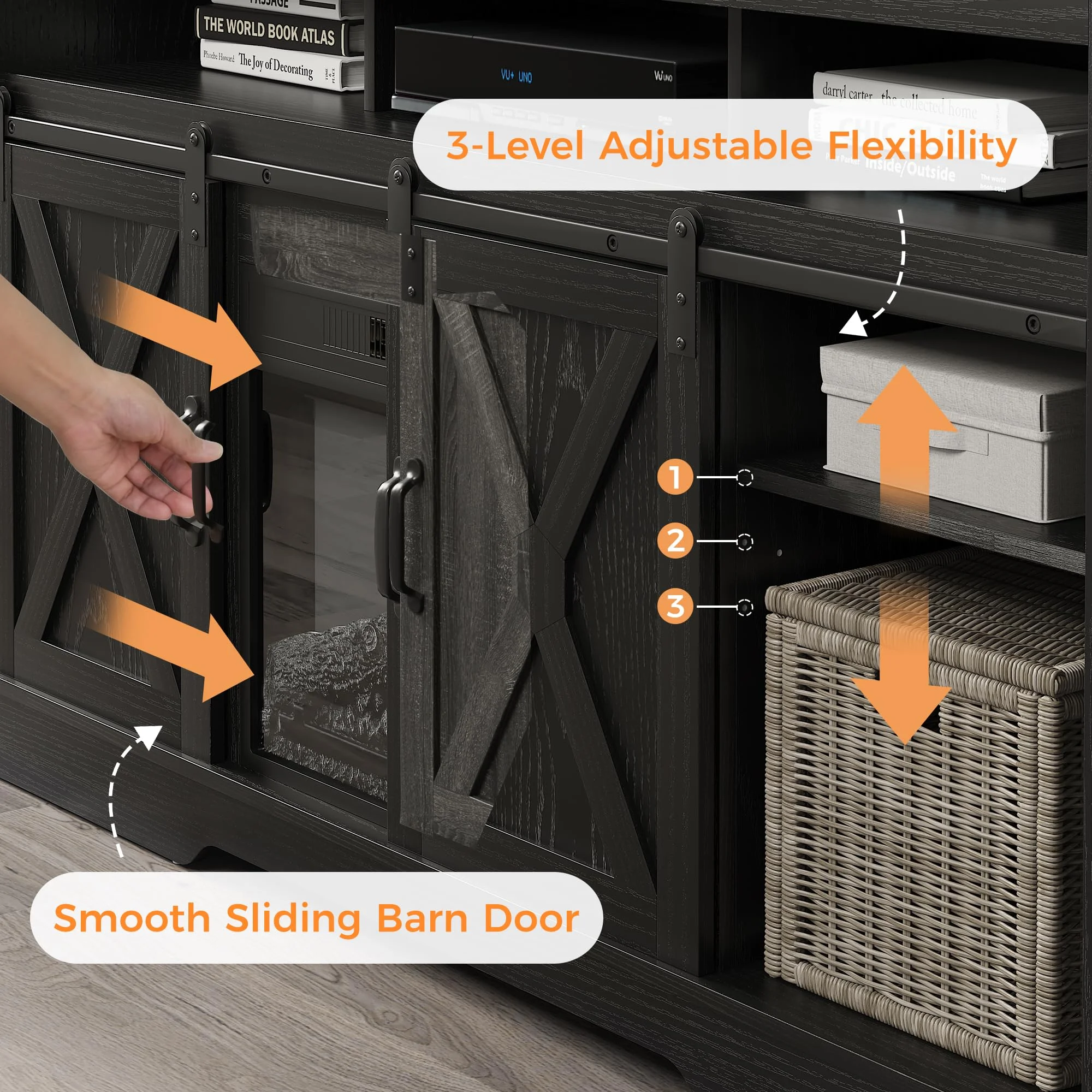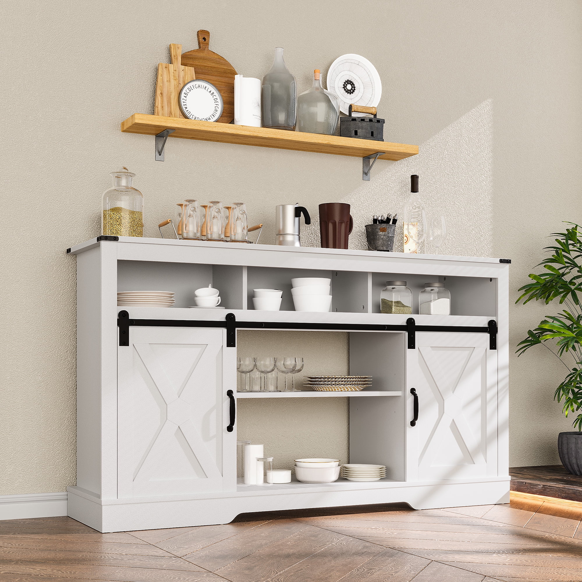 - Who knew storage could be this stylish? Measuring 60" W x 34" H x 16" D, this farmhouse TV stand offers the perfect blend of functionality and charm. Featuring both open and closed compartments, it allows you to showcase your favorite decor on the central shelves while keeping things organized with three adjustable inner shelves for customizable storage.