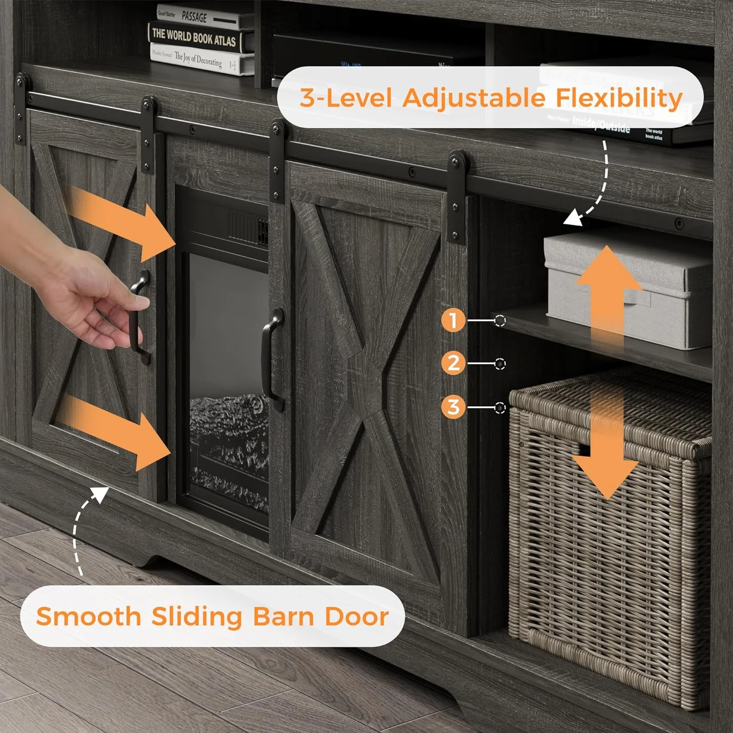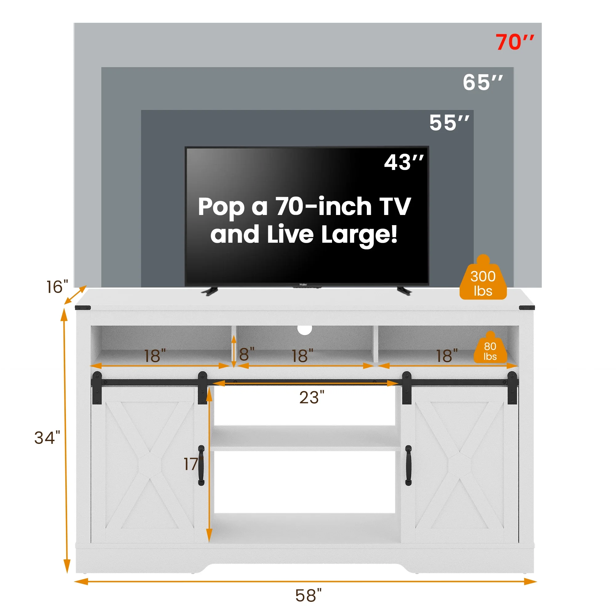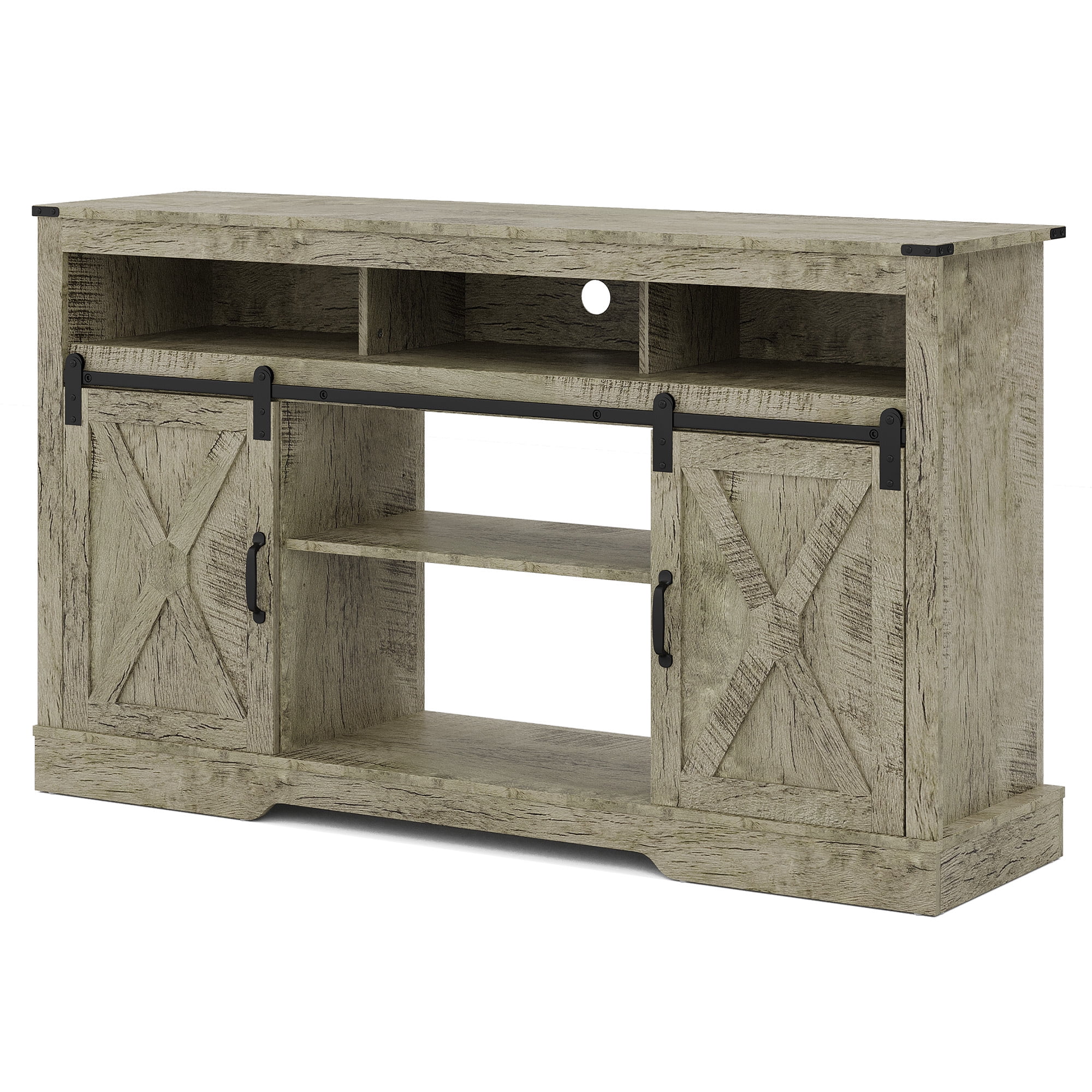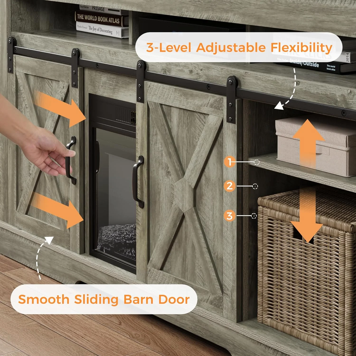 Mayincolor Farmhouse TV Stand for 65+ Inch TV, 34'' Tall Entertainment Center with Sliding Barn Doors, Rustic Wood Media Console Storage Cabinet Television Stand for Living Room, Light Grey
