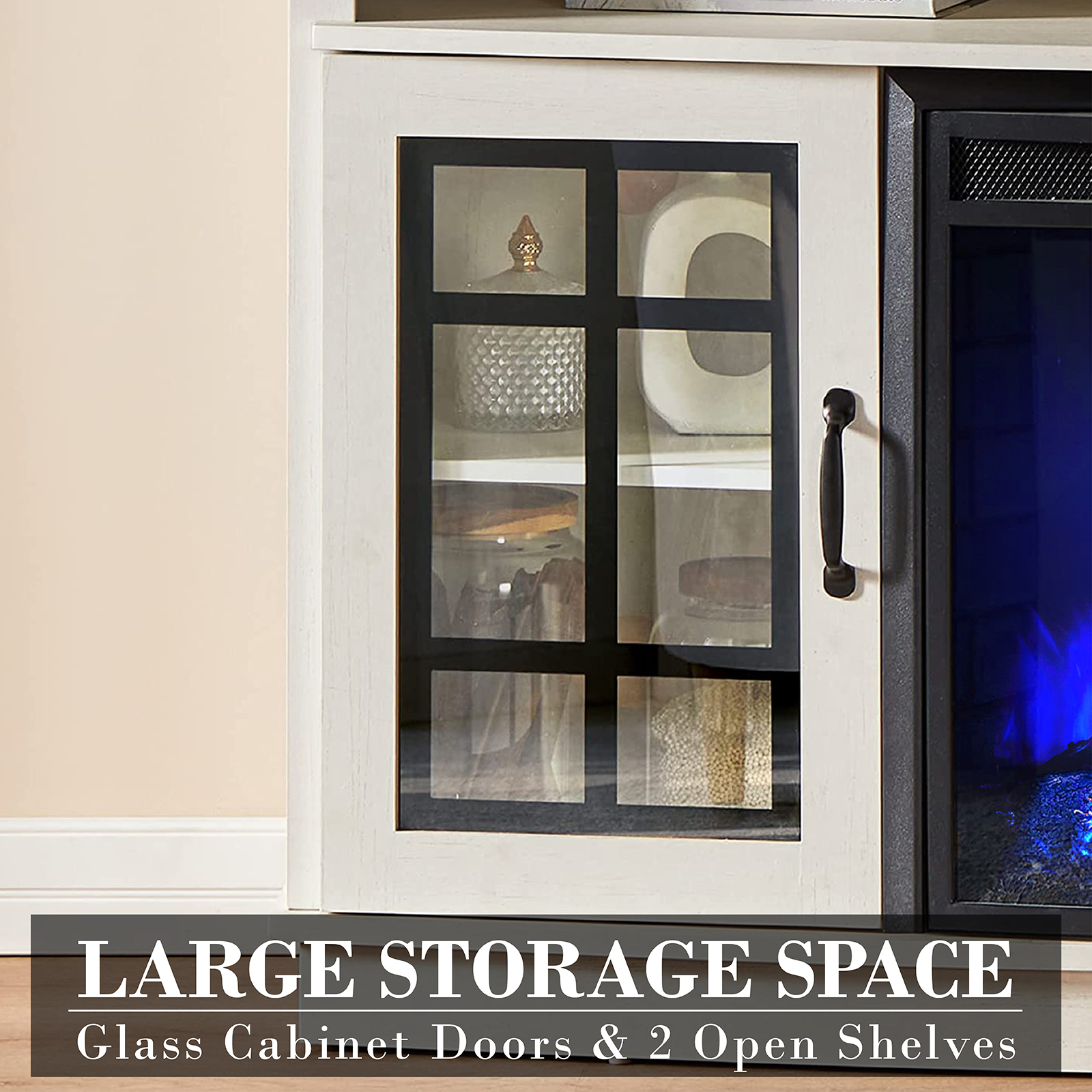 - Two Packages: TV stand and fireplace are divided into 2 packages and 2 tracking numbers.