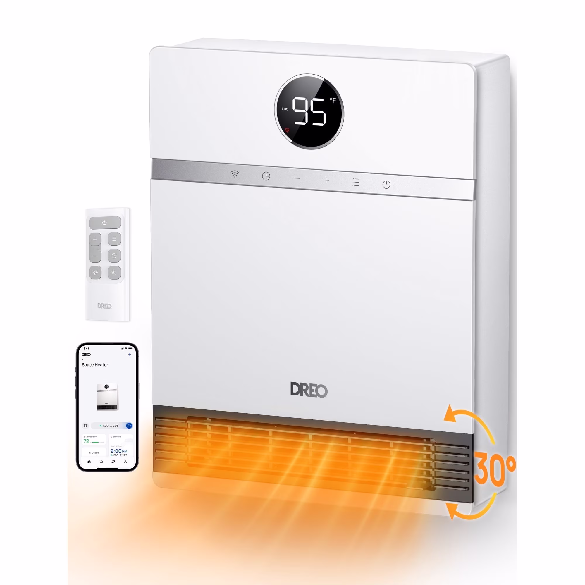 Dreo Smart Wall Heater, IP24 Electric PTC Space for Indoor Use, 30 Oscillation, Adjustable Thermostat, Remote Control, Works with Alexa, 24H Timer, Easy - Mounted for Bedroom, Office