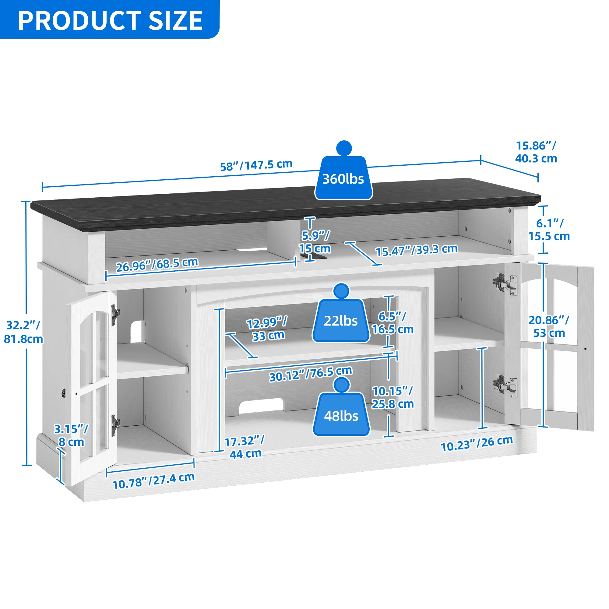 up to 360-400 lbs. - Shelves and Cable Management: With 3 adjustable shelves, this TV stand offers flexible storage options. The 4 rectangle drilling design cable management system allows for easy organization and concealing of wires, keeping your