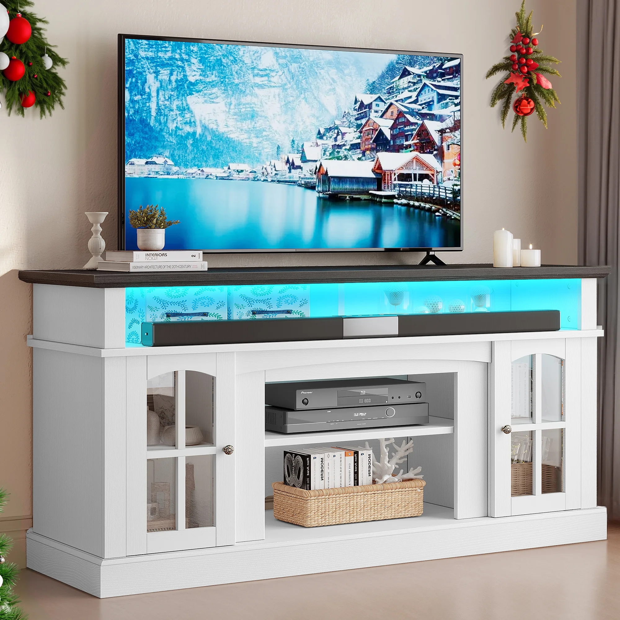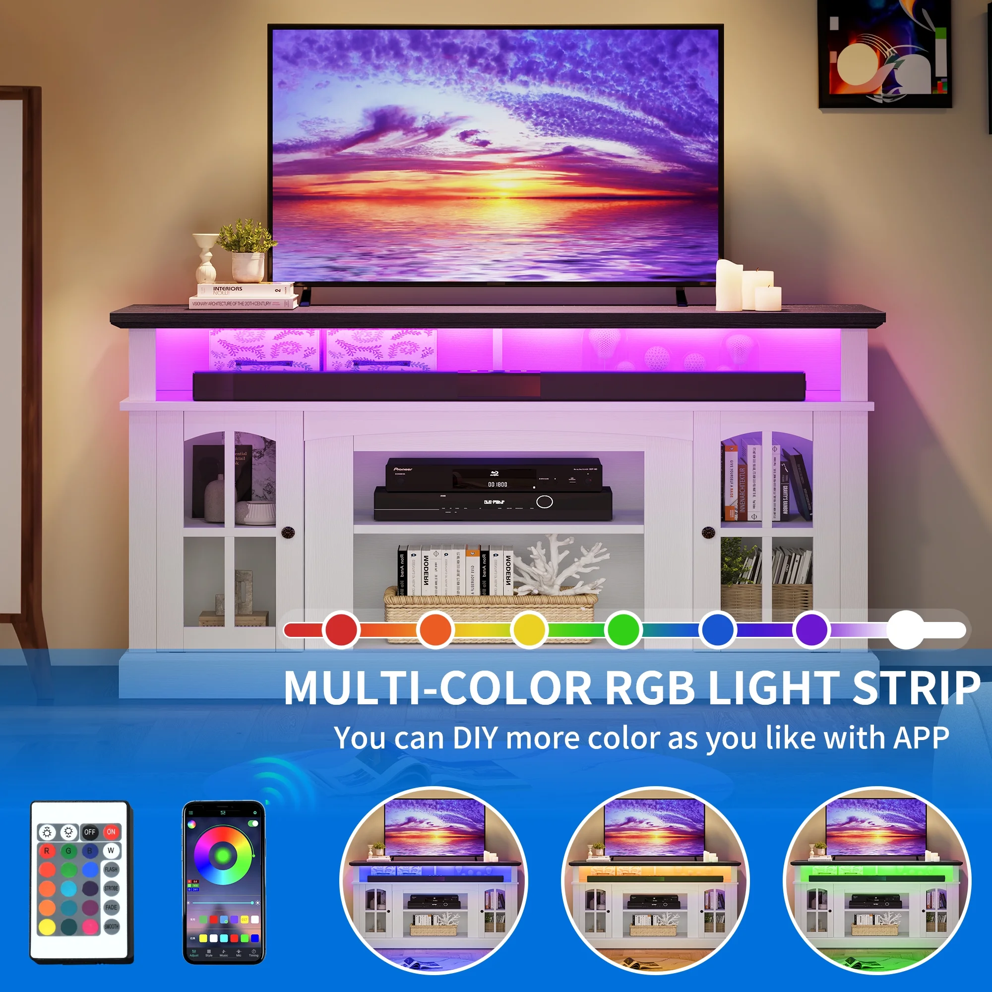 - Remote Control & RGB LED Light Strip: The entertainment center features a remote-controlled RGB LED light strip with 16 colors and 4 color flashing modes, allowing you to decorate your home with vibrant and beautiful lighting.