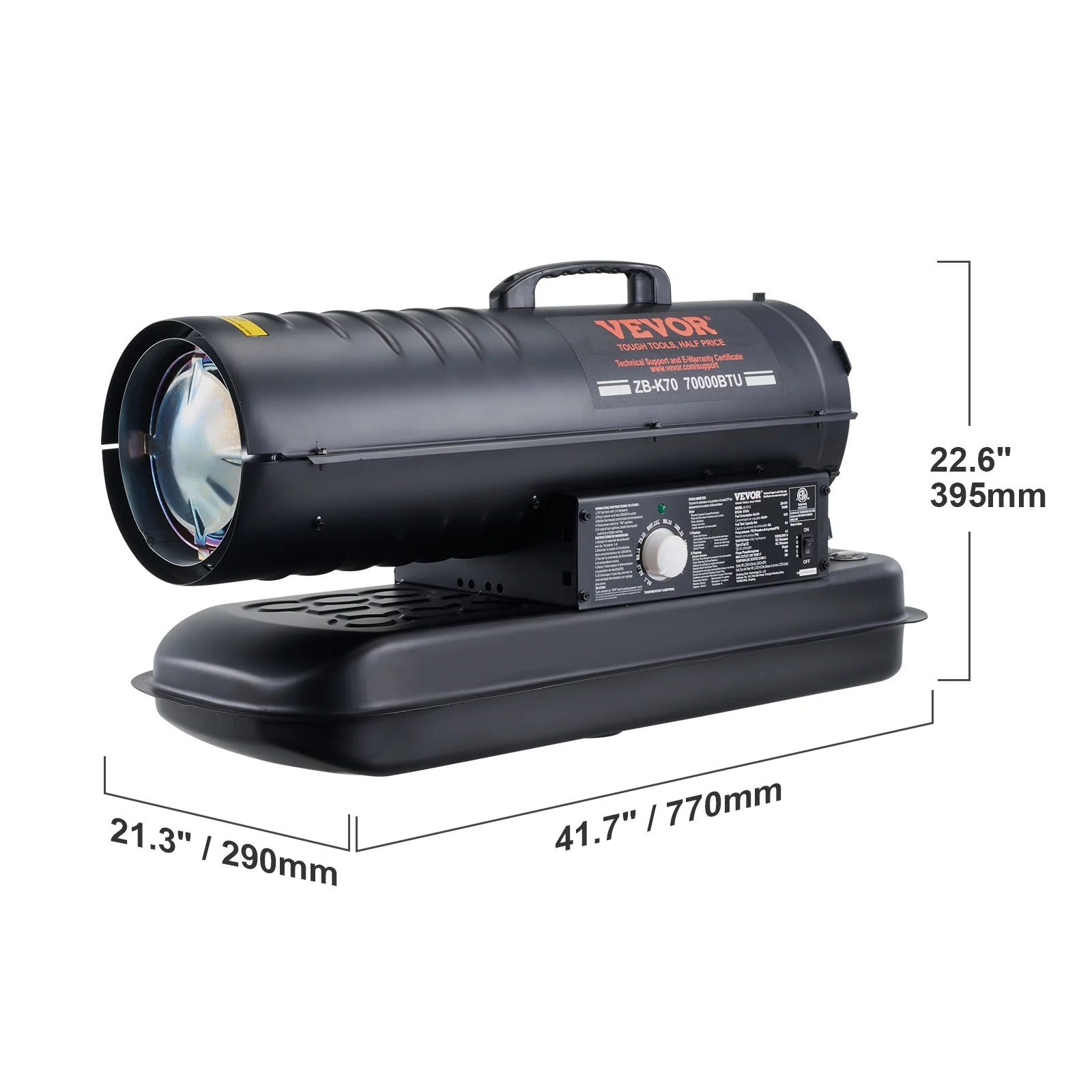 - Heating for Wide Workspace: This forced-air kerosene heater delivers 70,000 BTUs of heat, instantly warming up spaces like your workspace, barn, workshop, farm, or indoor areas up to 14,125.9 cuft / 400 m3. It ensures efficient equipment operation and worker comfort.