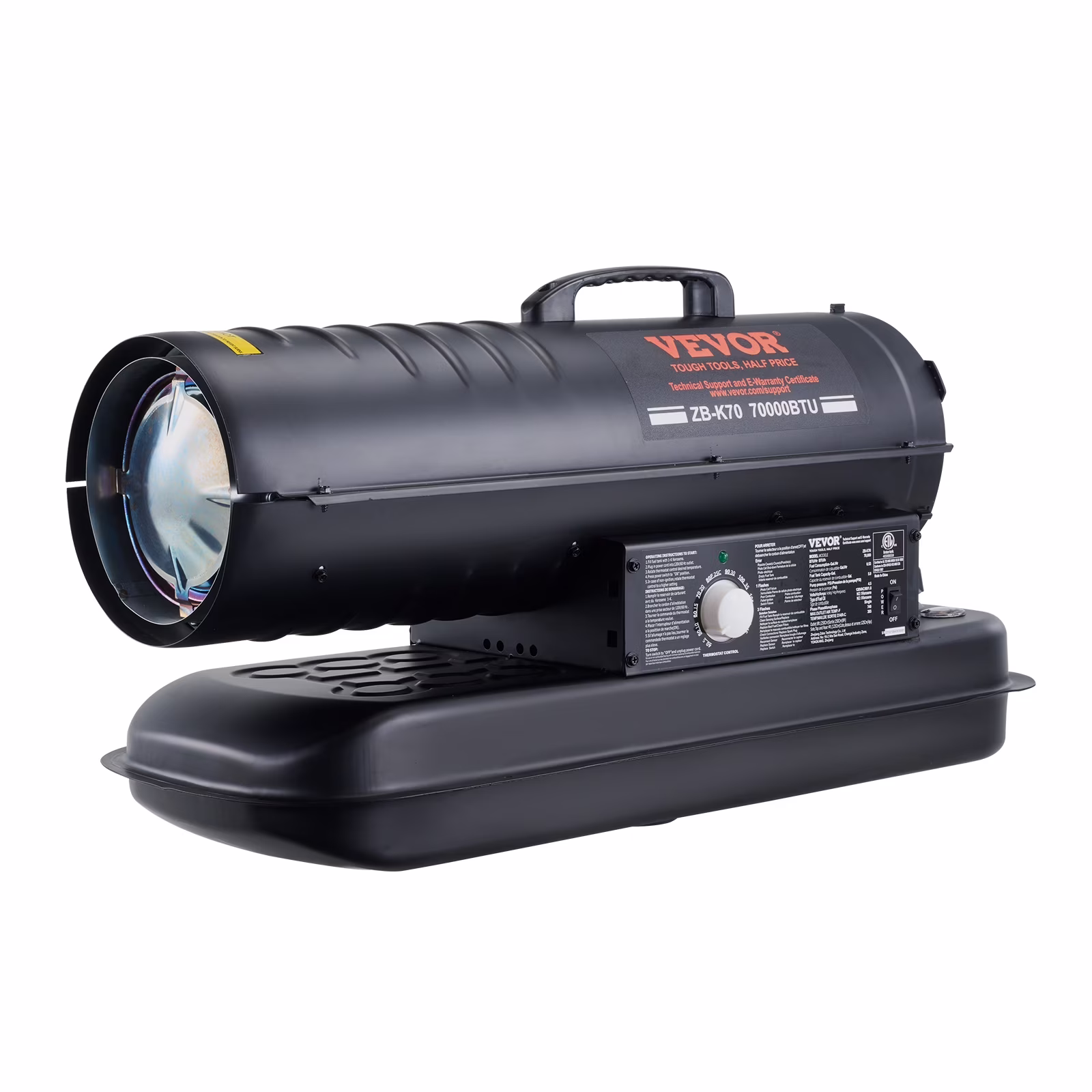 VEVOR Keroséne Forced Air Heater, 70000 BTU Portable Torpedo Diesel Space Heater with Thermostat, 5 Gallon Tank Energy - Efficient Heavy - Duty Heater, for Indoor Outdoor Use Workshop Industry