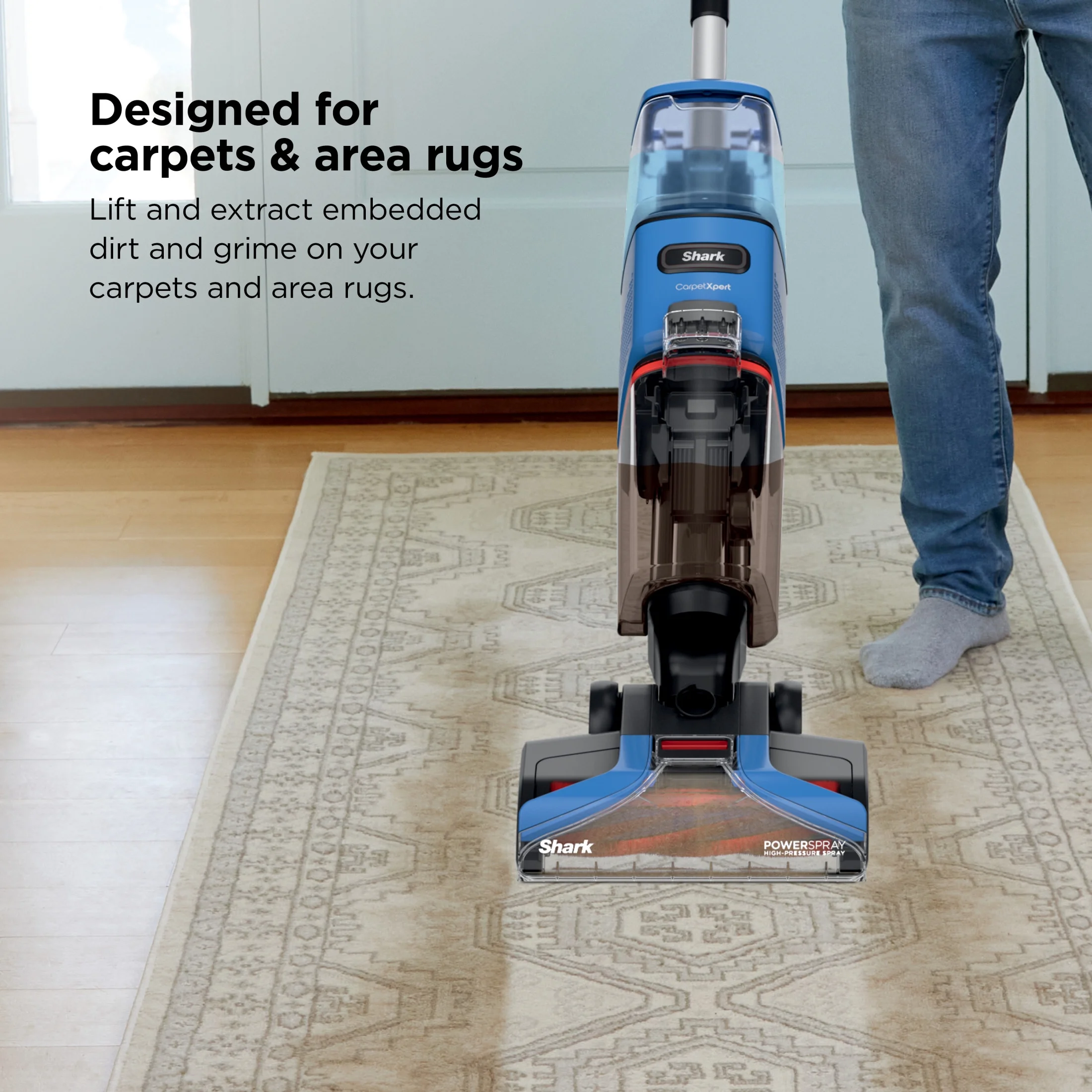- UNBEATABLE DEEP CARPET CLEANING: CarpetXpert Technology combines a high-speed brushroll with PowerSpray high-pressure spray and Shark's ultra-powerful suction to deliver unbeatable dirt and grime removal.